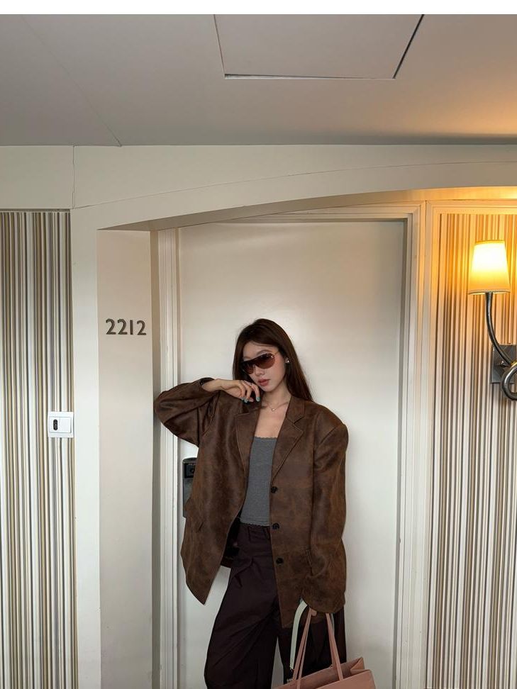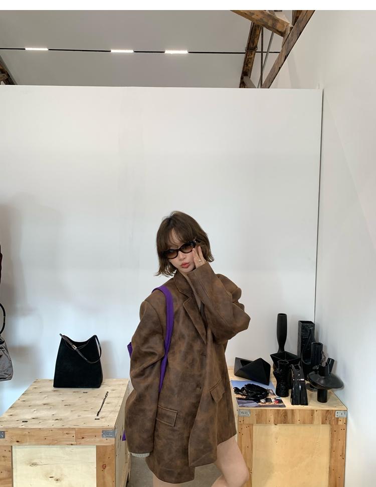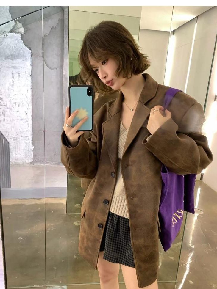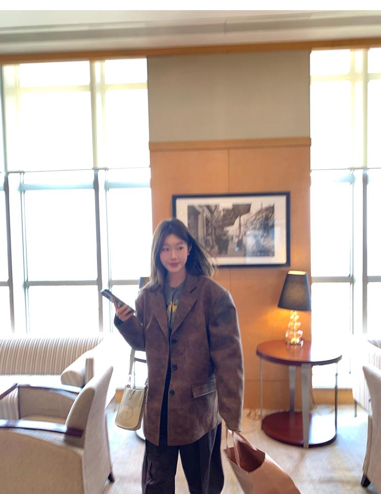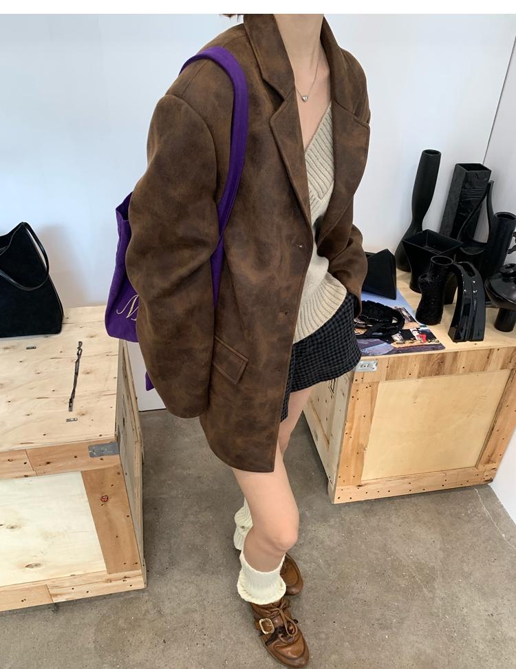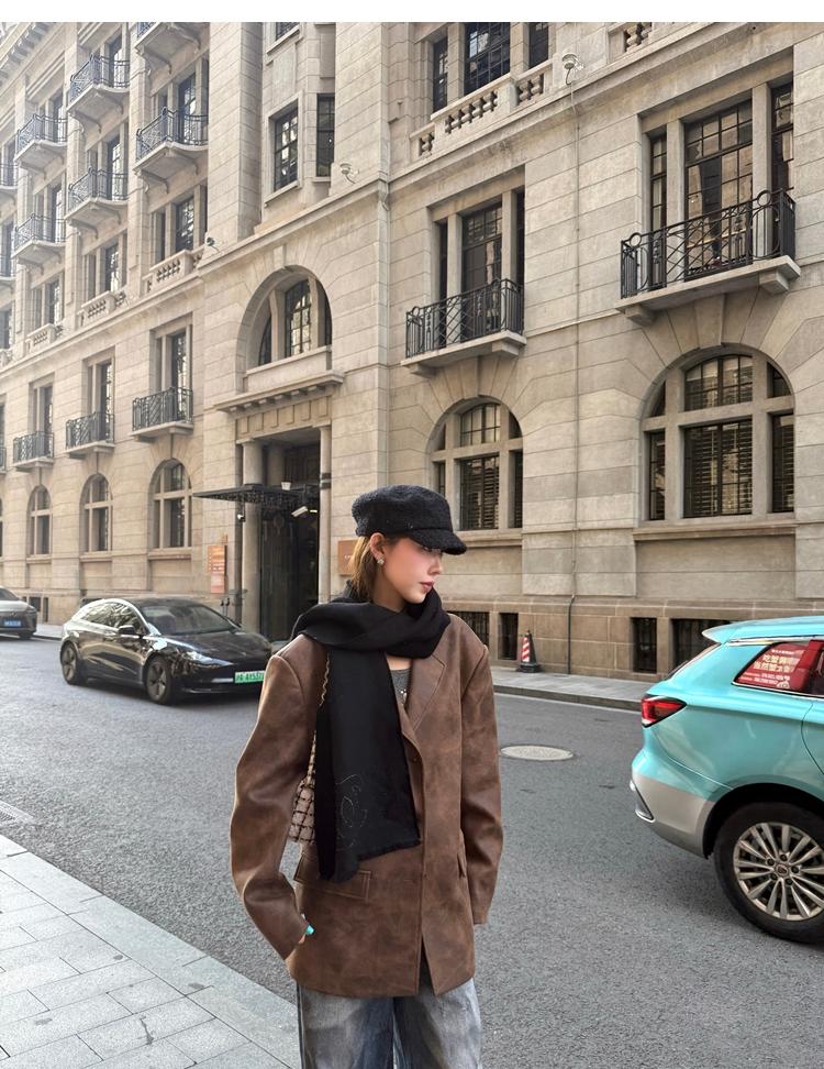 high-end sense of color-brushed leather jacket
