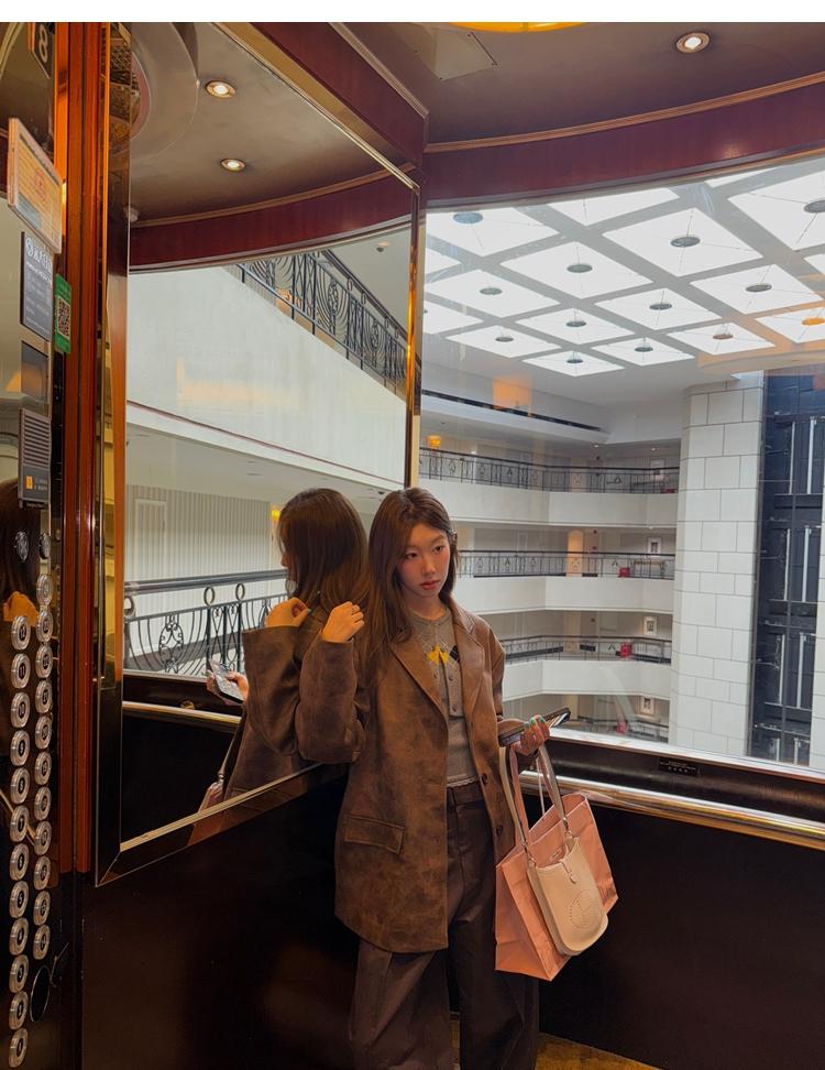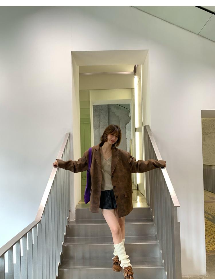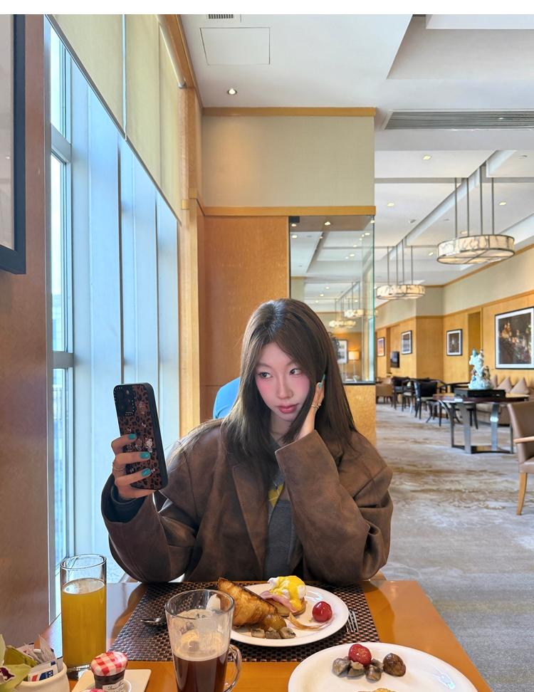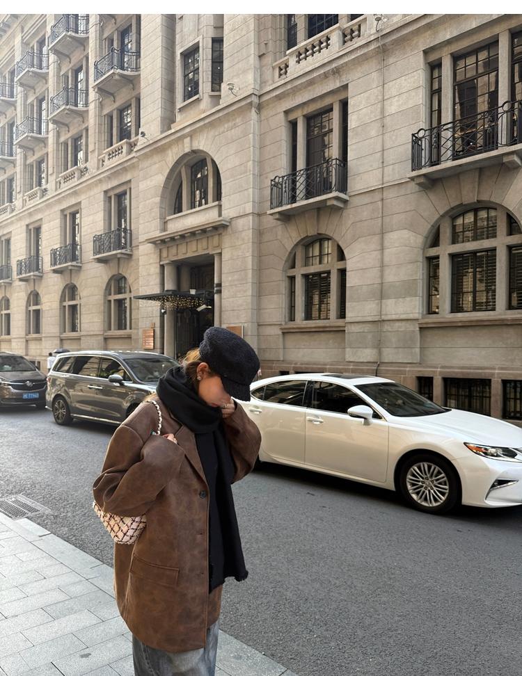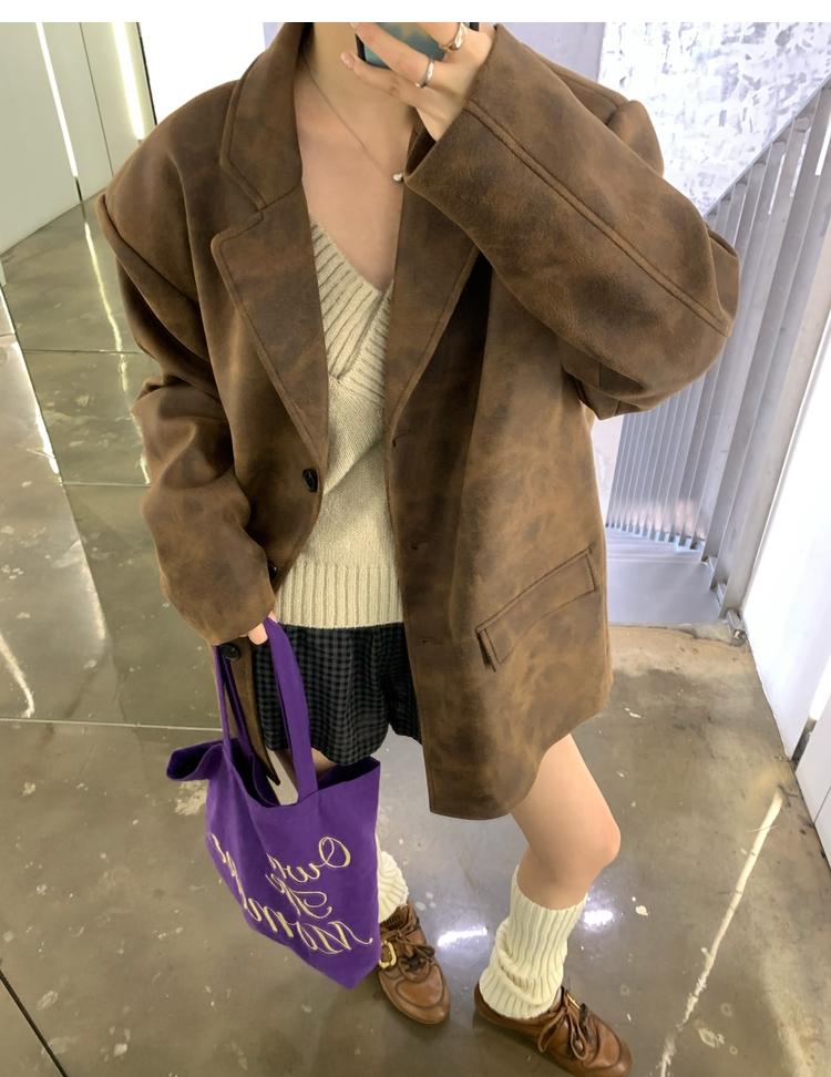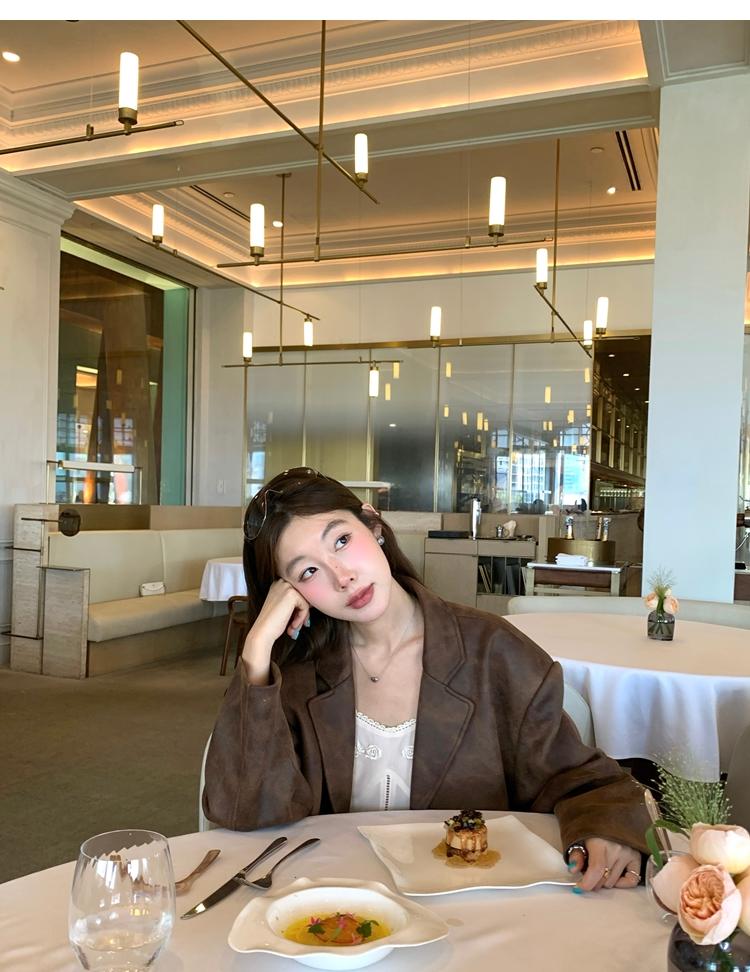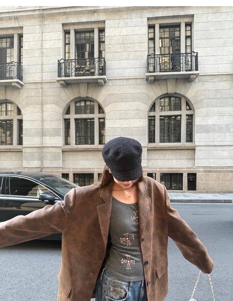 high-end sense of color-brushed leather jacket
