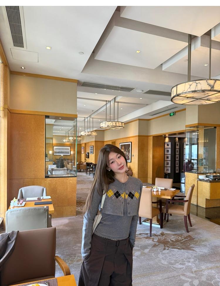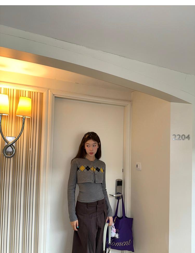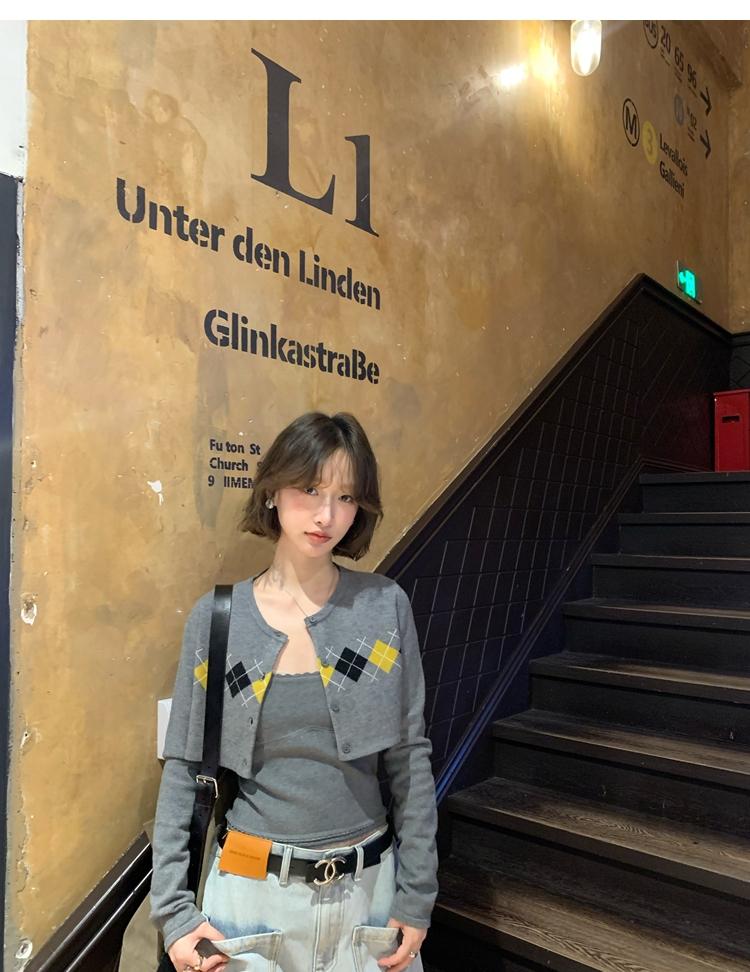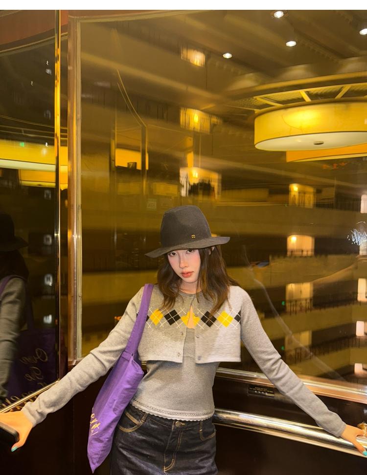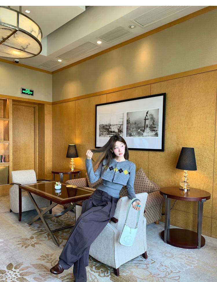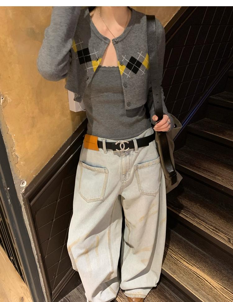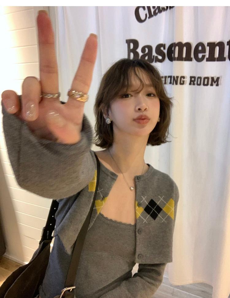 old money diamond pattern knitted cardigan suspenders two-piece set