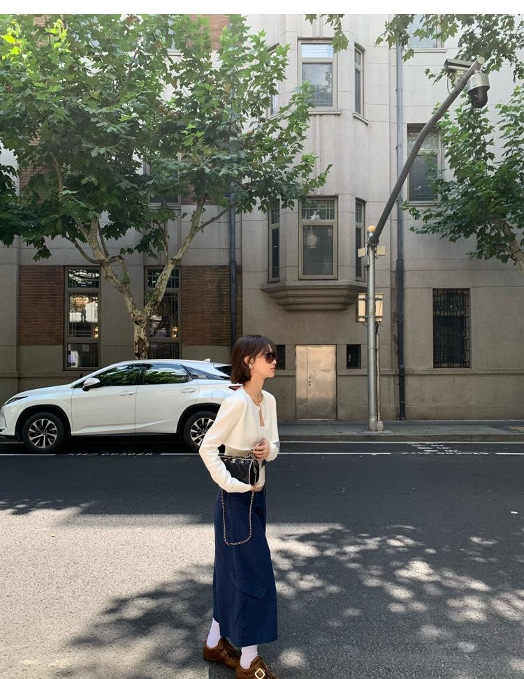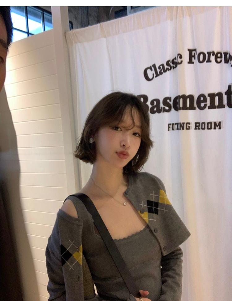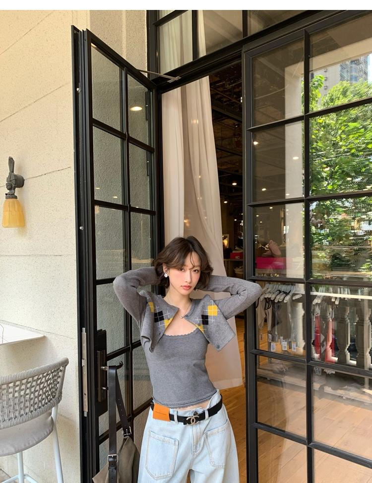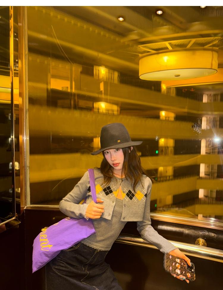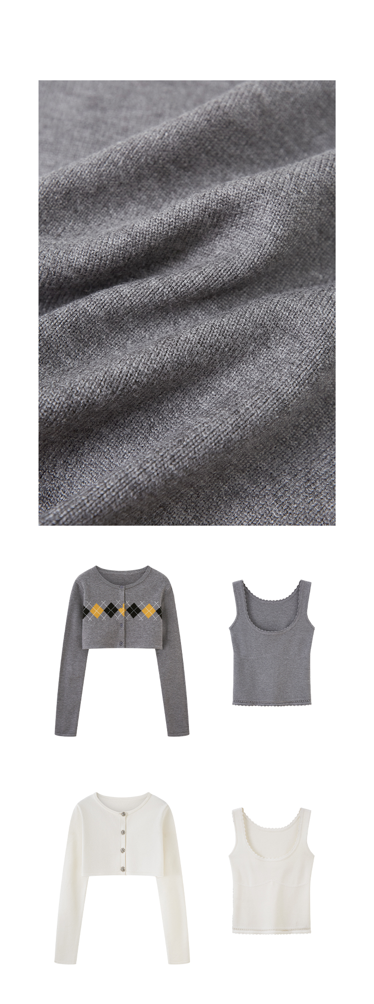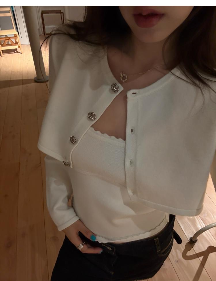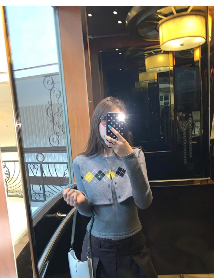 old money diamond pattern knitted cardigan suspenders two-piece set