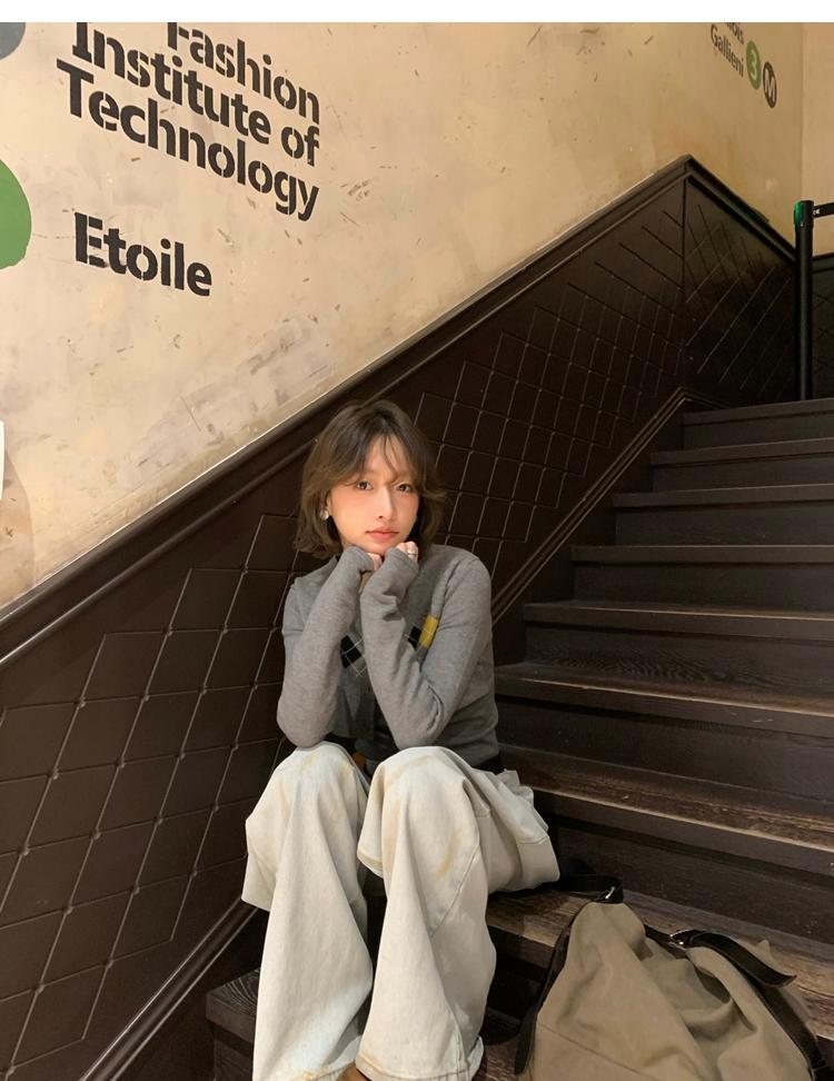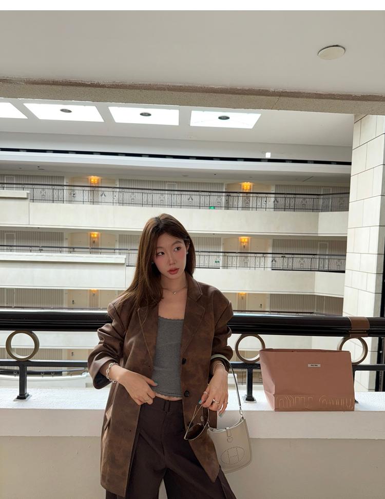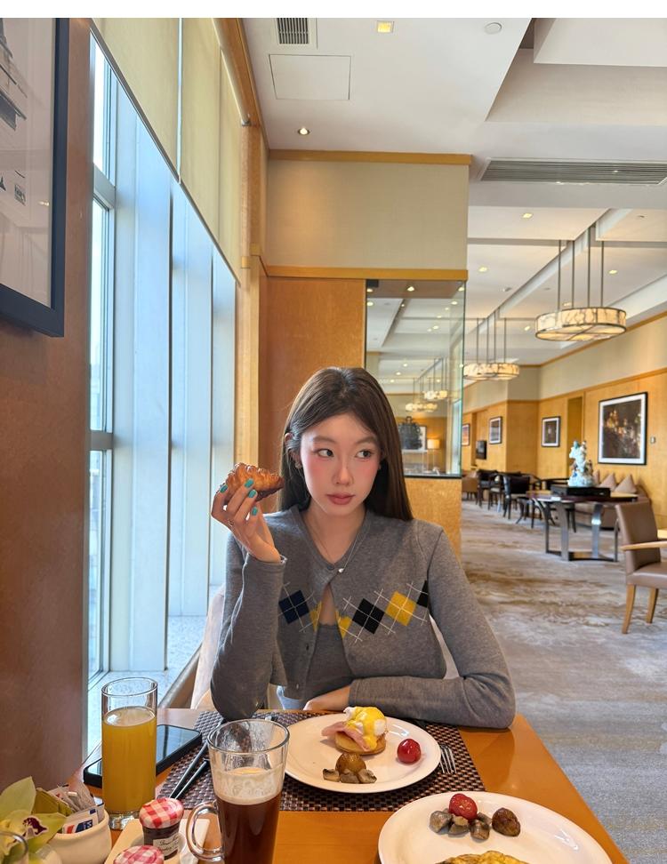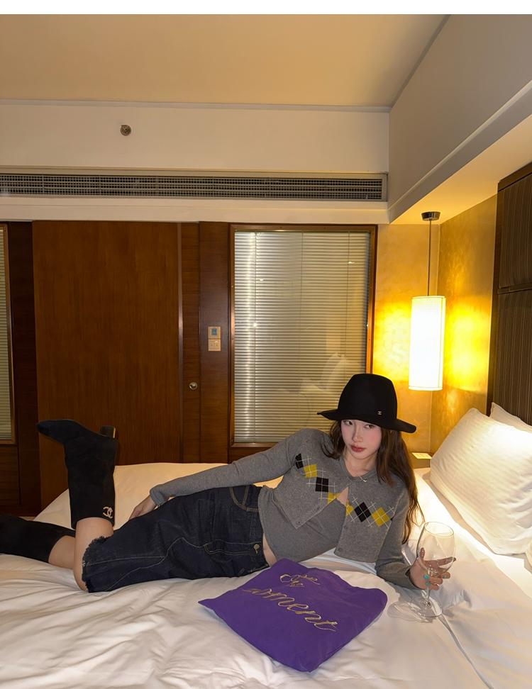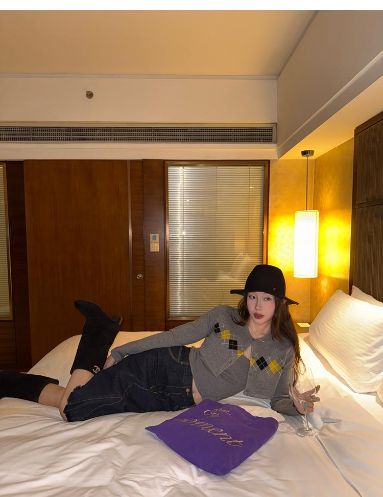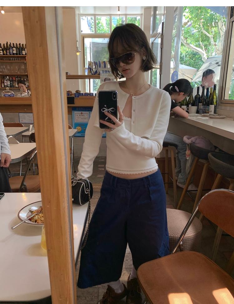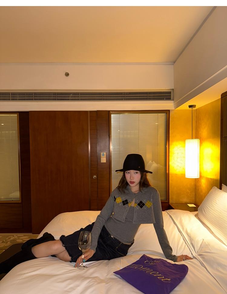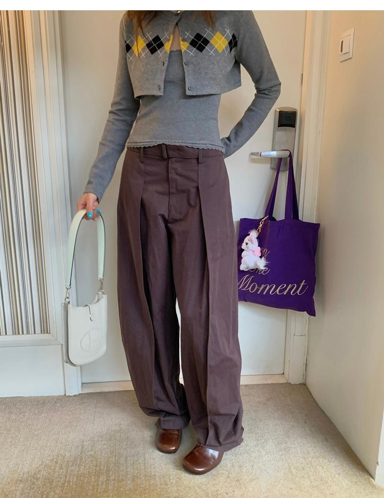 old money diamond pattern knitted cardigan suspenders two-piece set