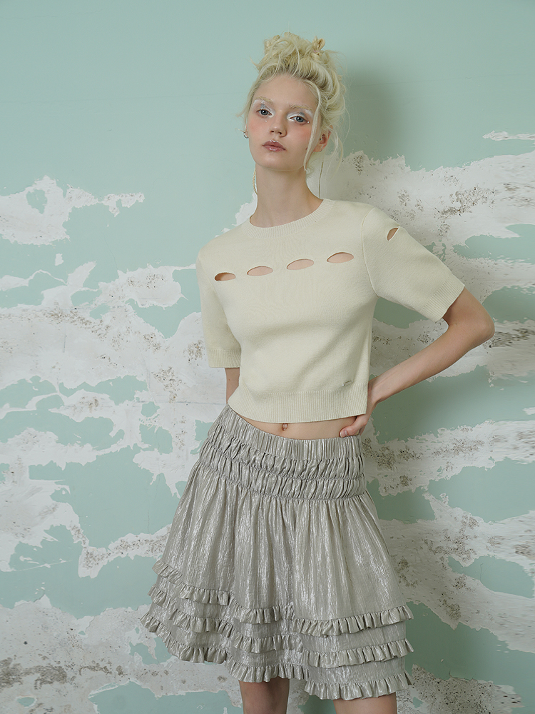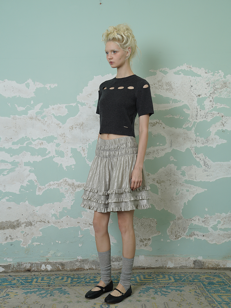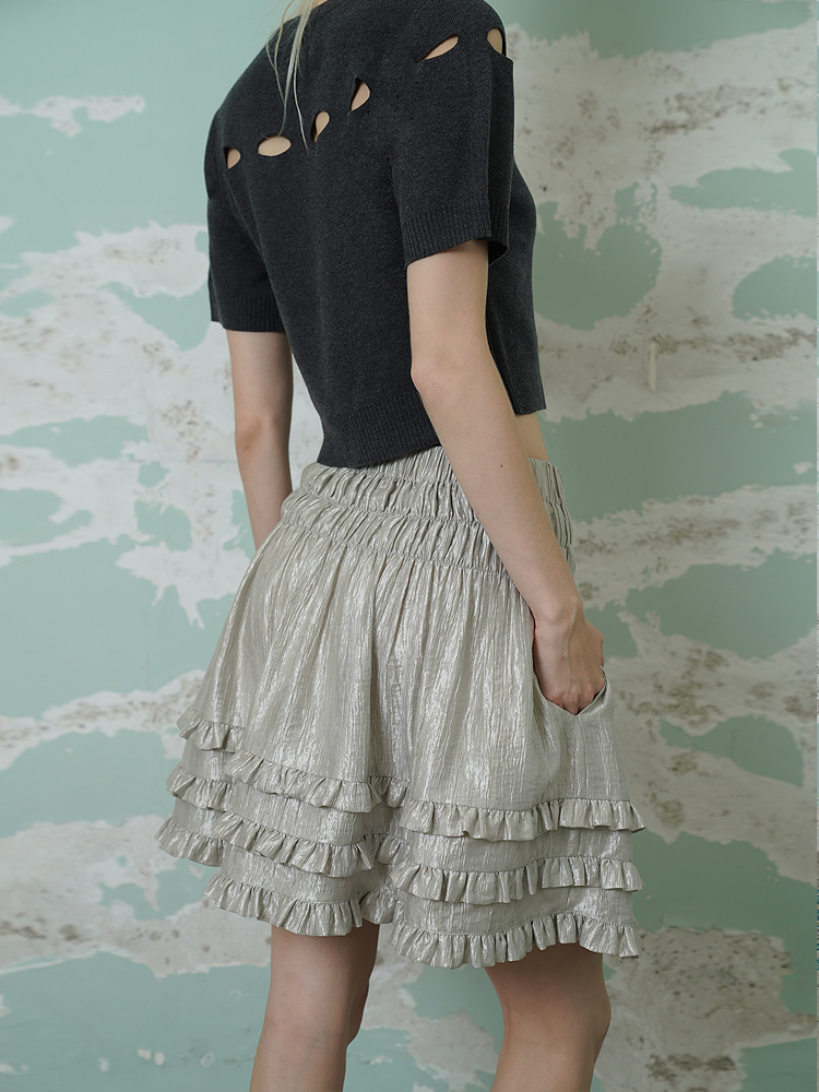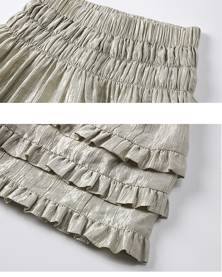 Liquid silver niche elastic waist slim ballet lace cake short skirt
