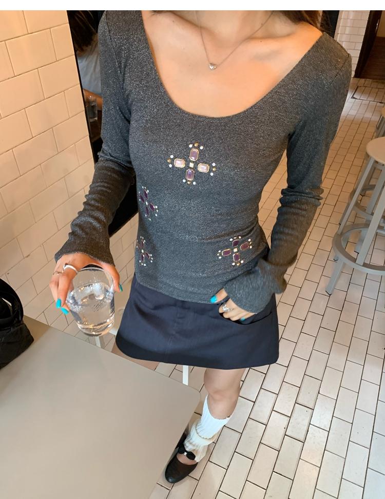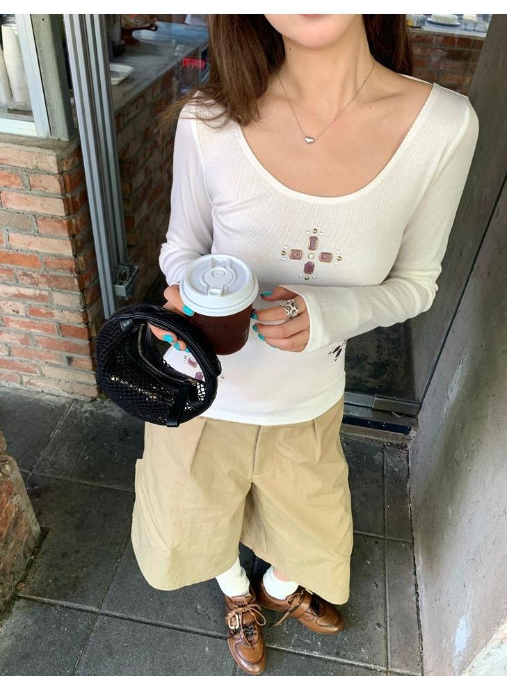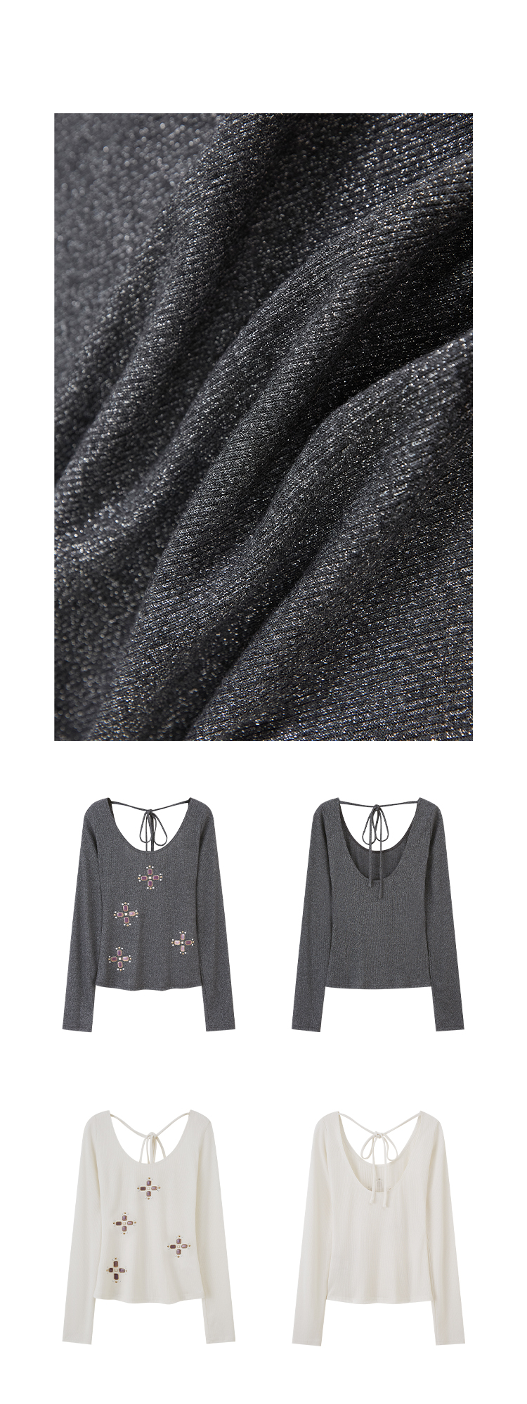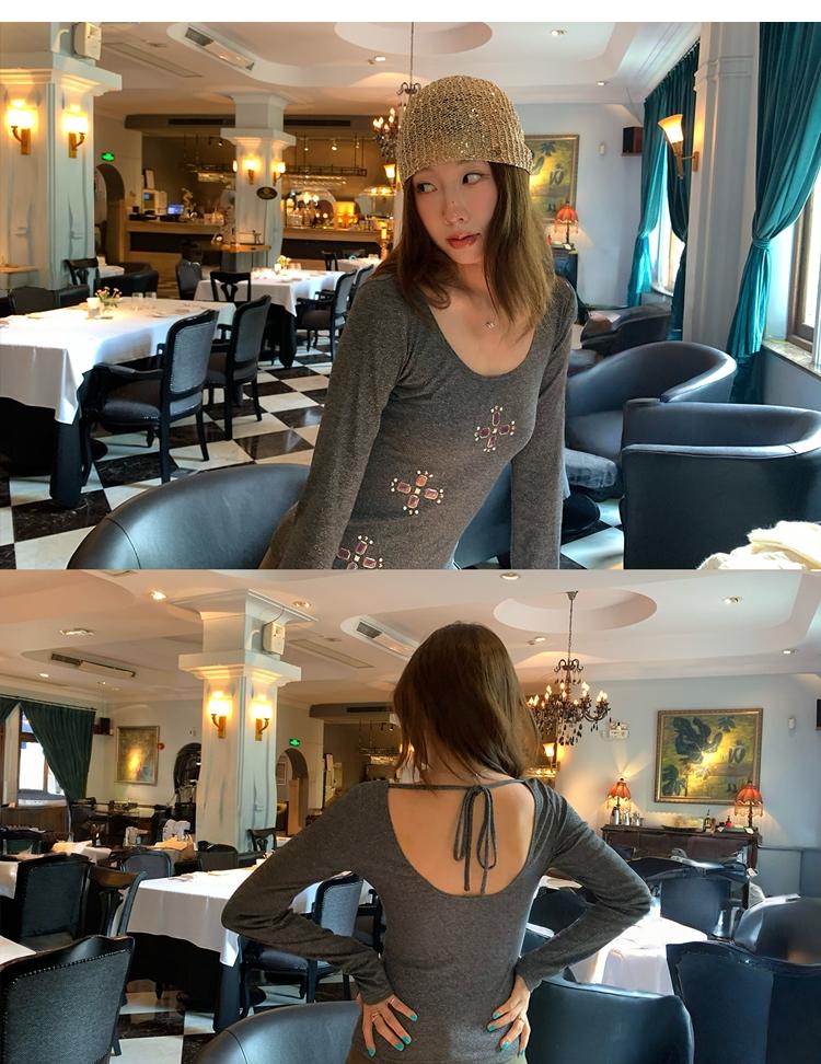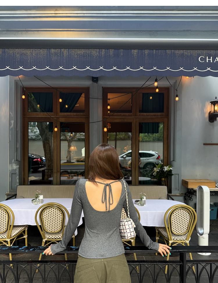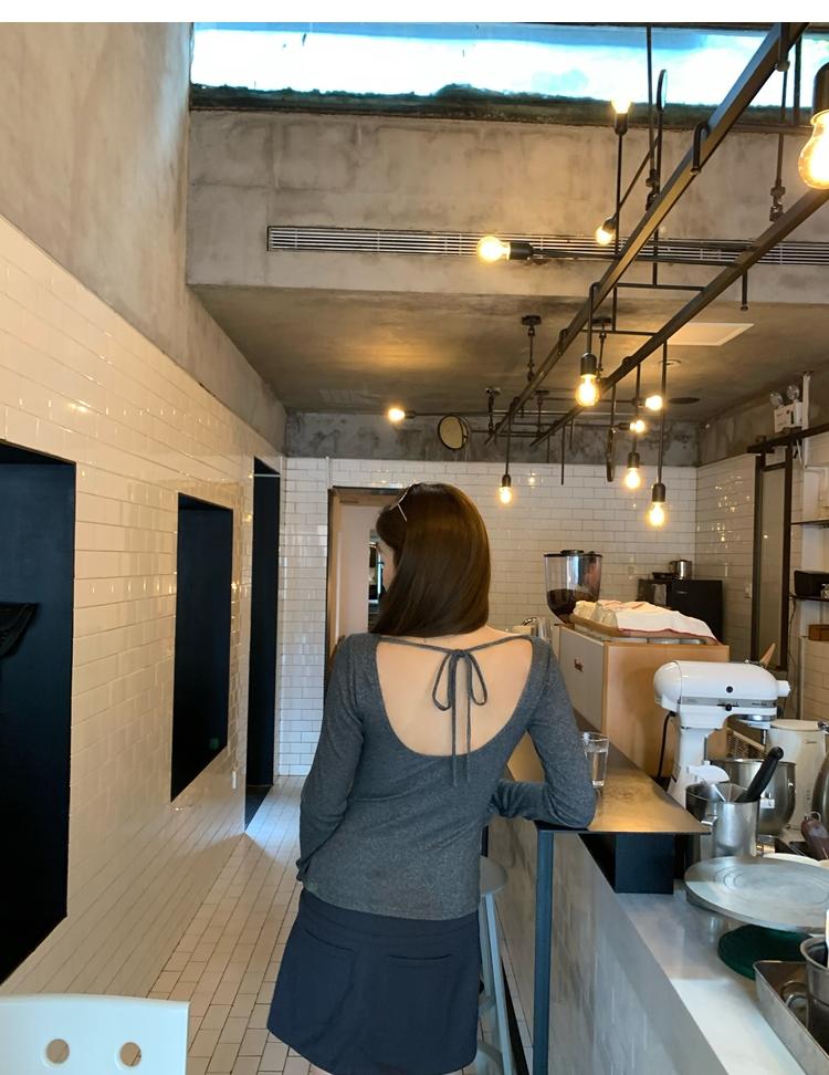 U-neck slim strap open back stretch top