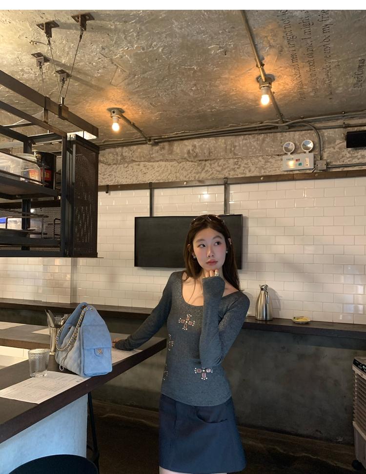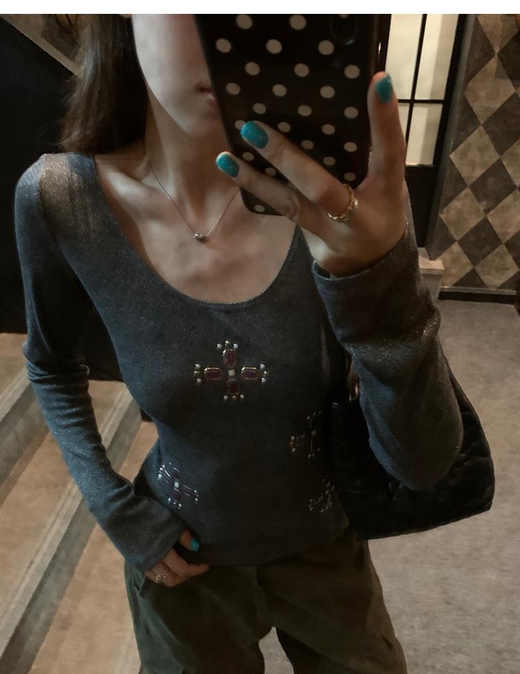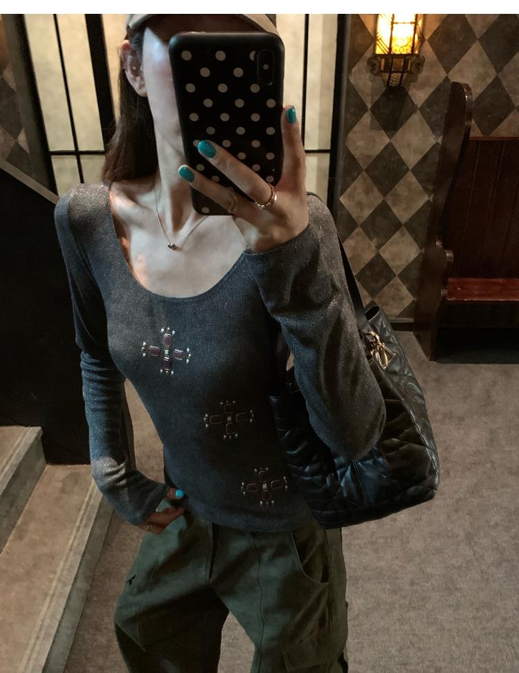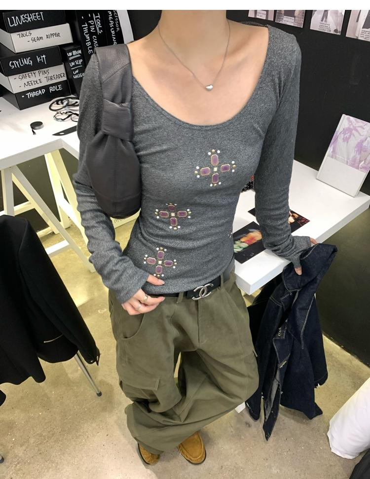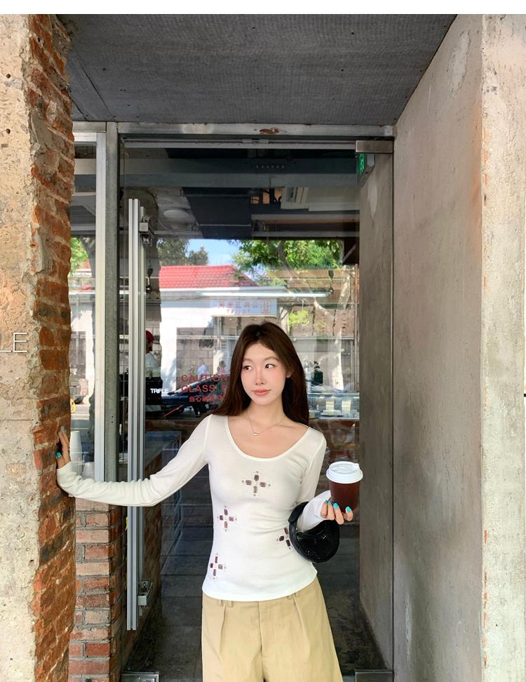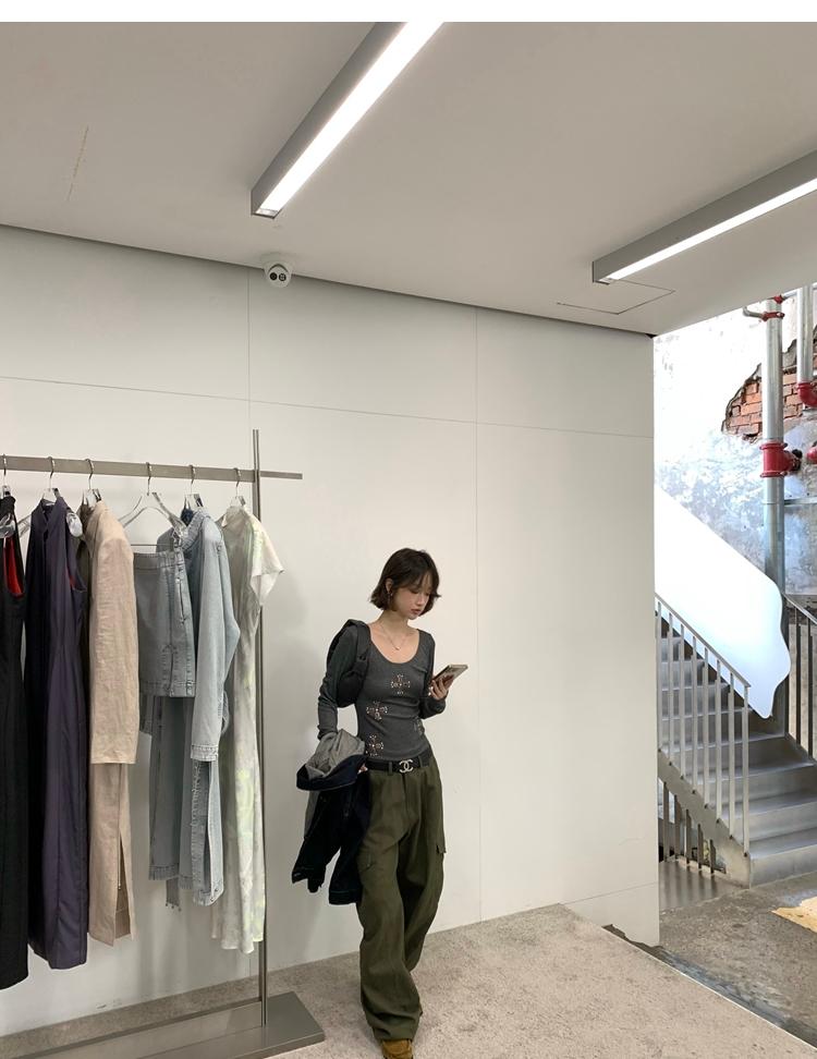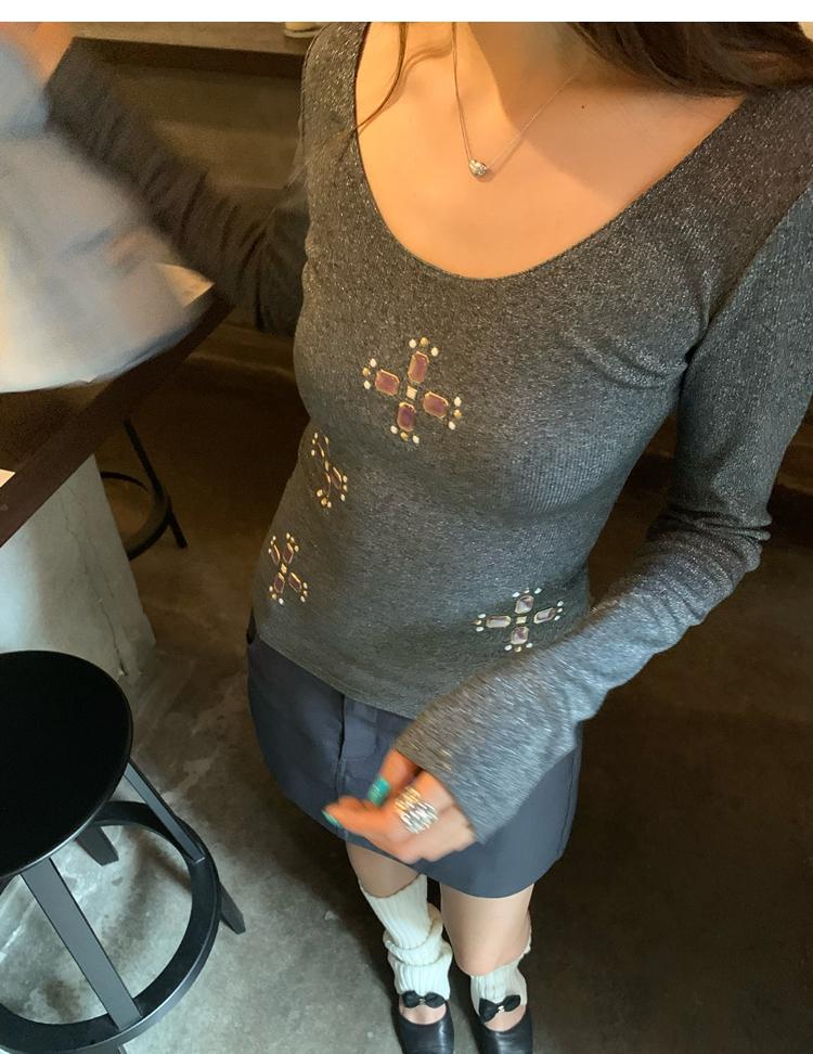 U-neck slim strap open back stretch top