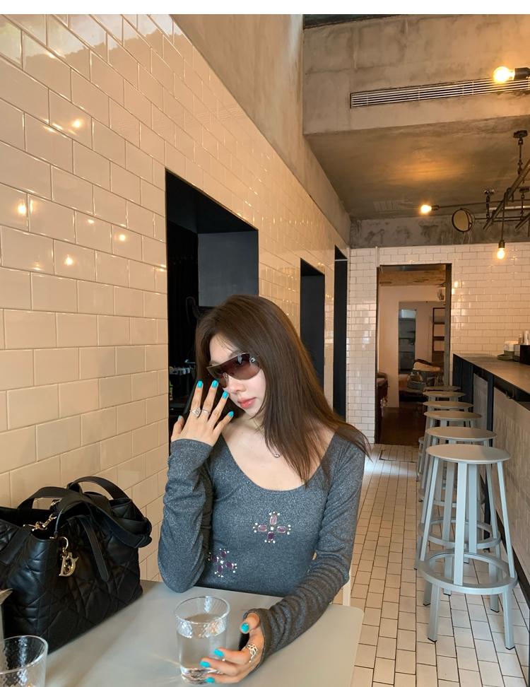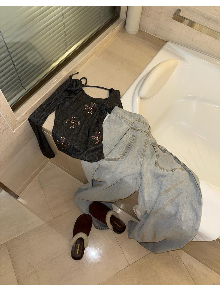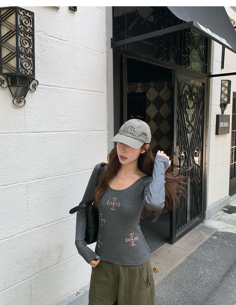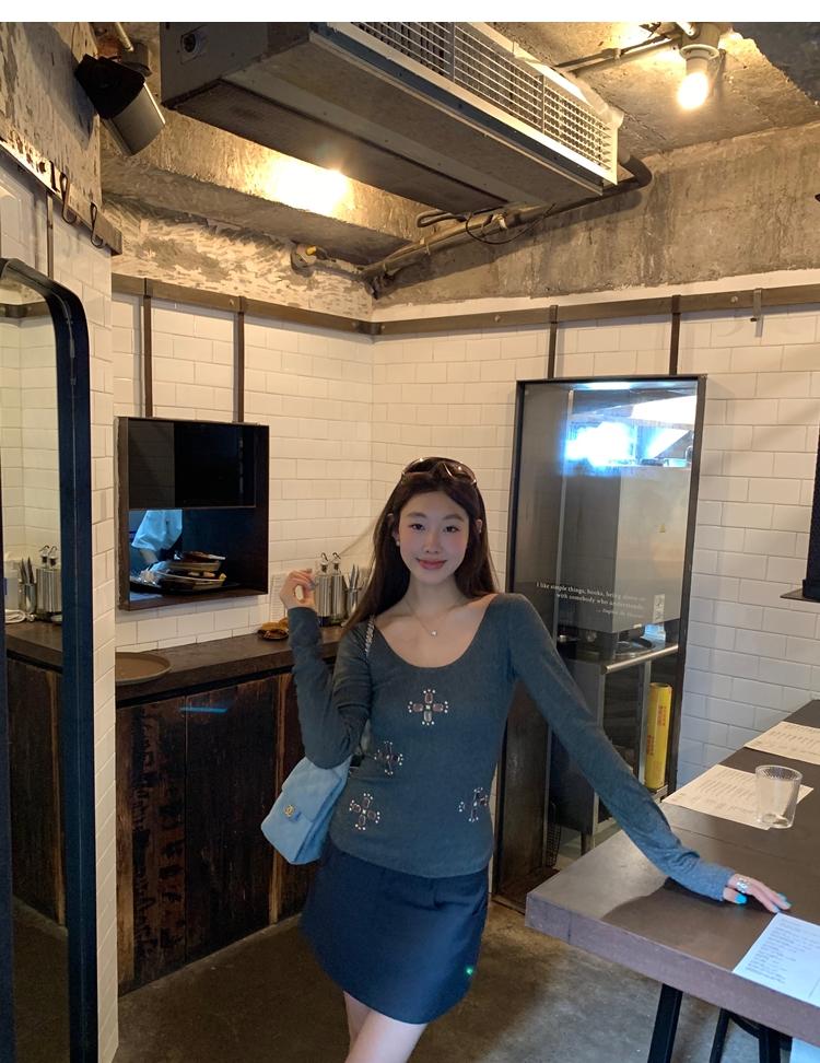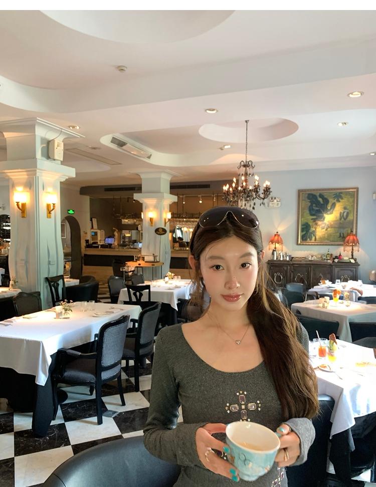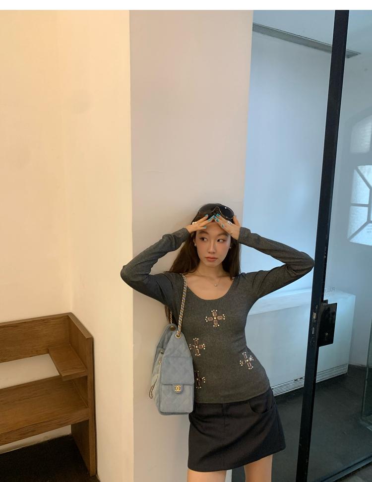 U-neck slim strap open back stretch top
