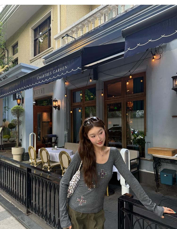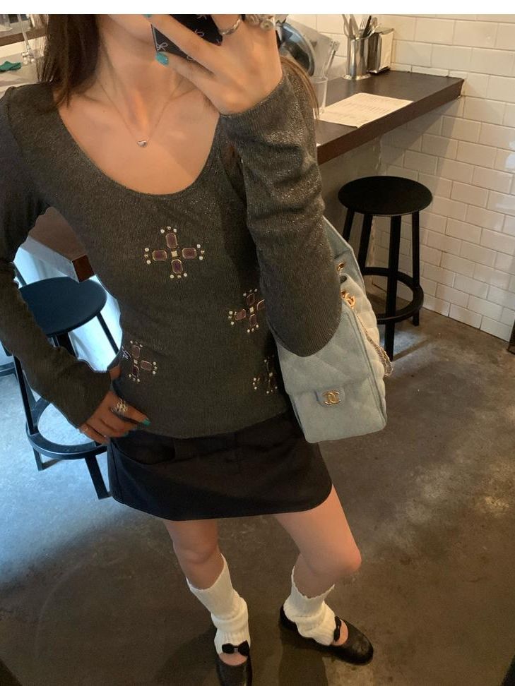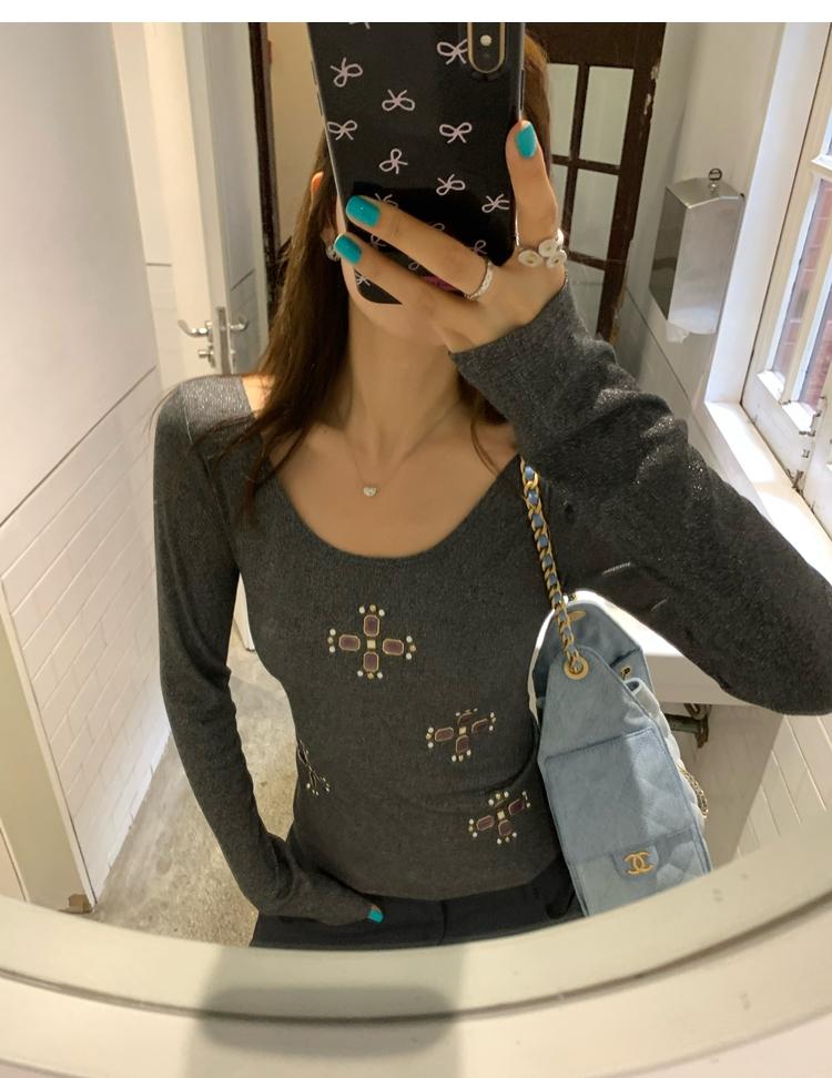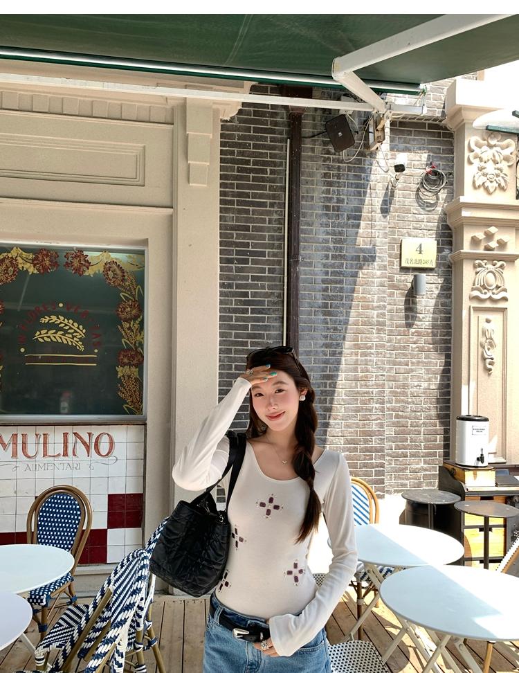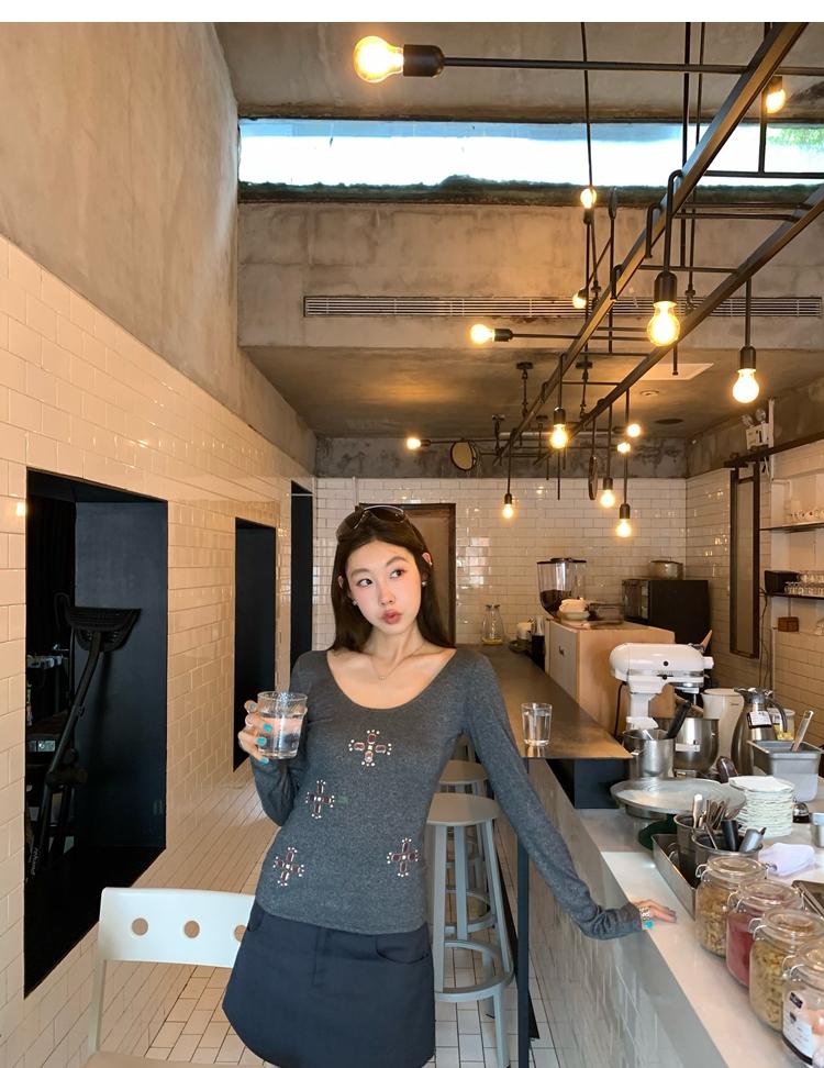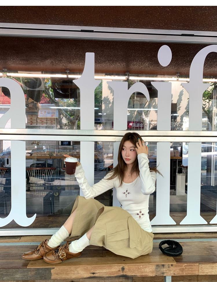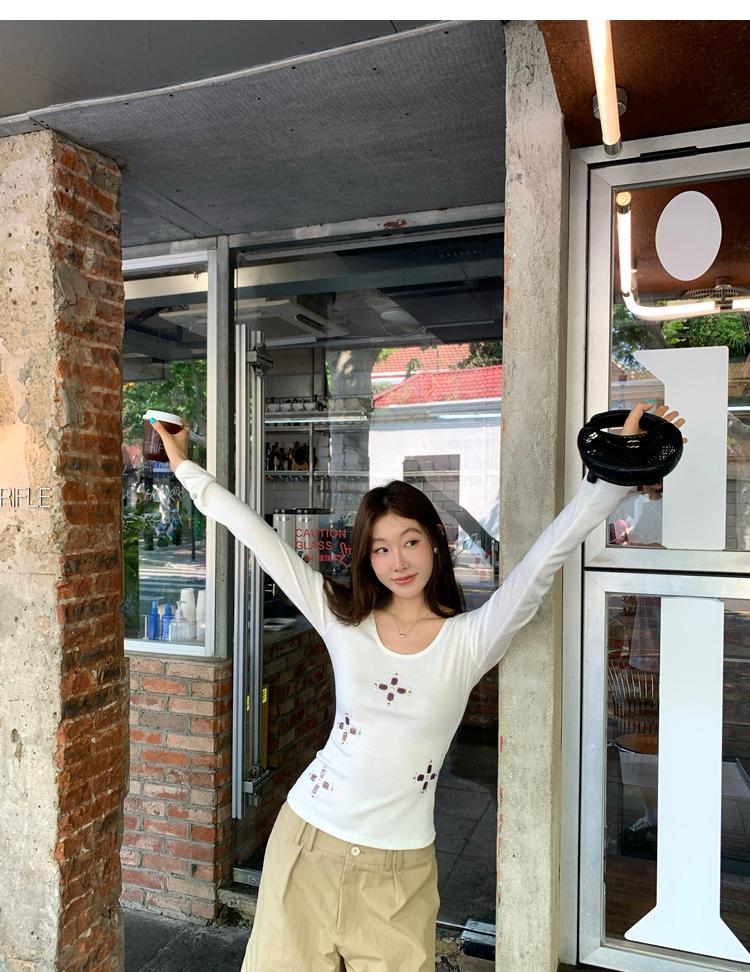 U-neck slim strap open back stretch top