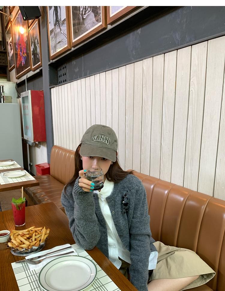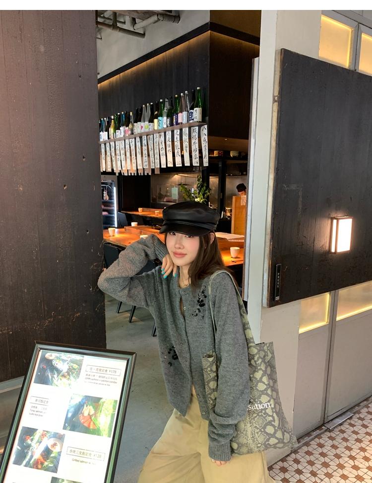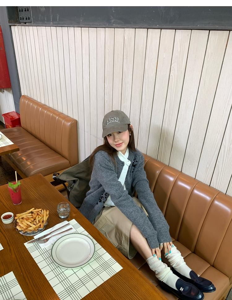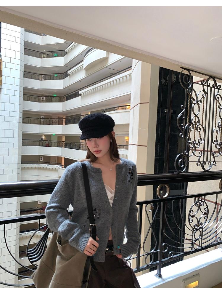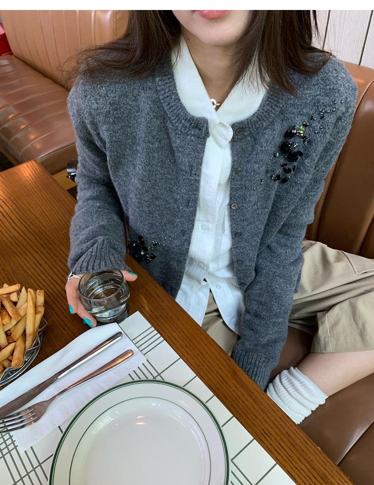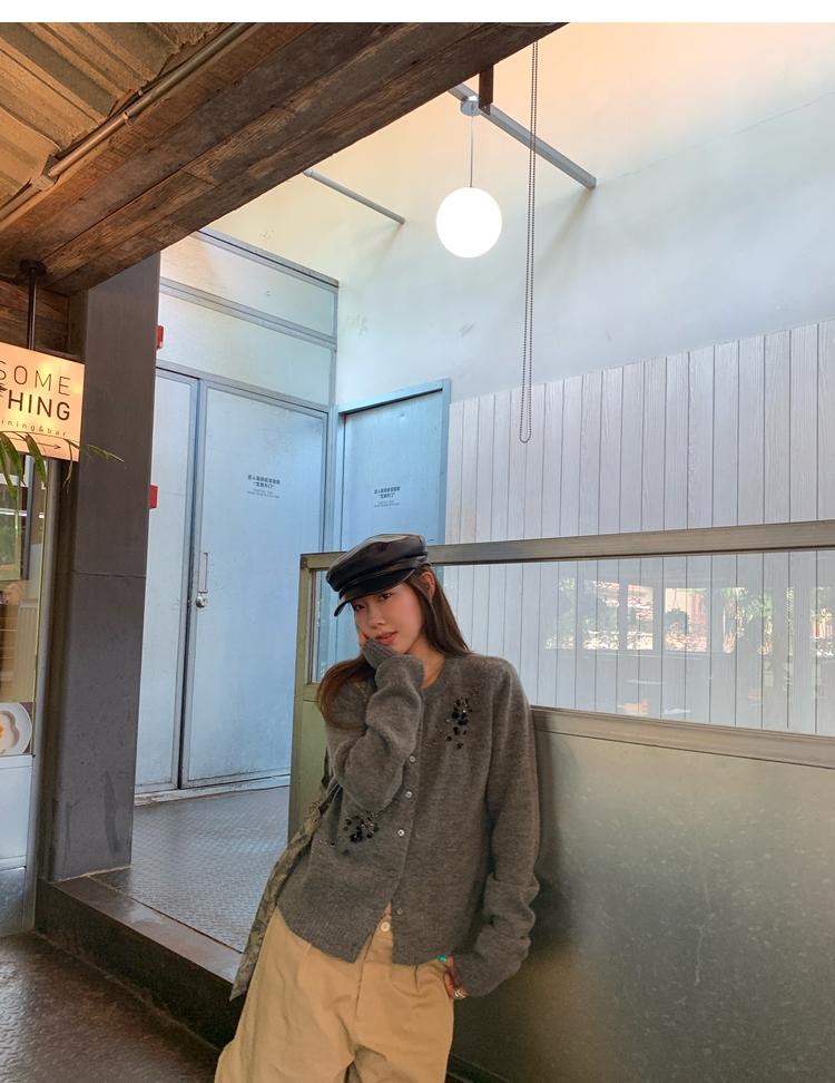 hand-beaded round neck wool knitted cardigan