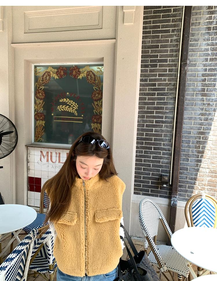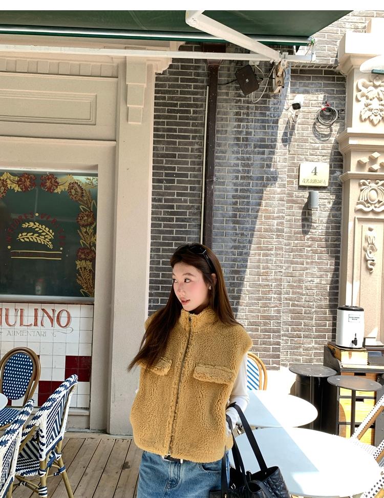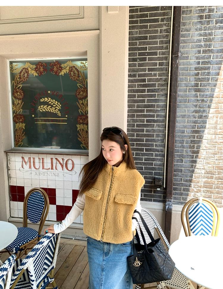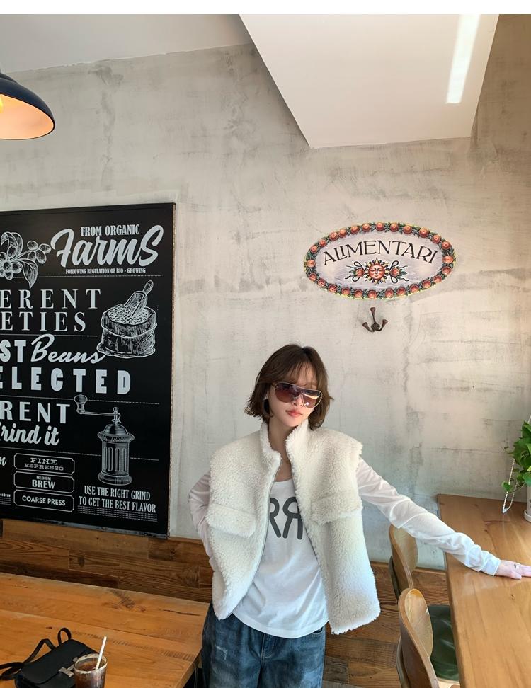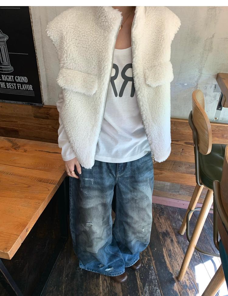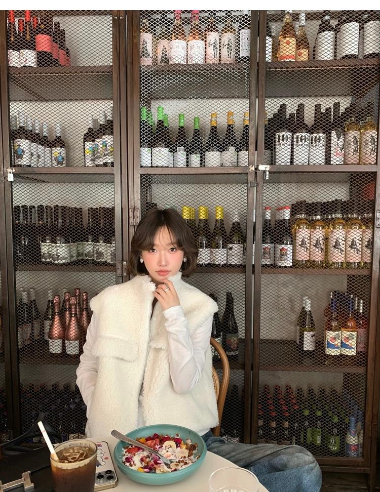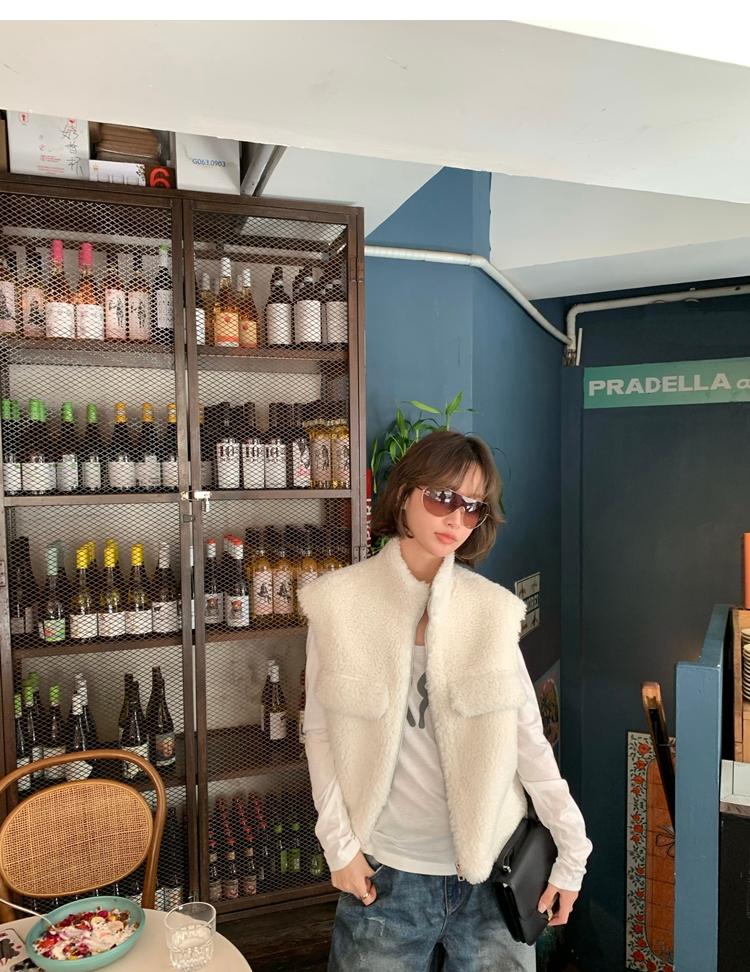 Milky Sheep Wool Sleeveless Zipper Lambswool Vest Jacket