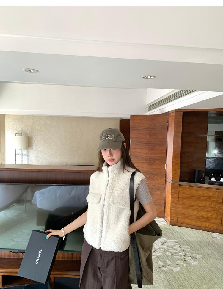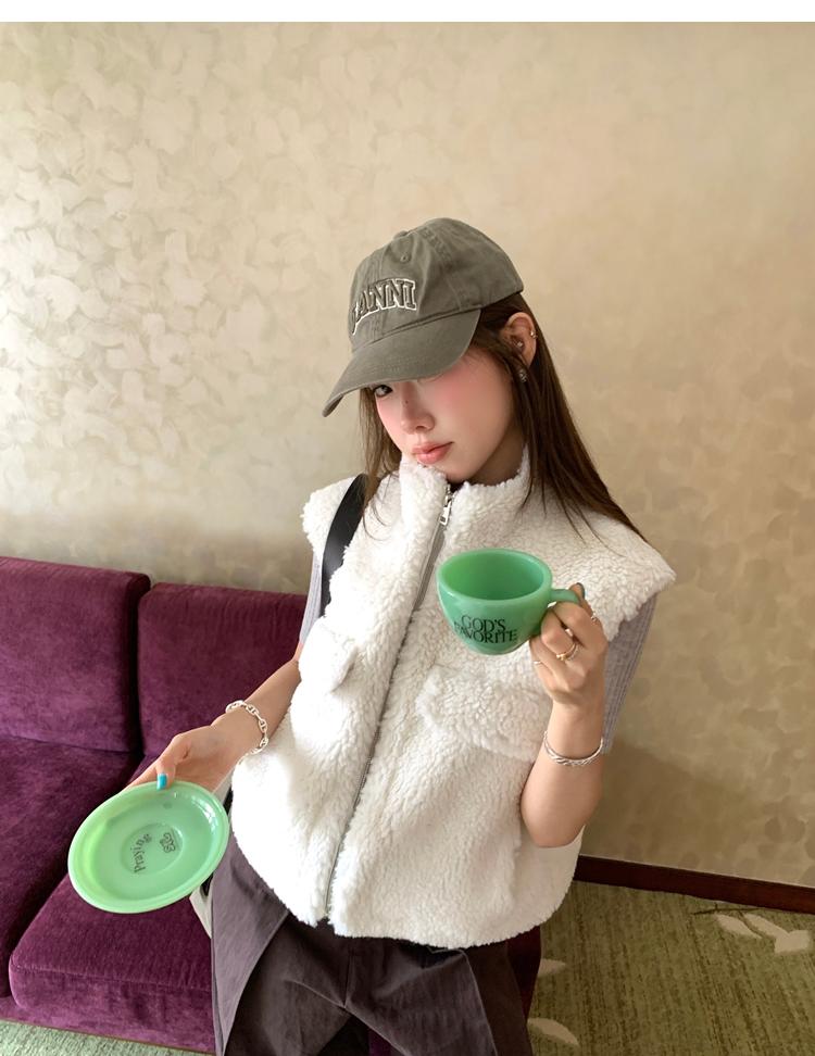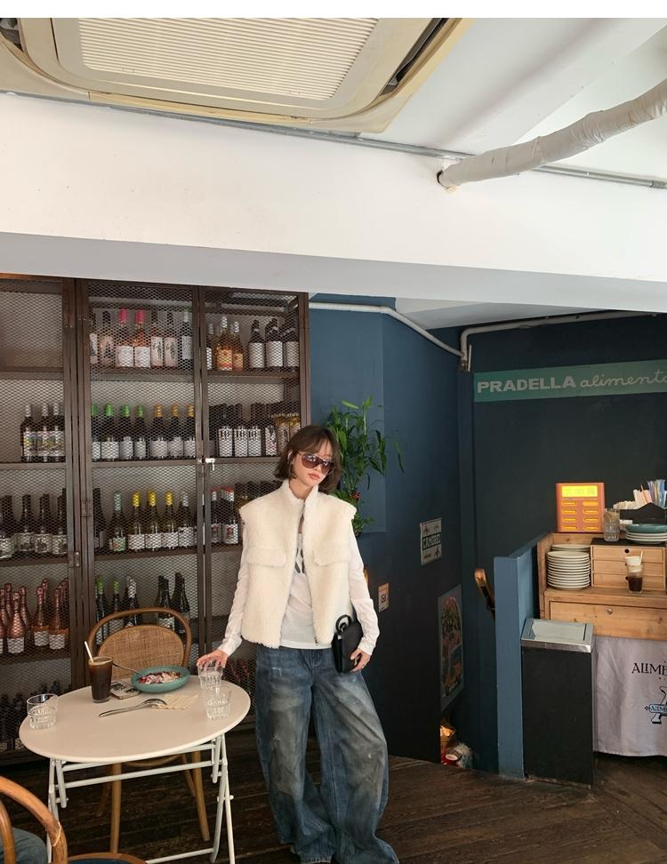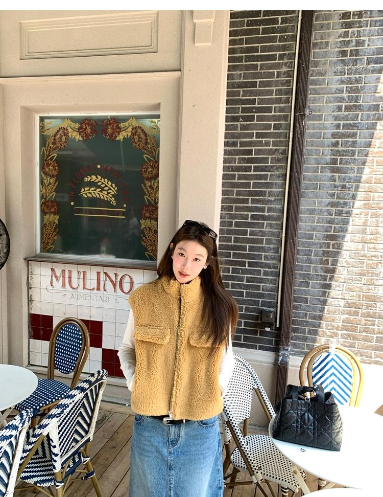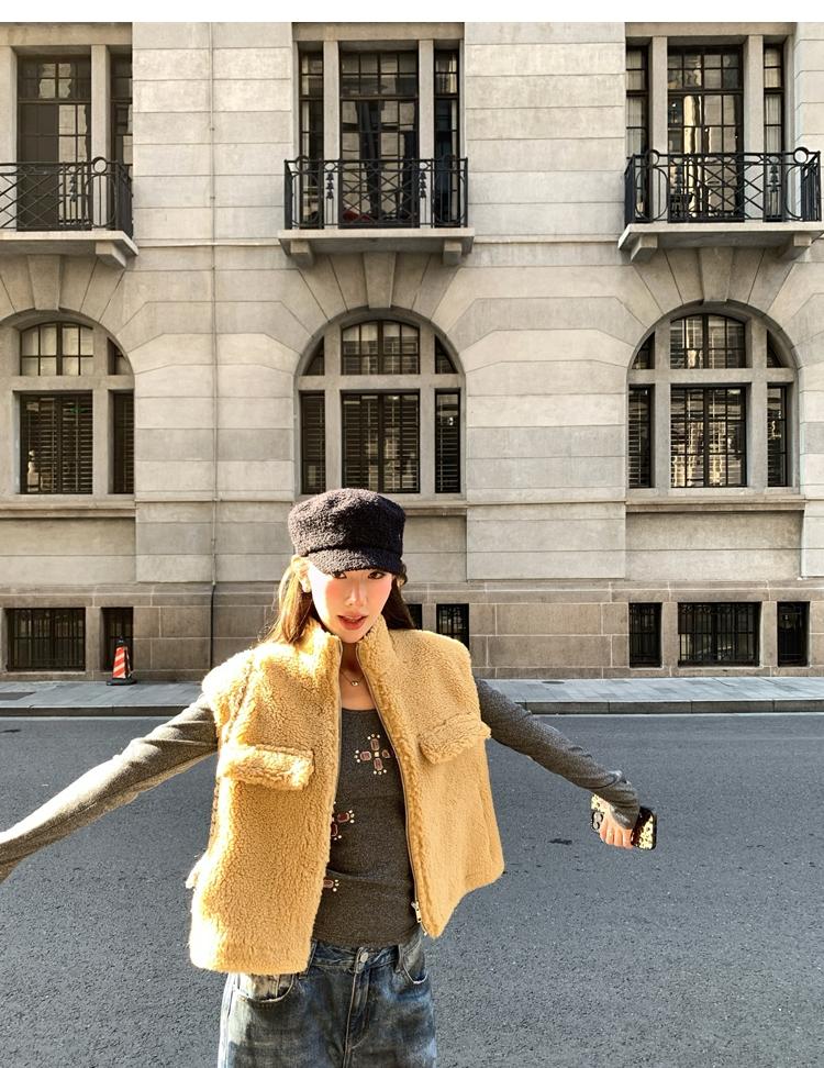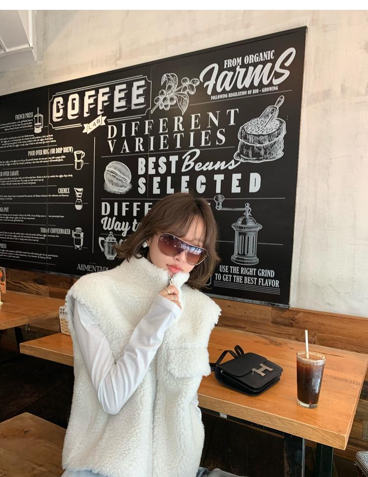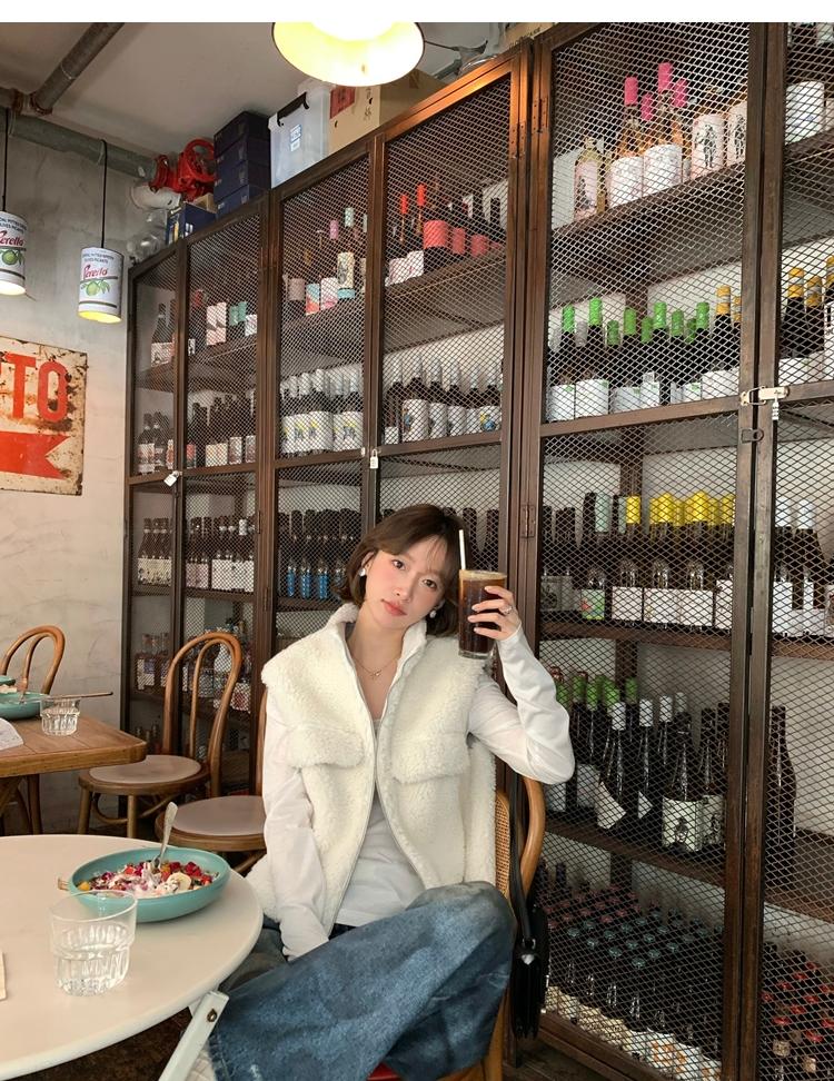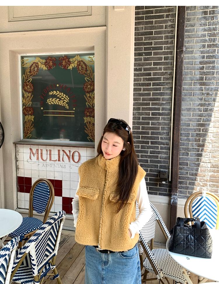 Milky Sheep Wool Sleeveless Zipper Lambswool Vest Jacket