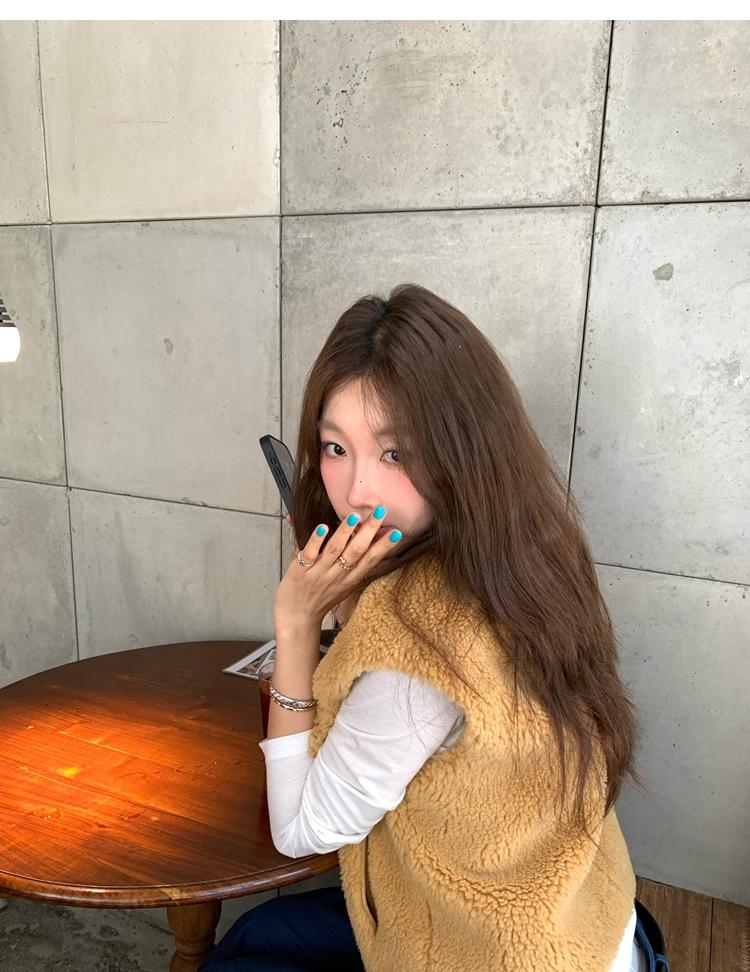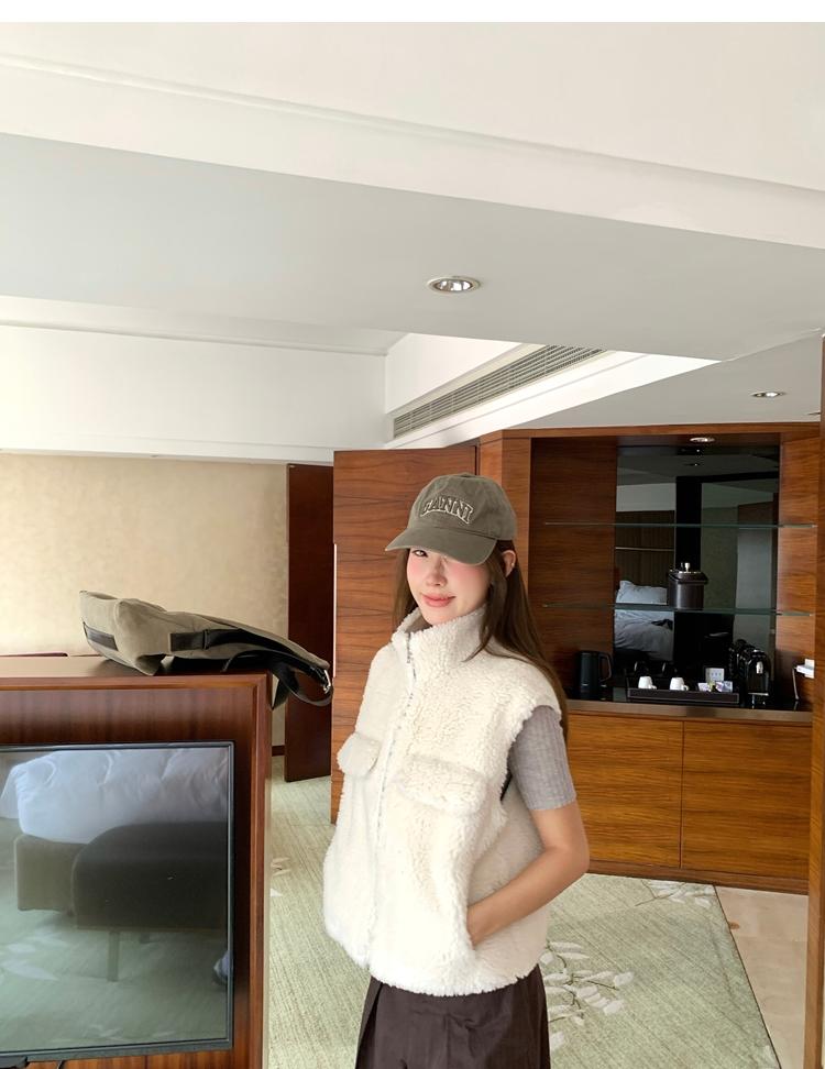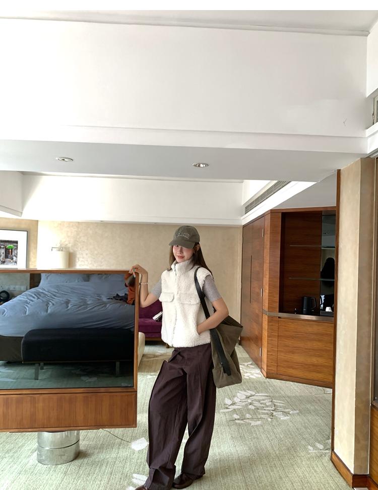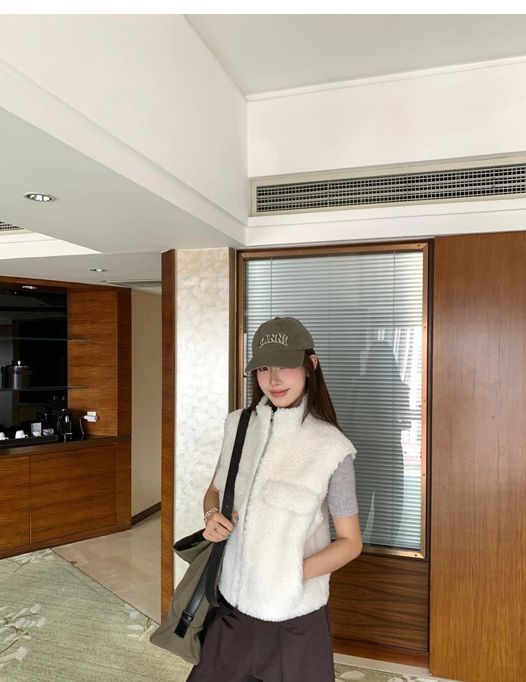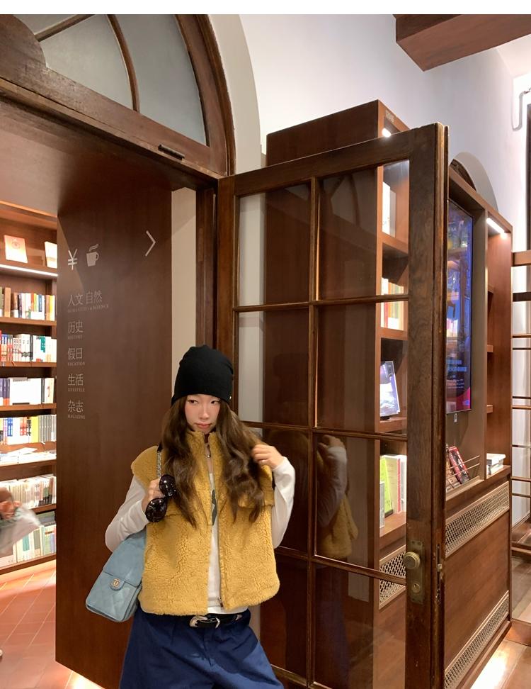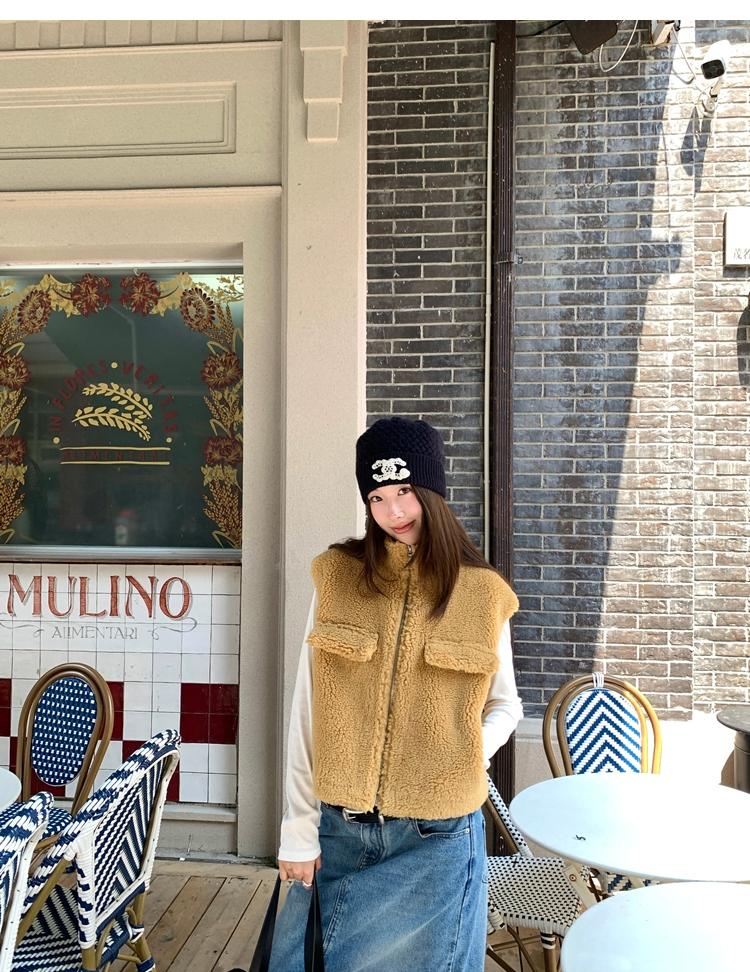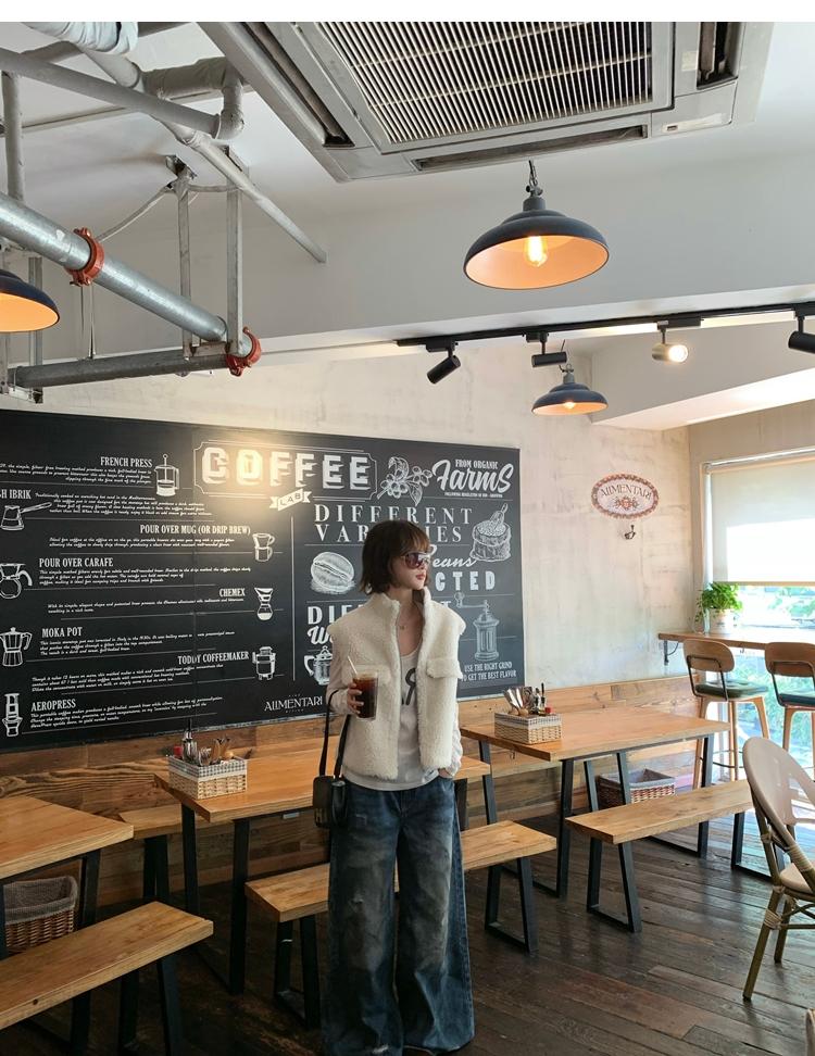 Milky Sheep Wool Sleeveless Zipper Lambswool Vest Jacket