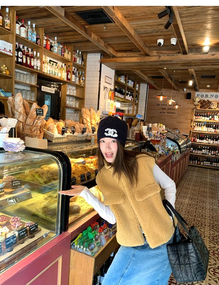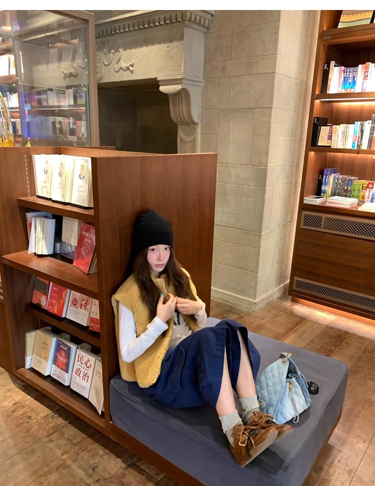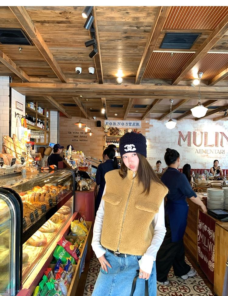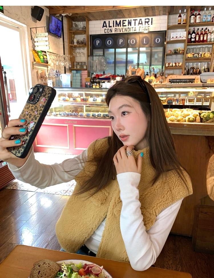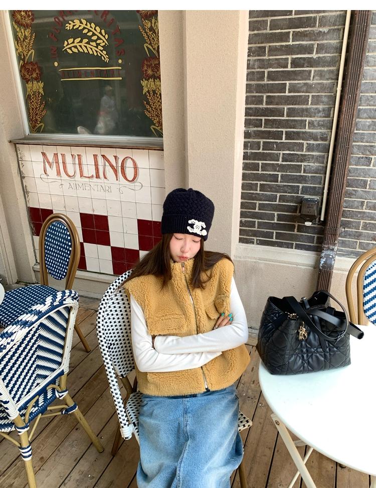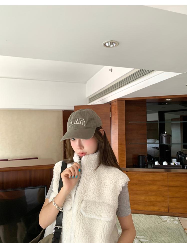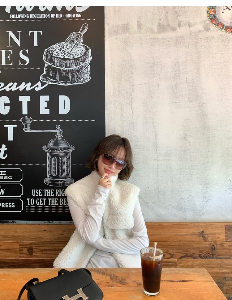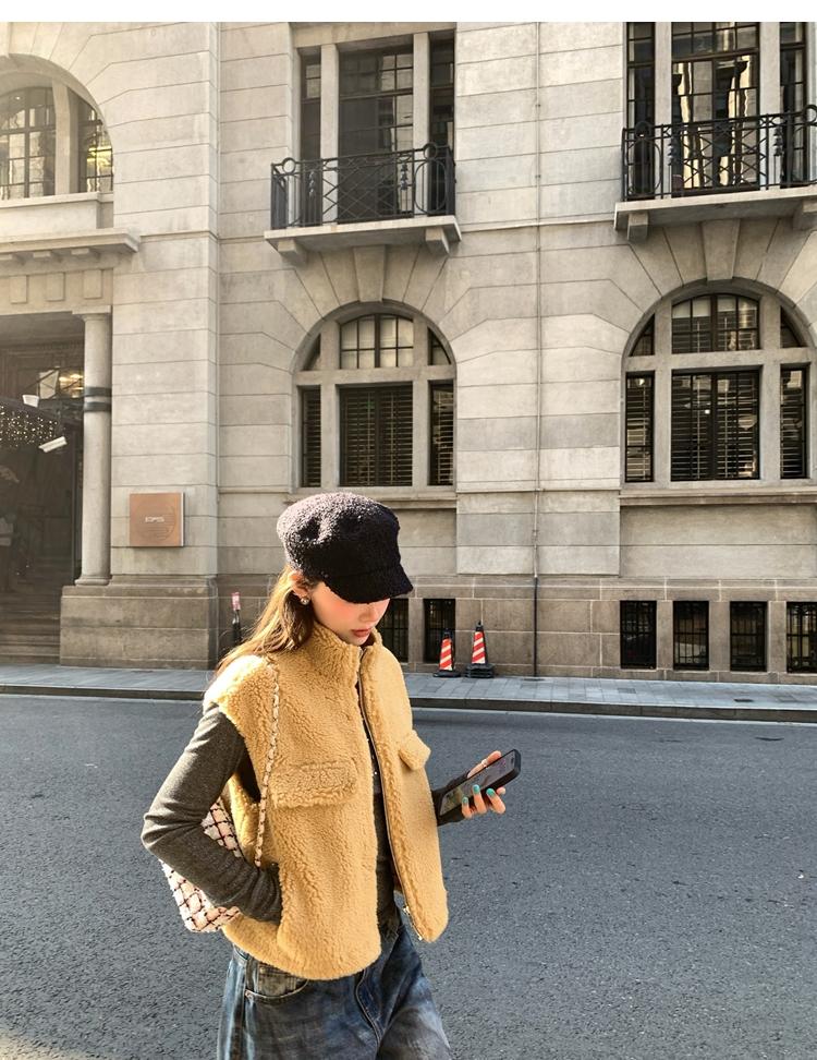 Milky Sheep Wool Sleeveless Zipper Lambswool Vest Jacket
