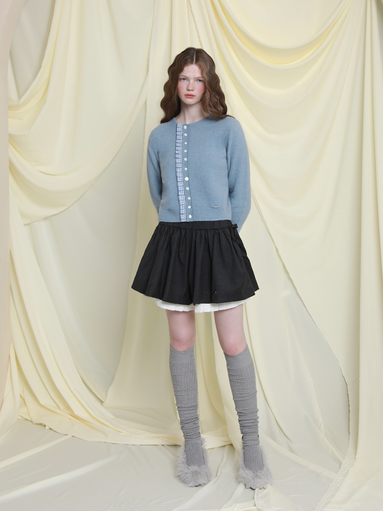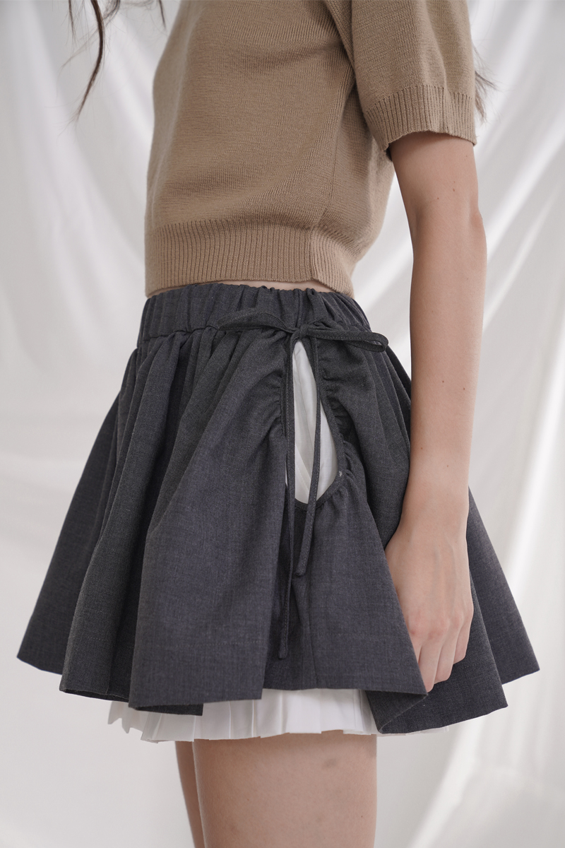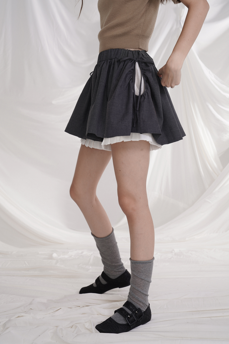 Wool silk pleated lace-up bowknot A-line elastic shorts