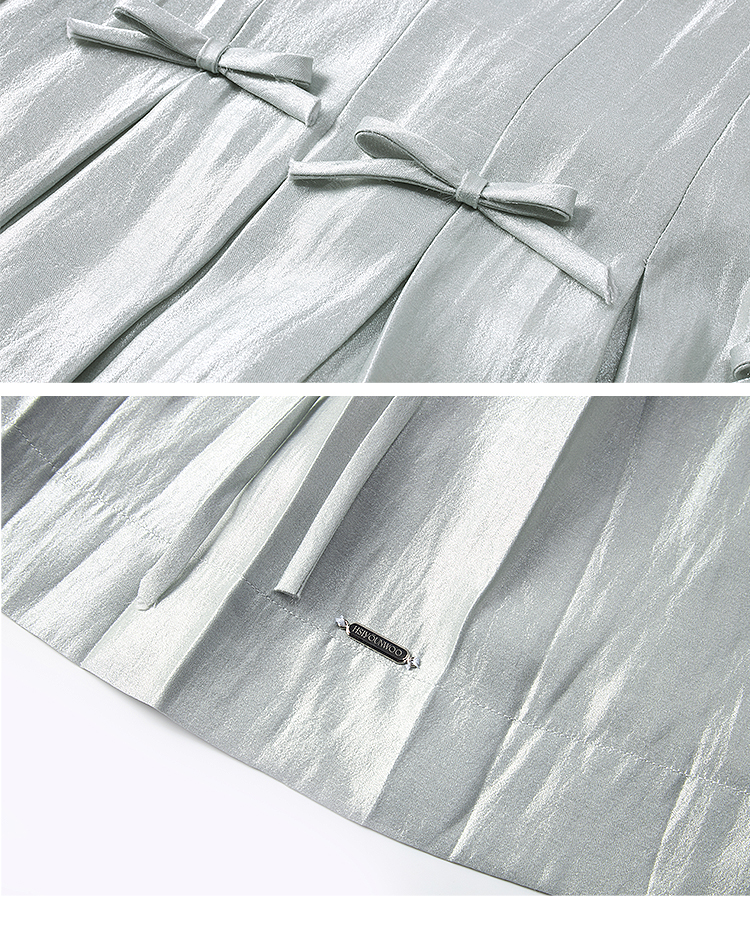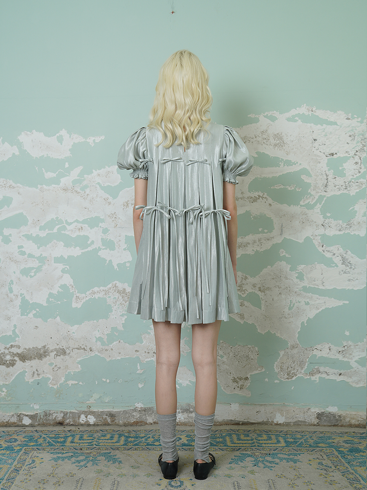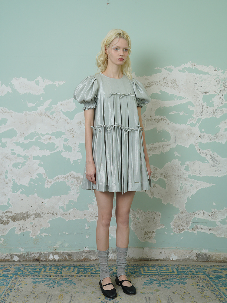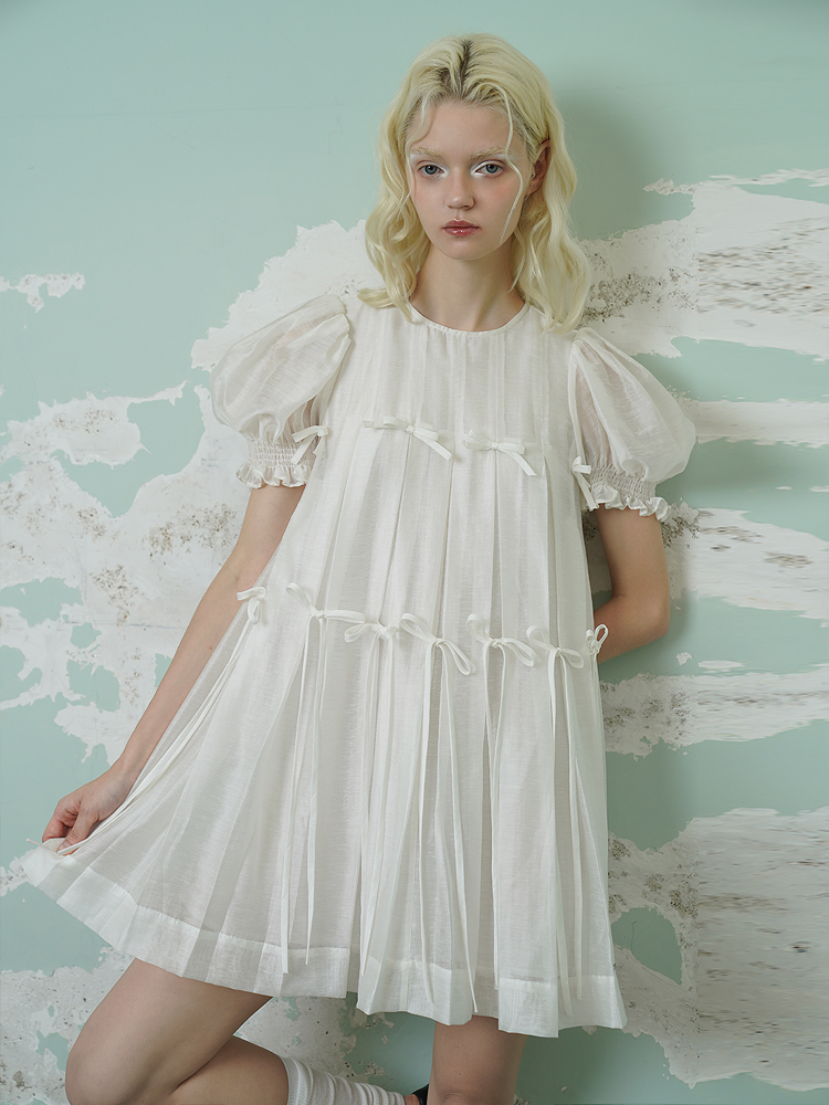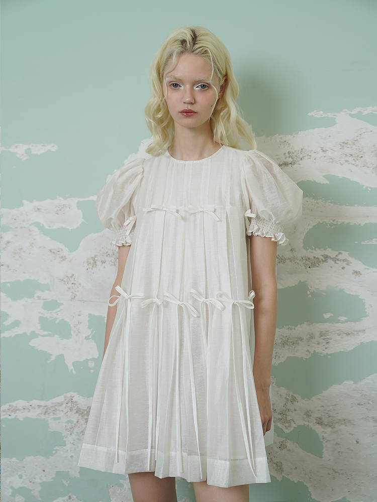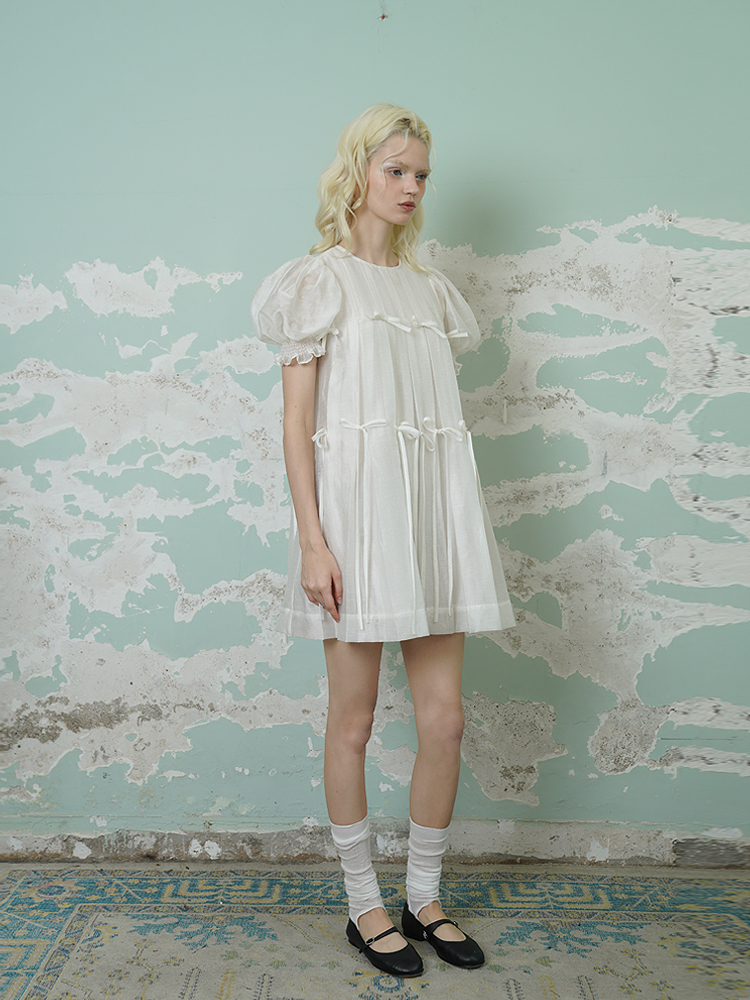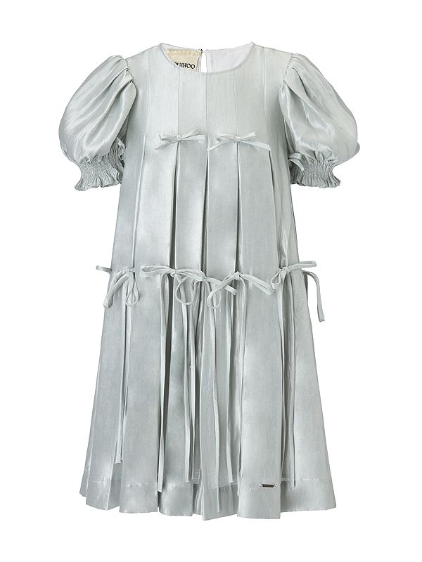 Silk and linen high-end puff sleeve doll fairy A-line dress