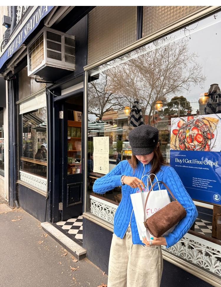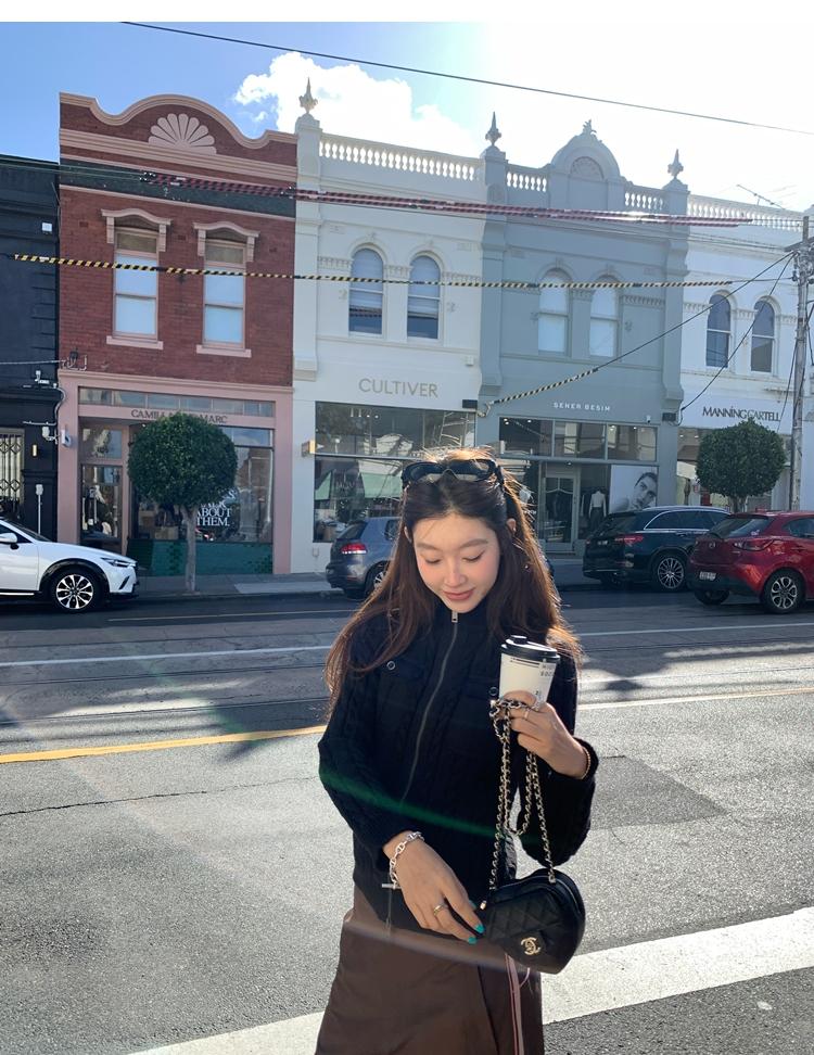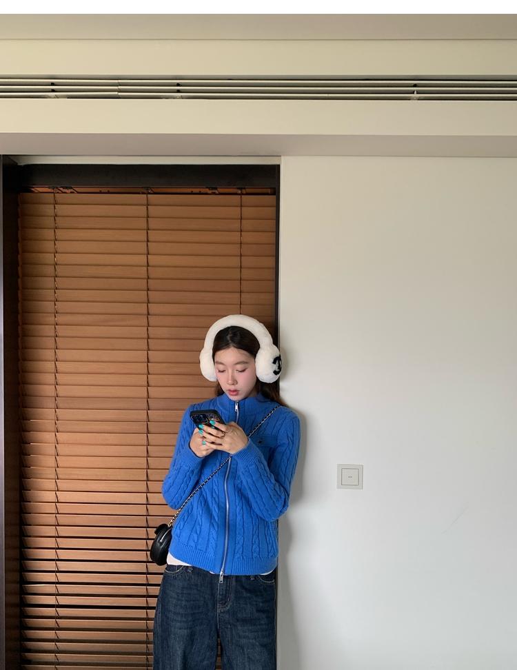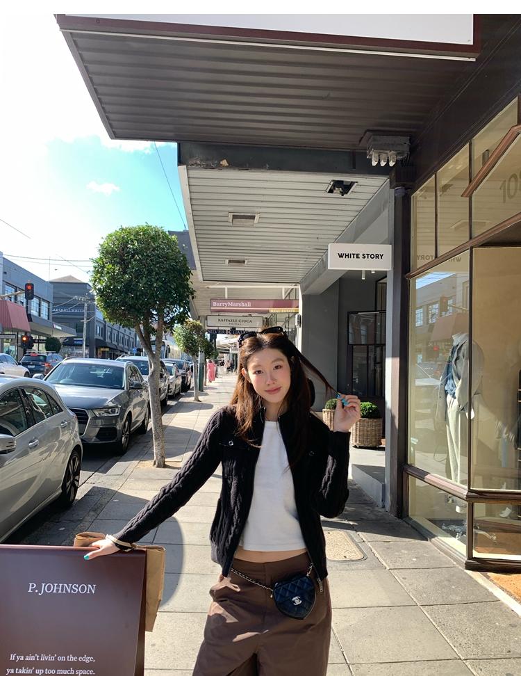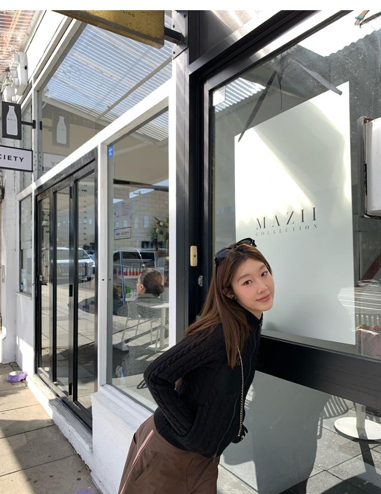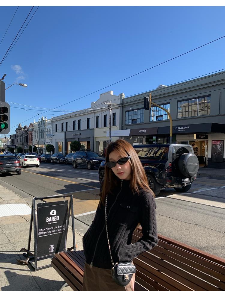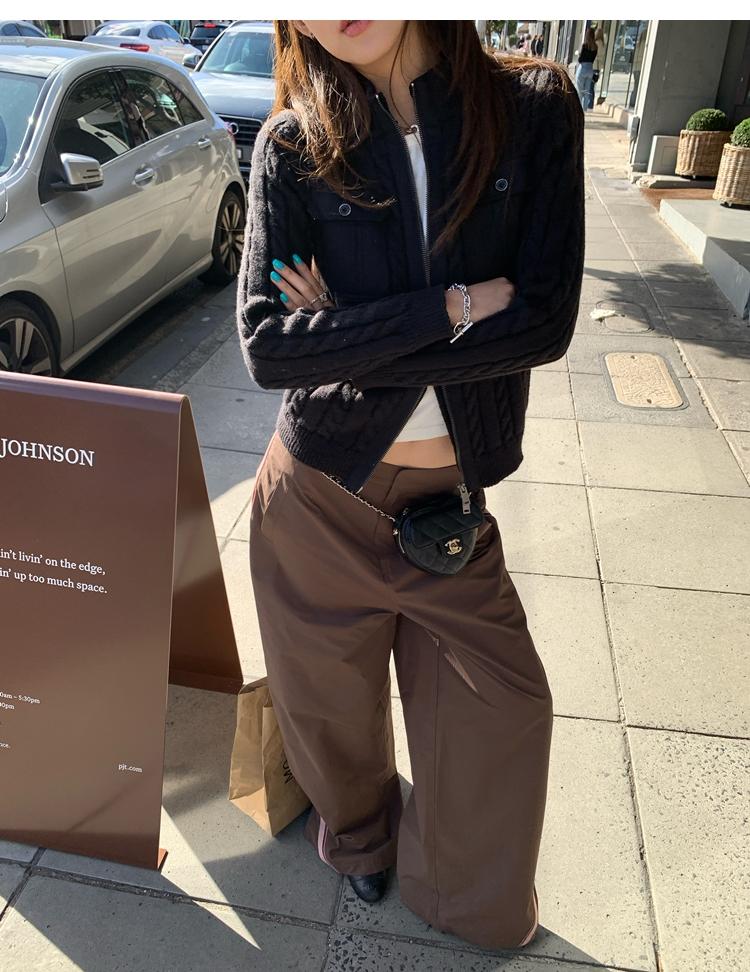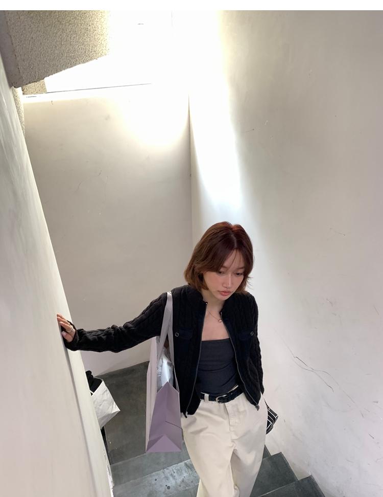 minimalist Row casual stand-up collar double pocket zipper cable knit cardigan