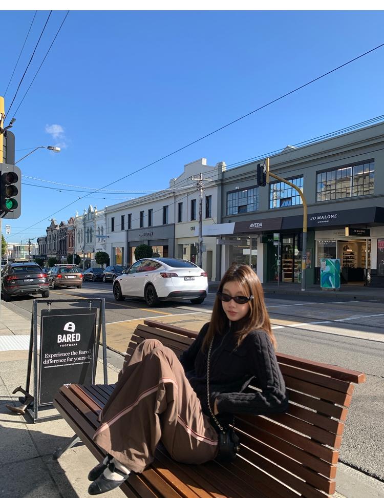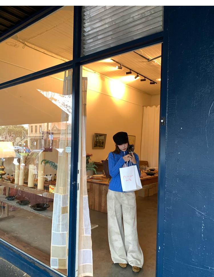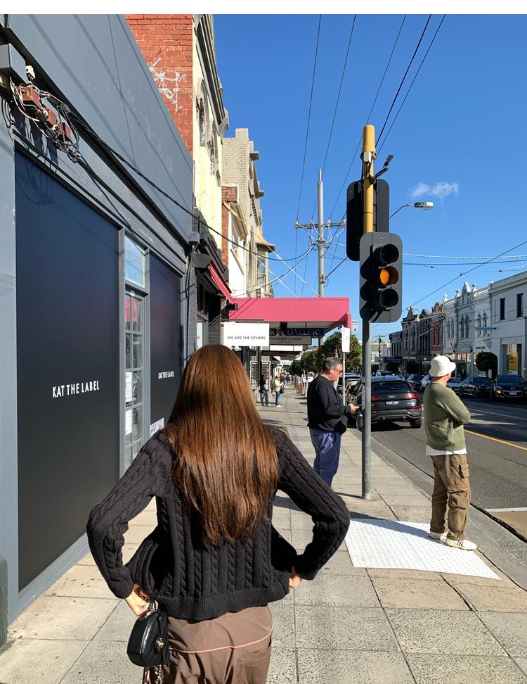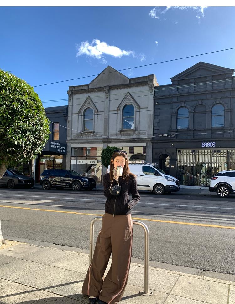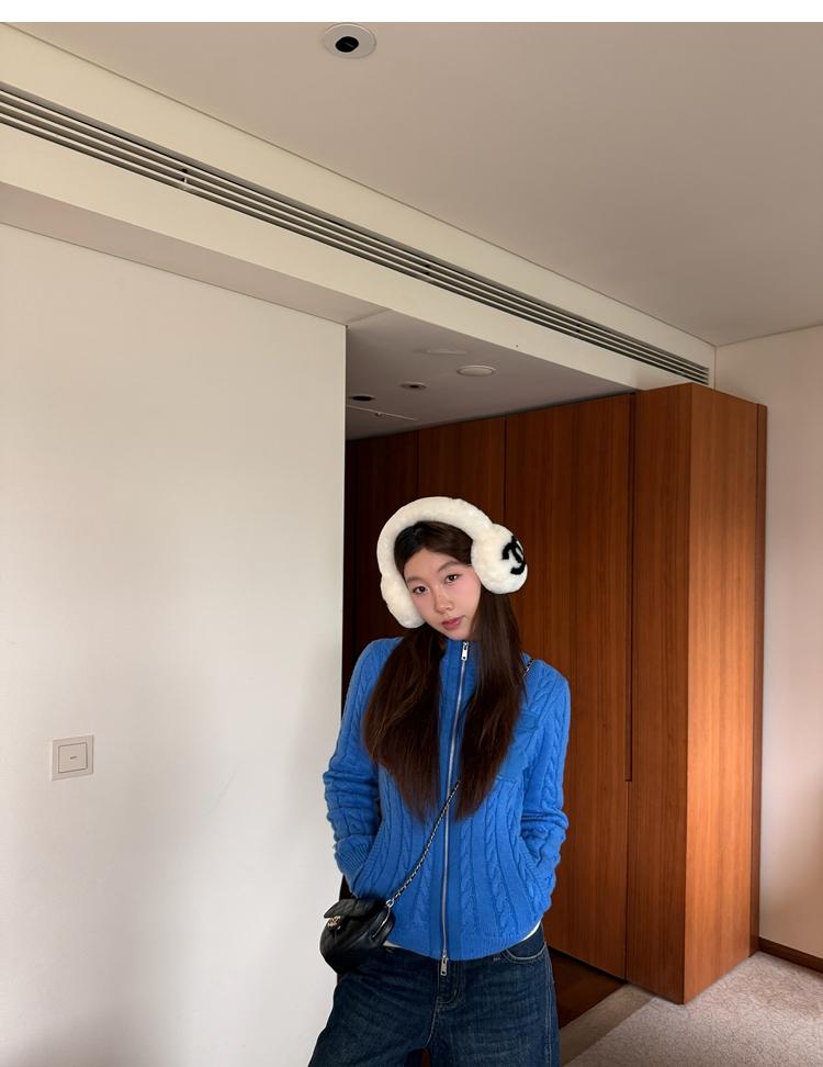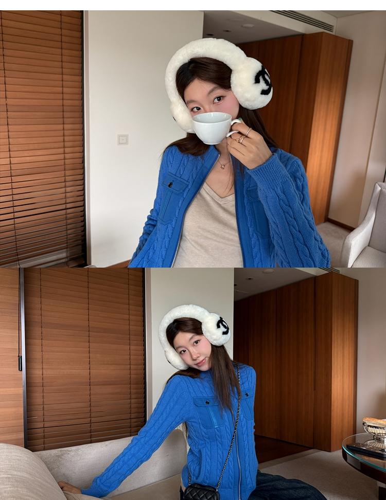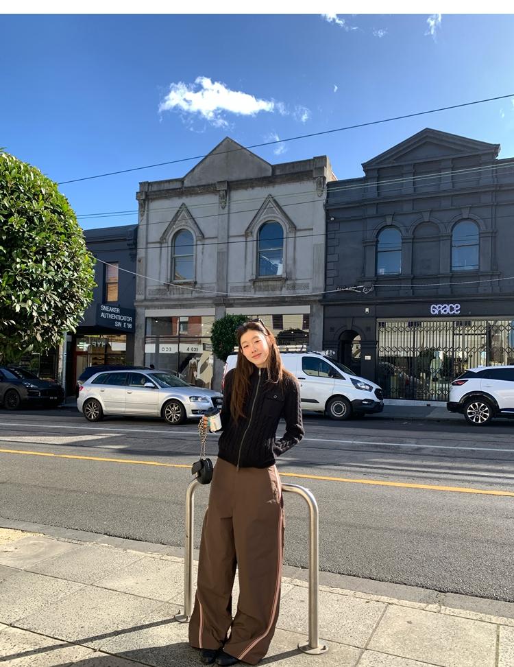 minimalist Row casual stand-up collar double pocket zipper cable knit cardigan