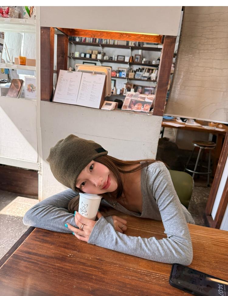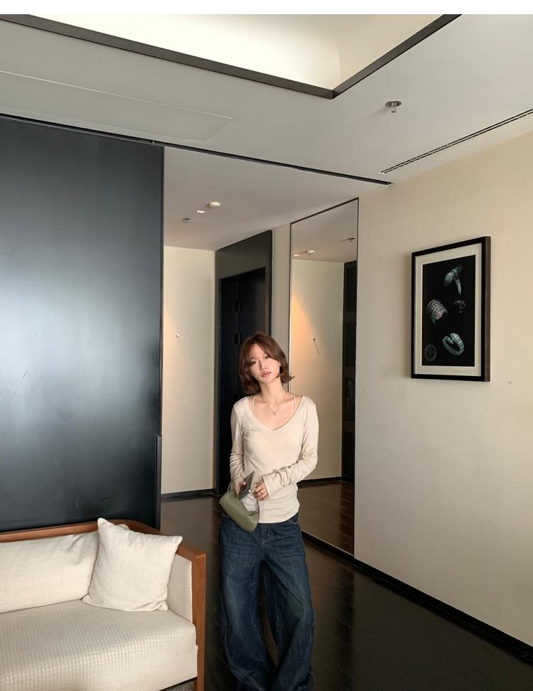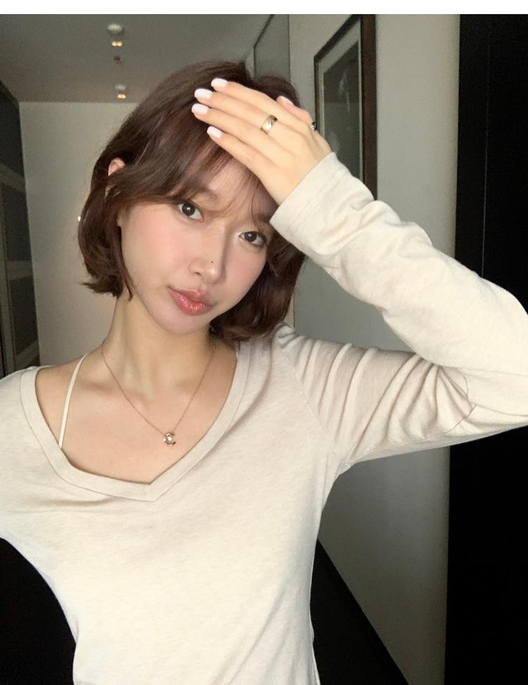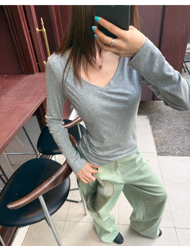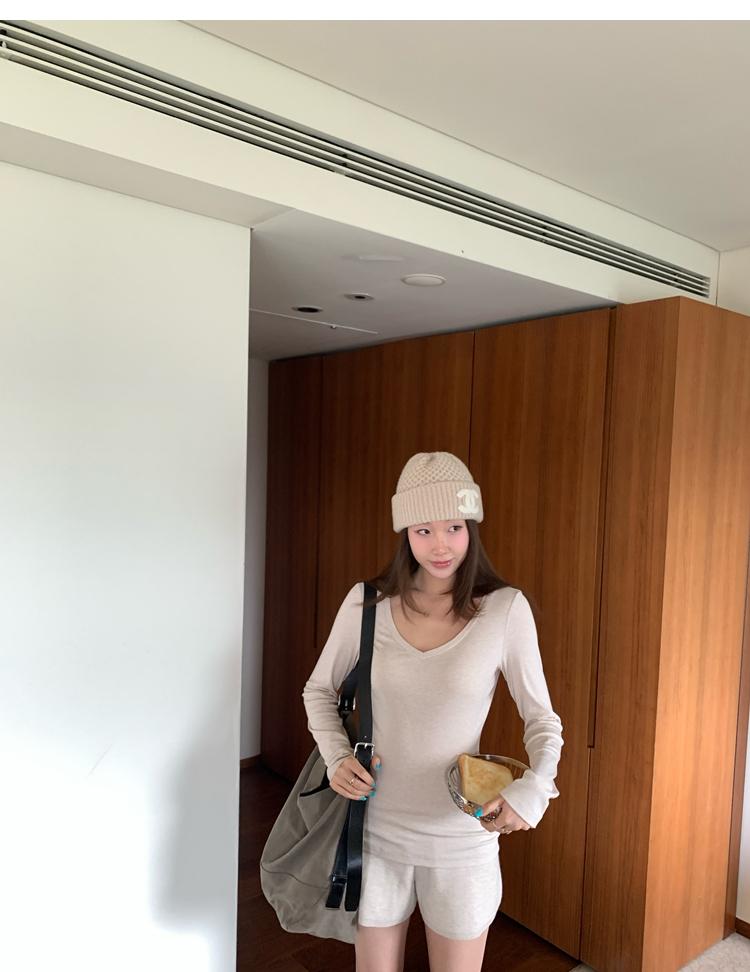 Tencel wool V-neck knit top