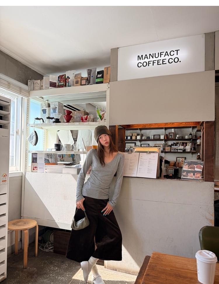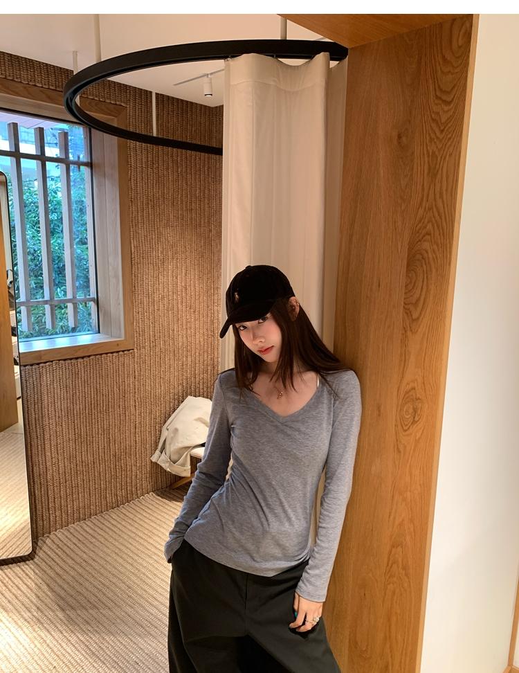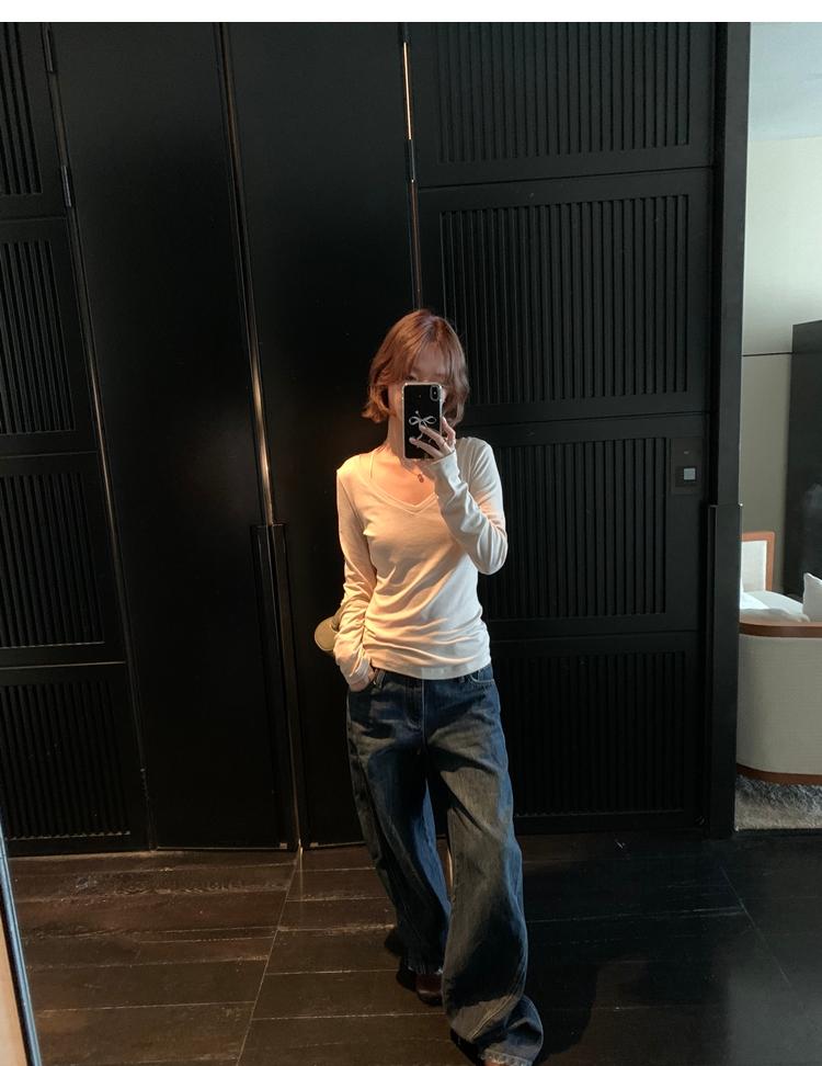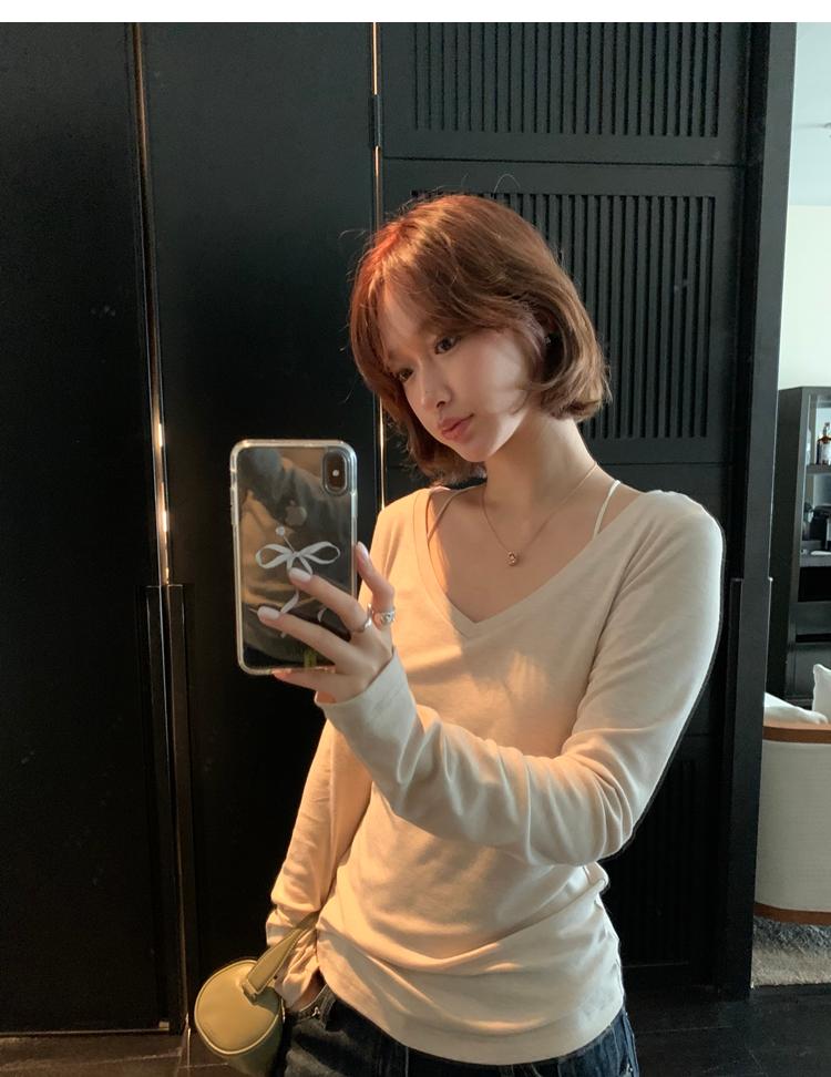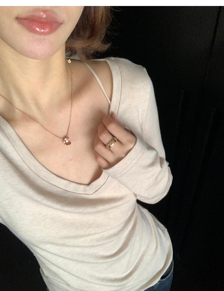 Tencel wool V-neck knit top