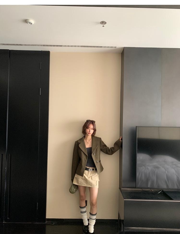 Hunter basic double pocket small A-line loose slim short skirt