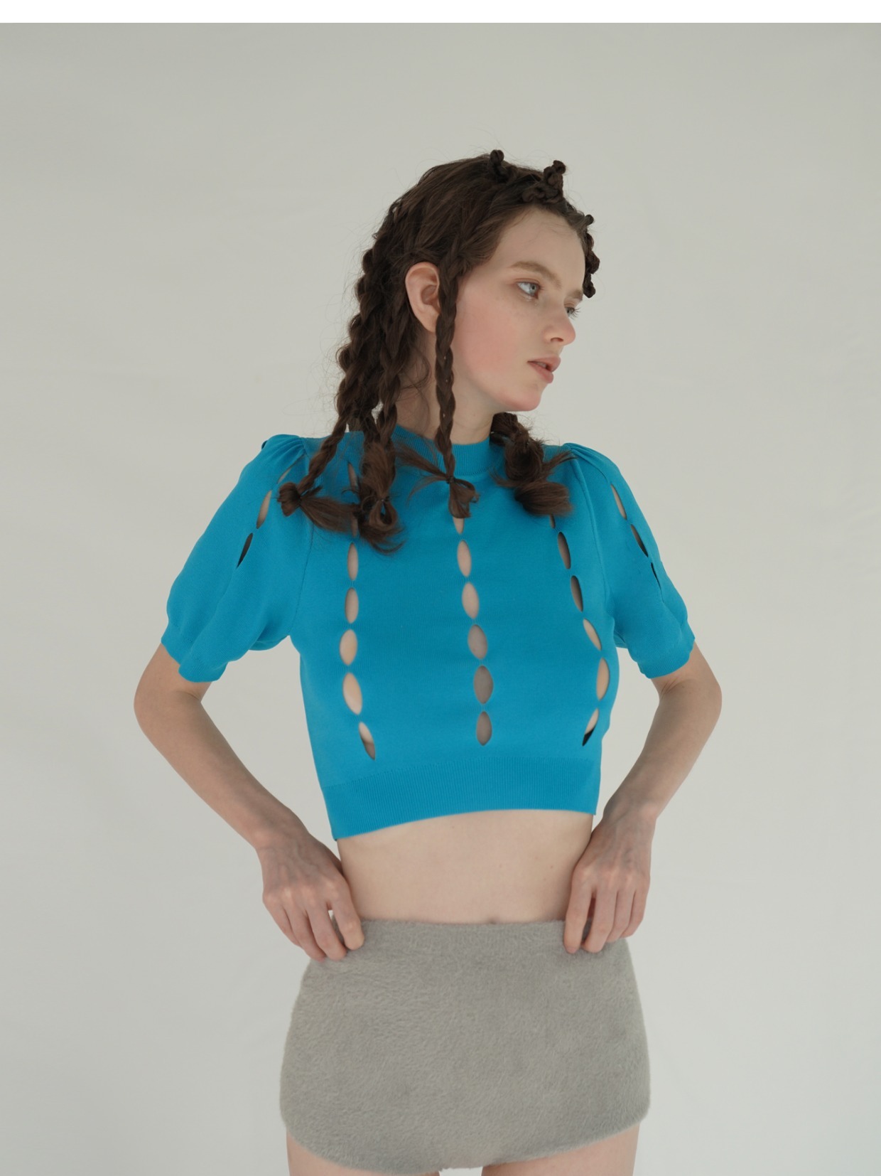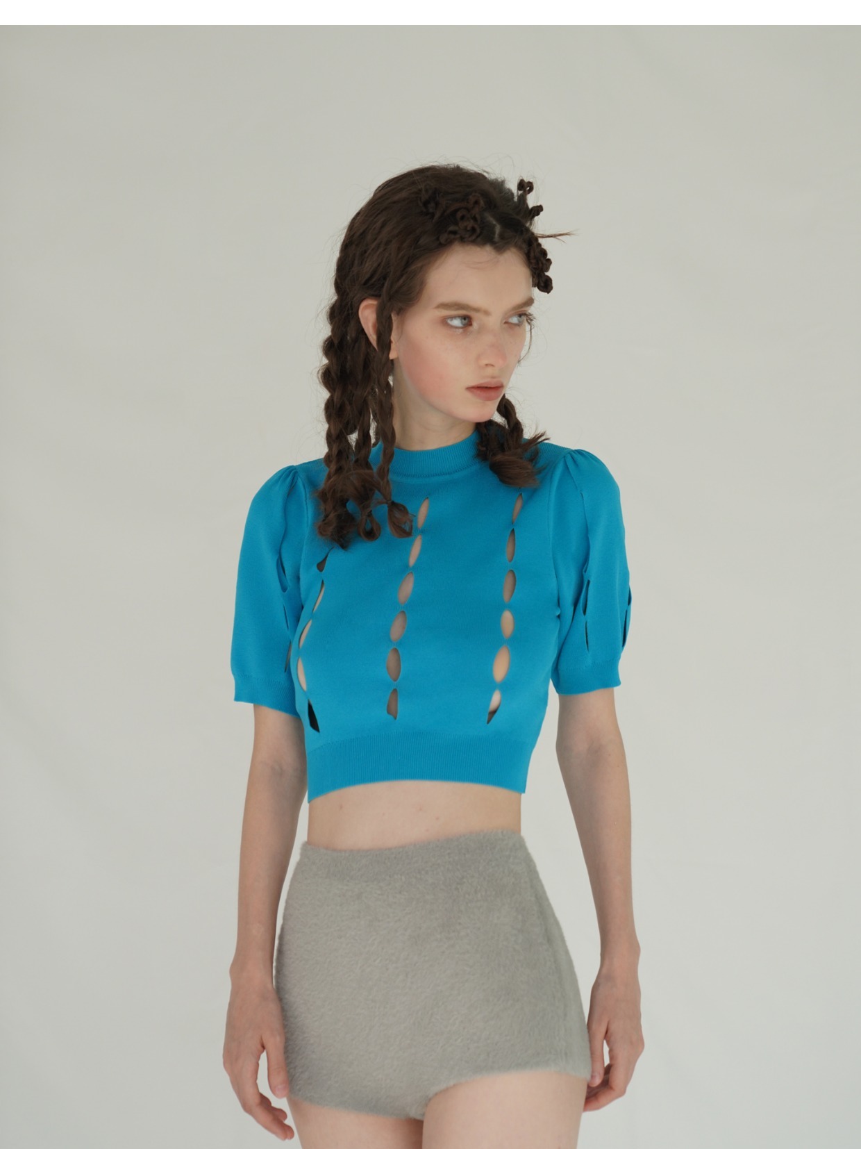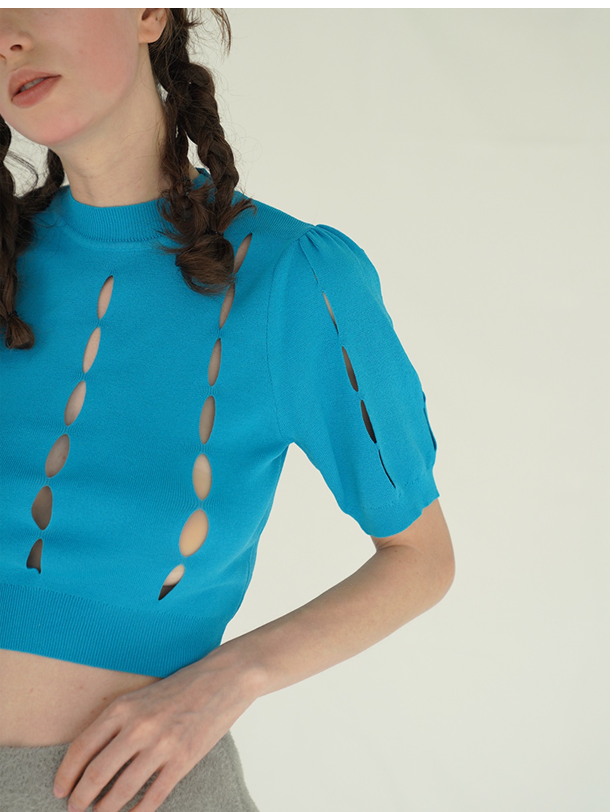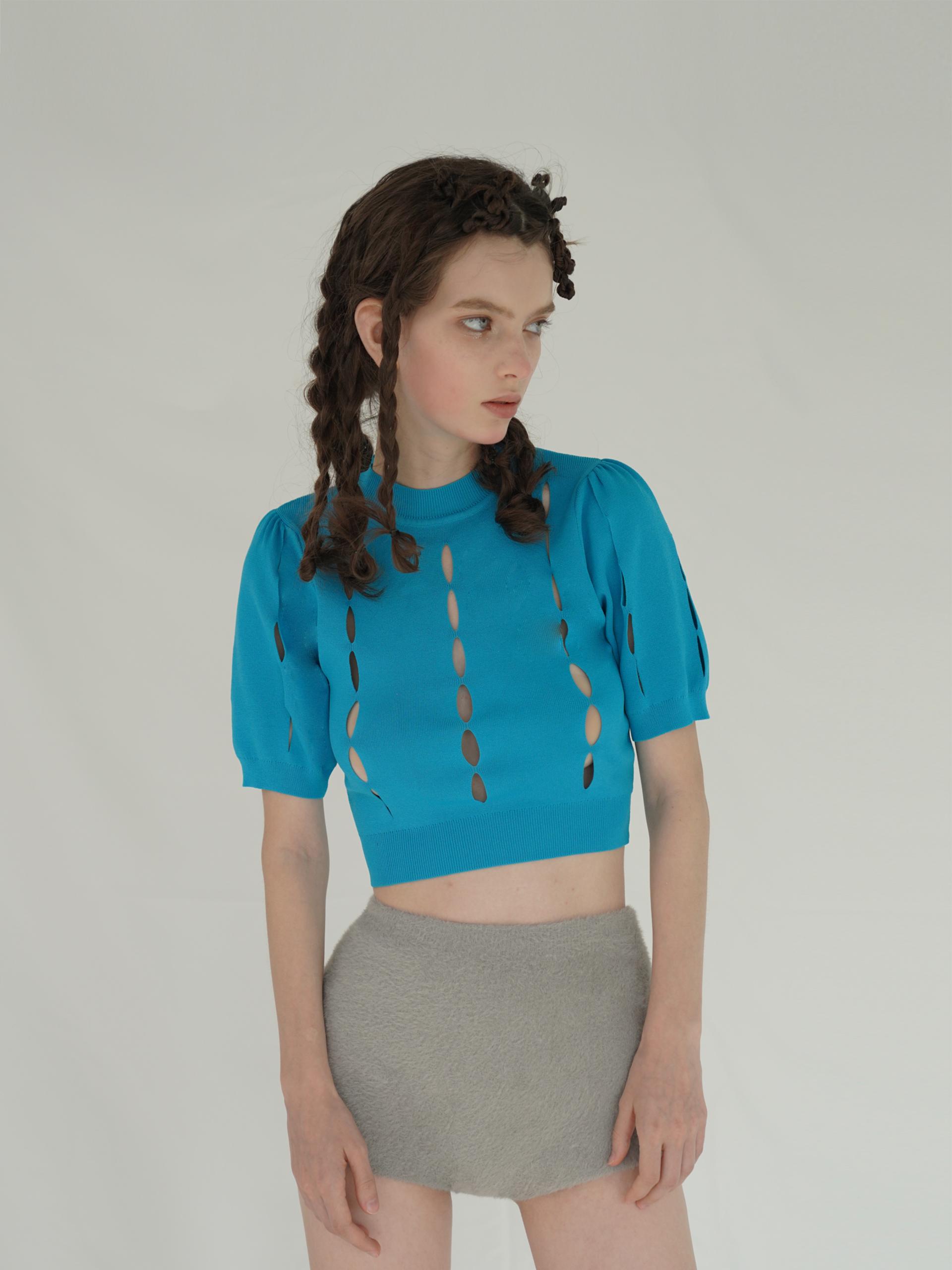 Versatile ice silk puff sleeves short sleeve pullover knitted