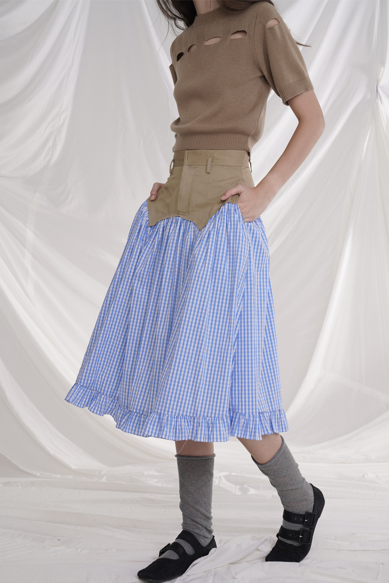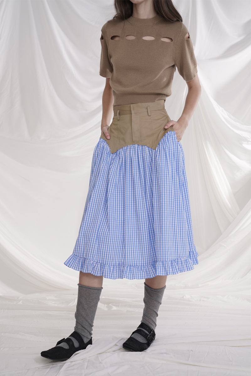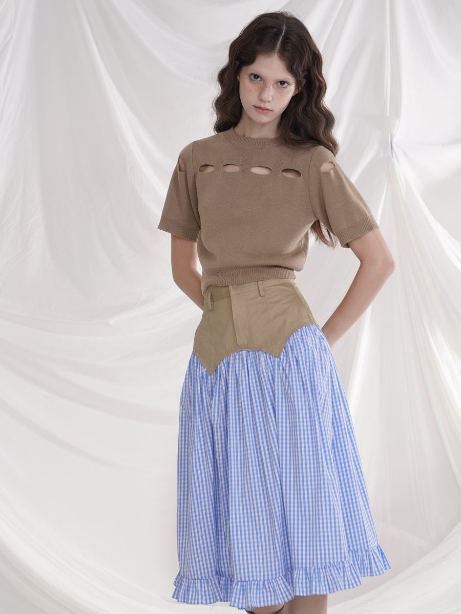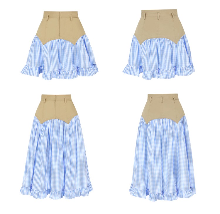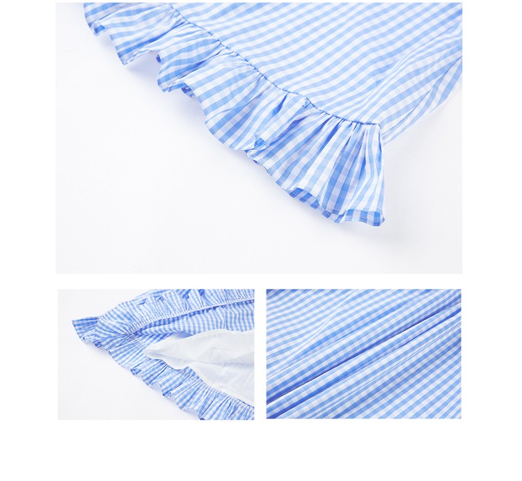 Cotton plaid niche sweet high waist slim ruffle skirt A-line skirt