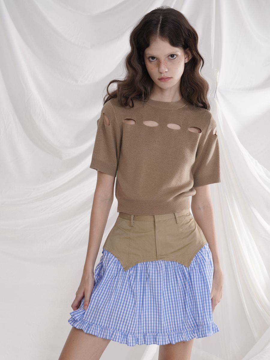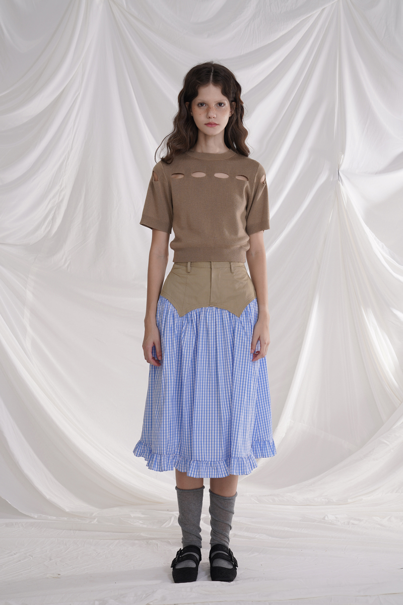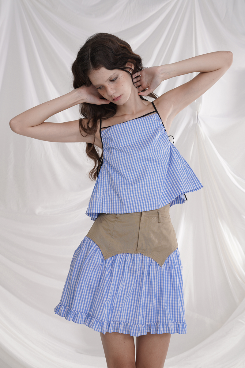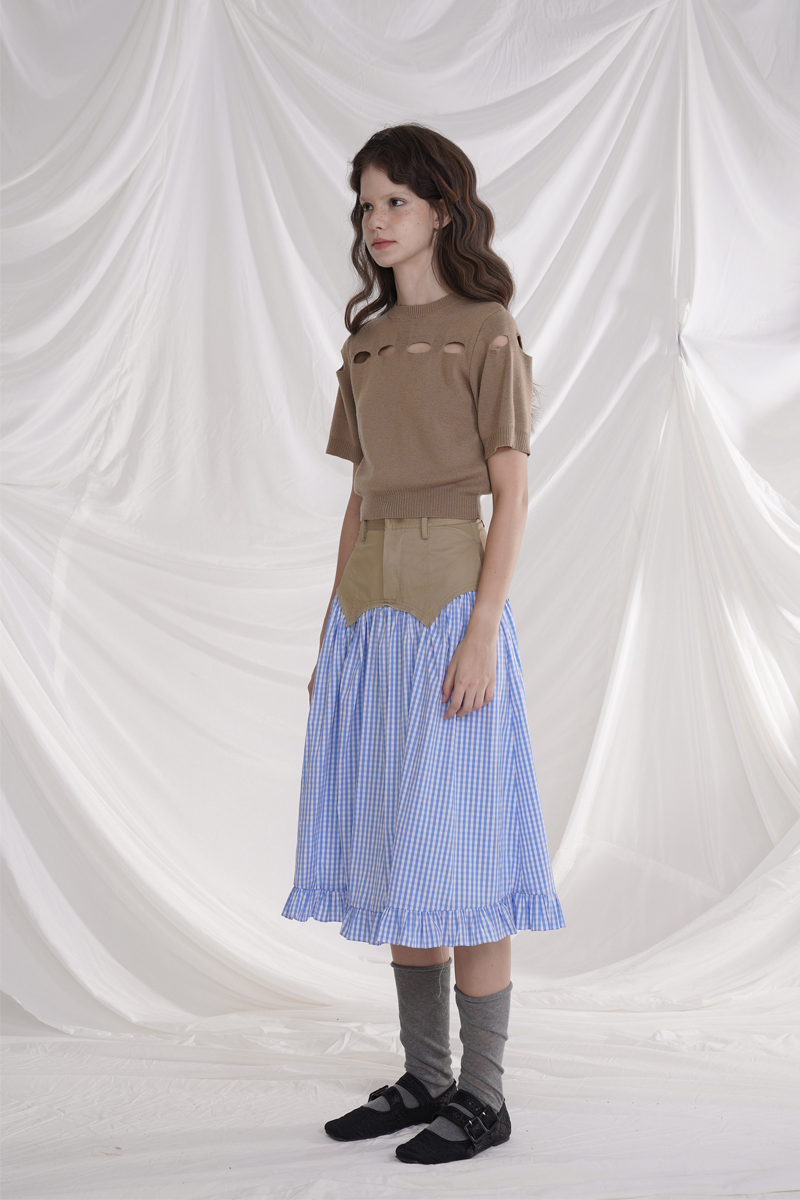 Cotton plaid niche sweet high waist slim ruffle skirt A-line skirt