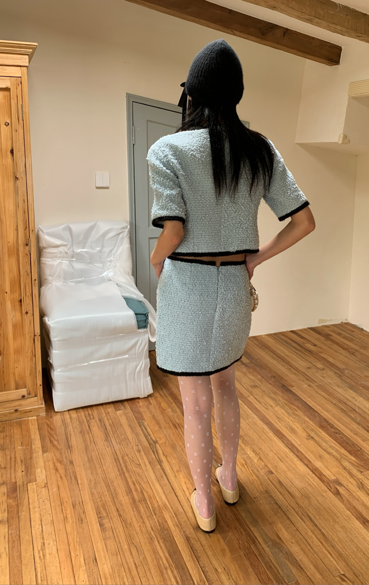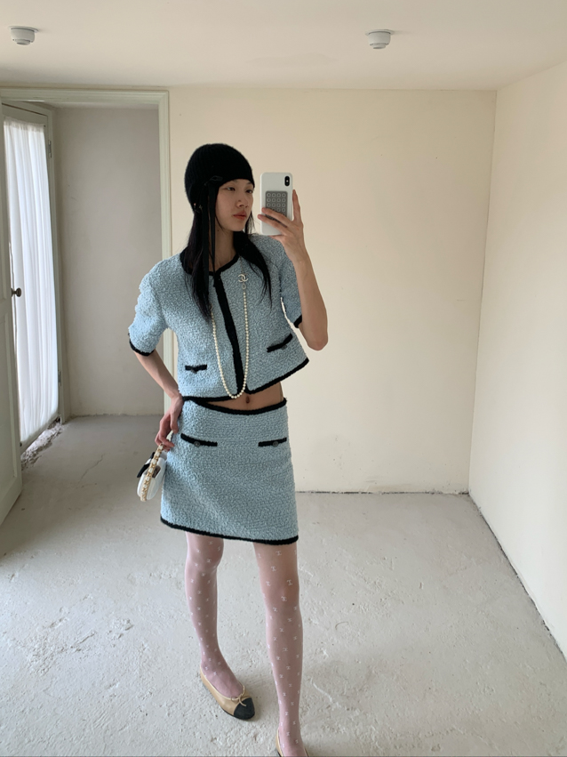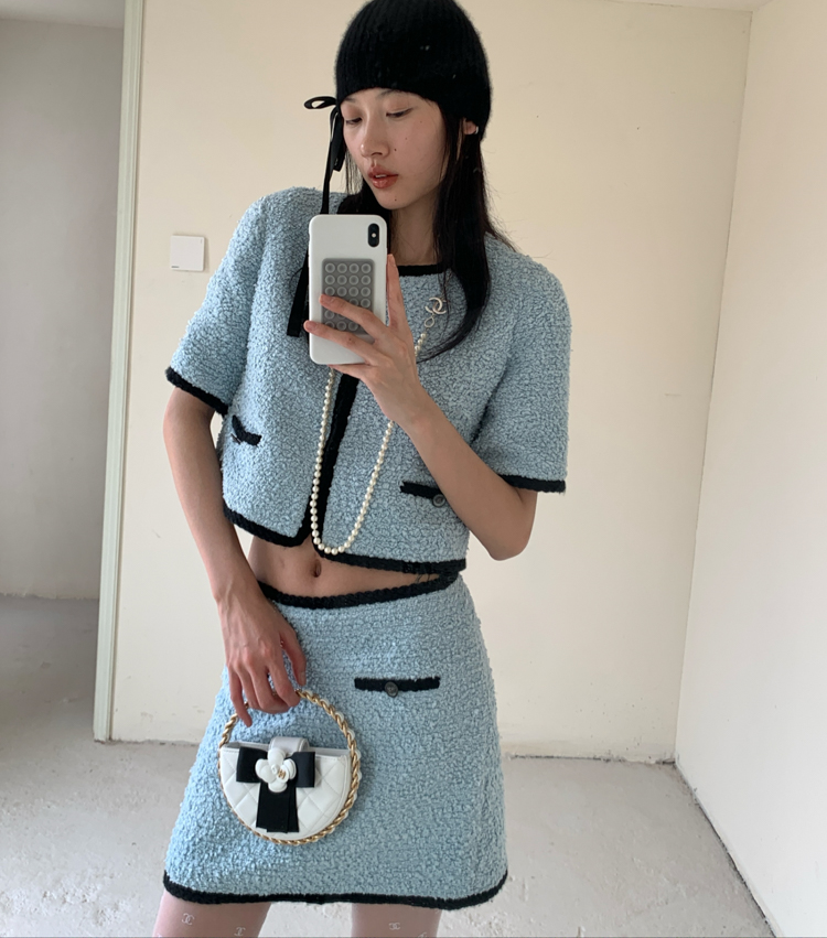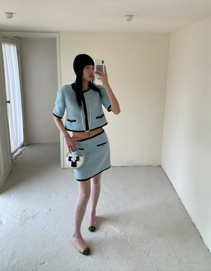 Special Yarn Round Neck Small Fragrant Breeze Jacket Short Set