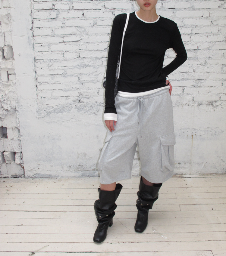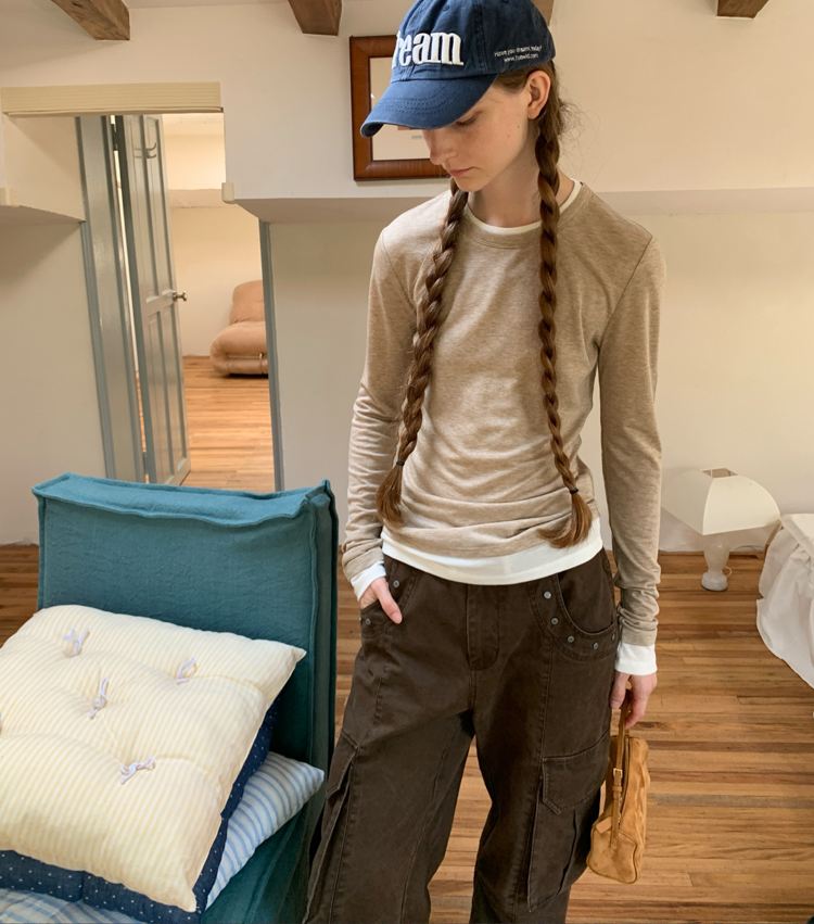 Tencel Wool Match Color Fake Two-Piece Round Neck Underwear Top