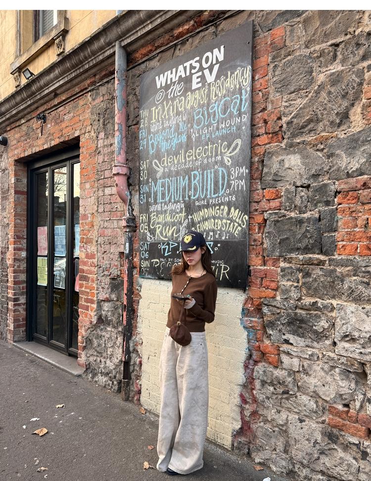 Paris slightly hand-dyed splash point straight loose wide-leg pants