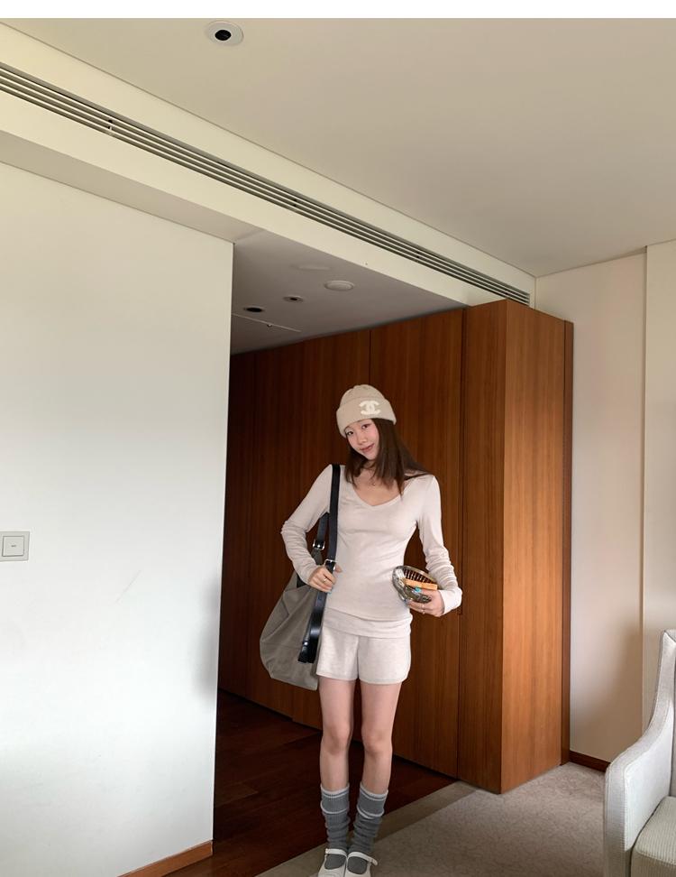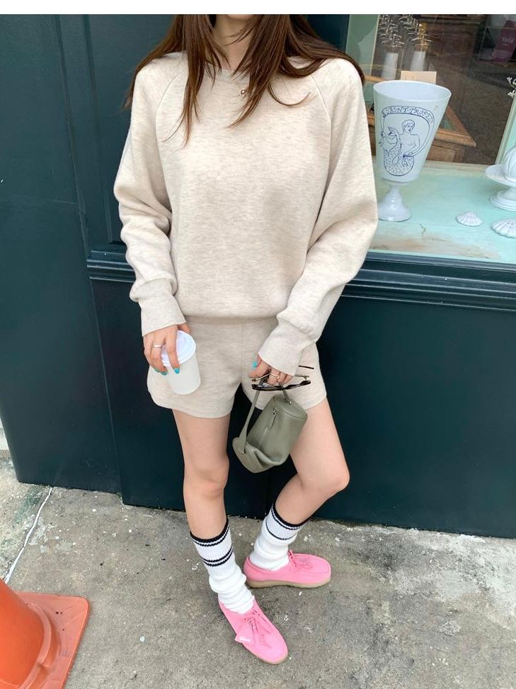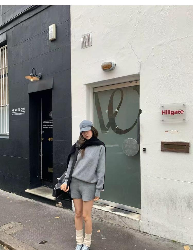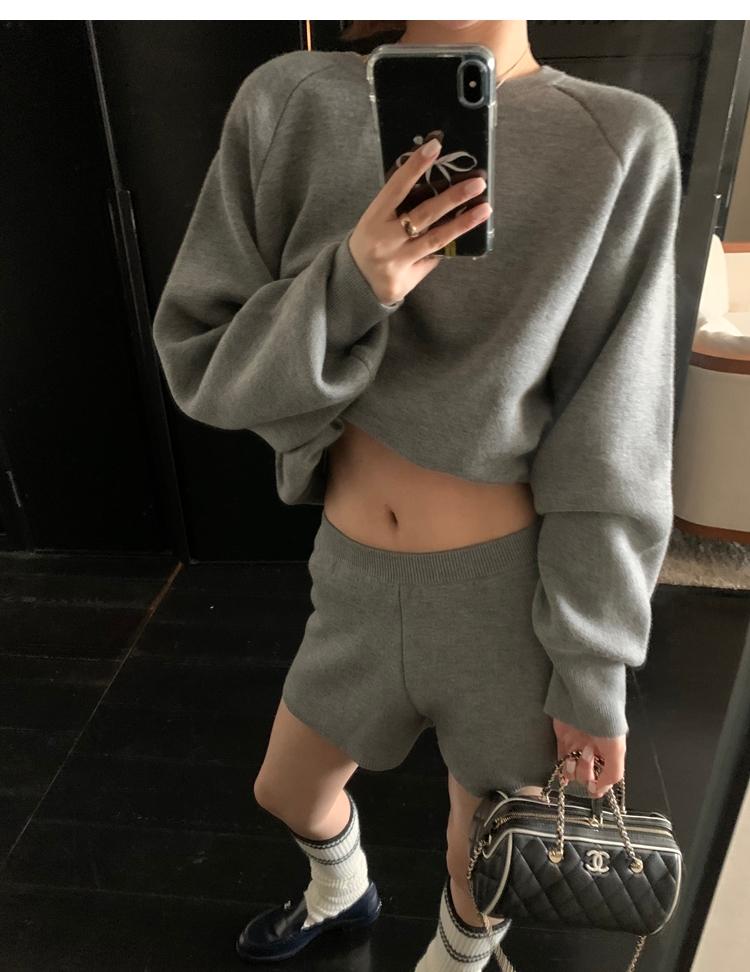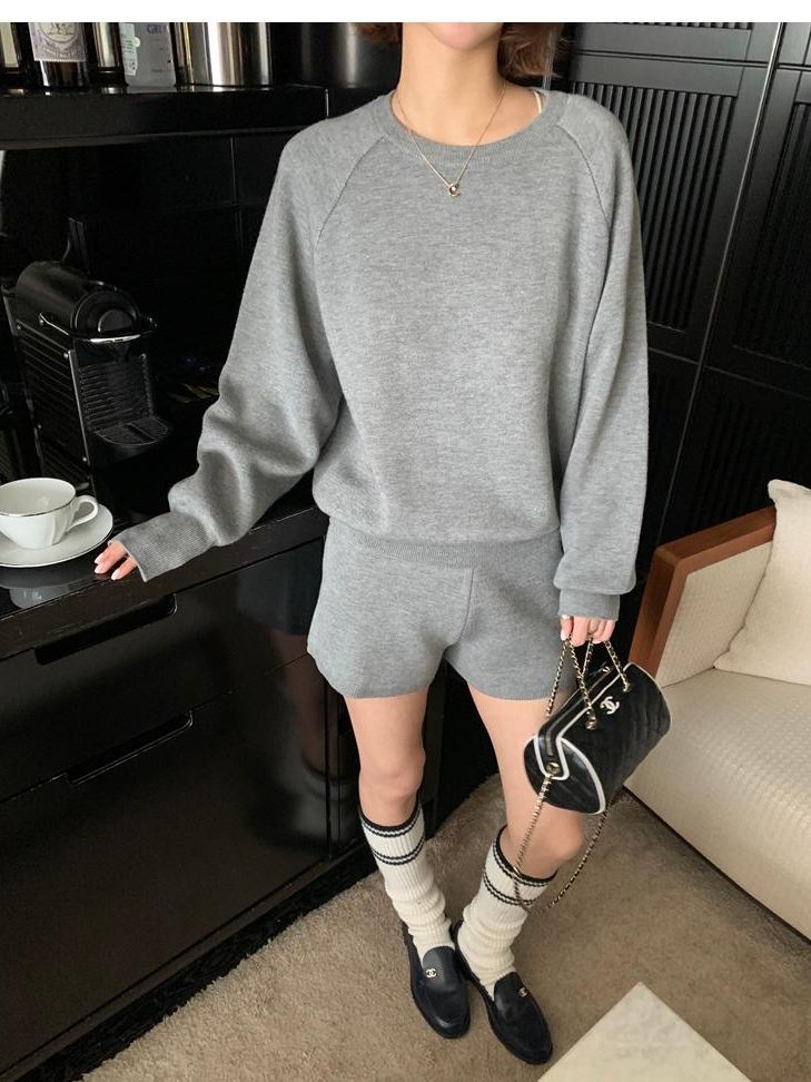 Lazy Hoodie Wool Double-Layer Windproof Sweater and Shorts Set