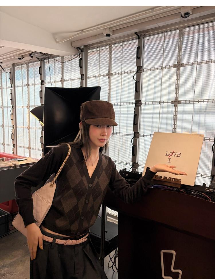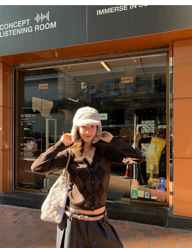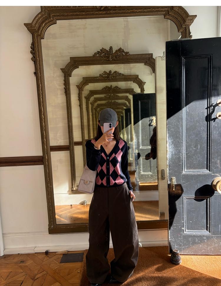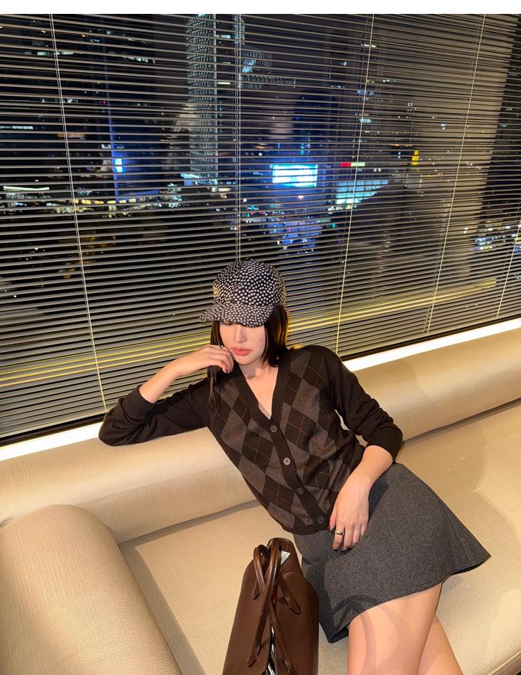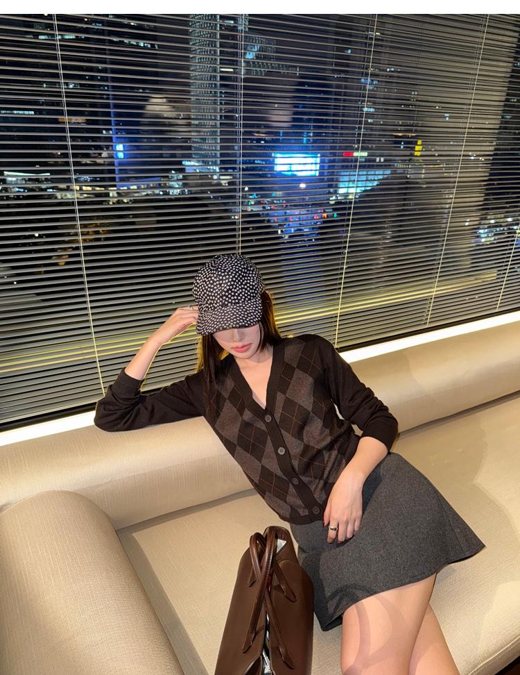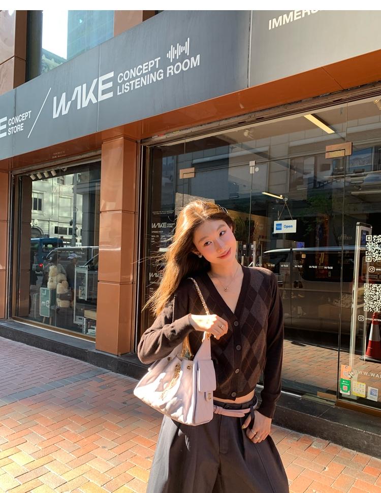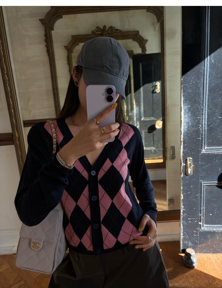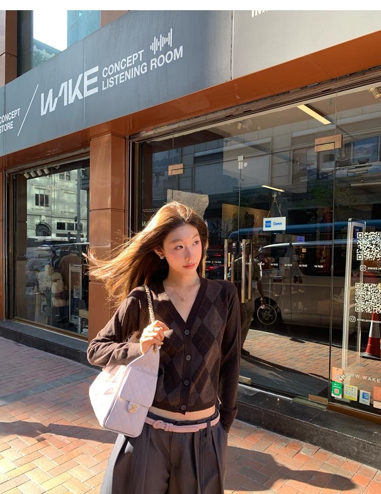 Vintage Diamond Pattern V-Neck Short Fit Knit Cardigan