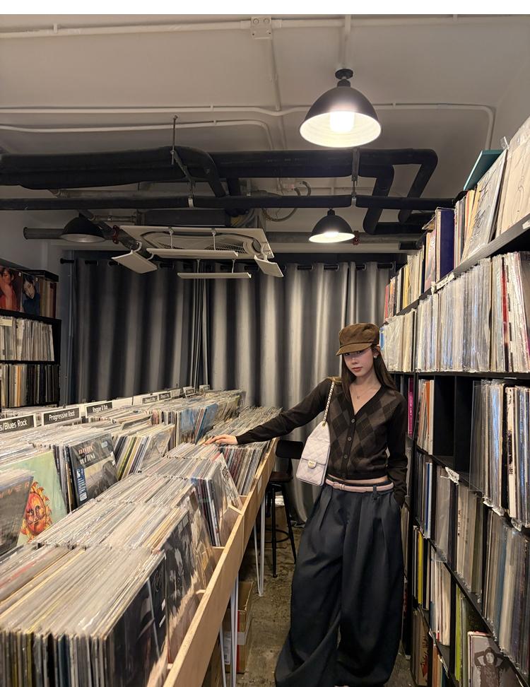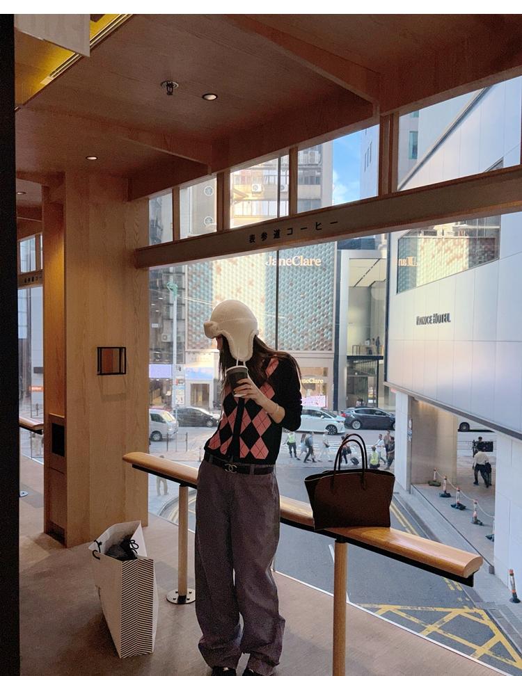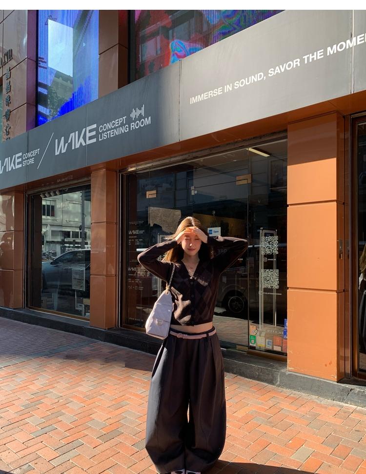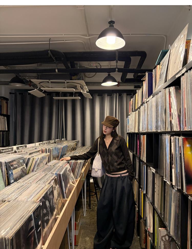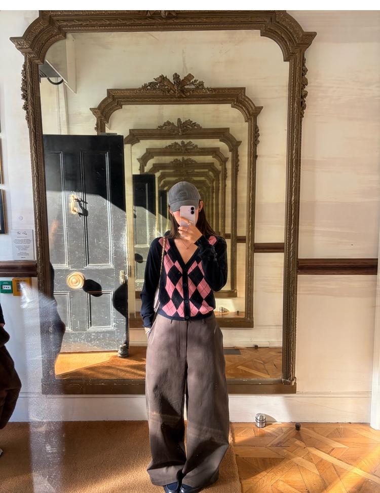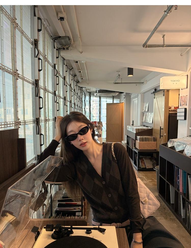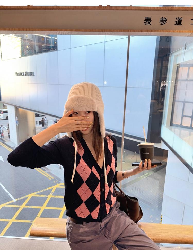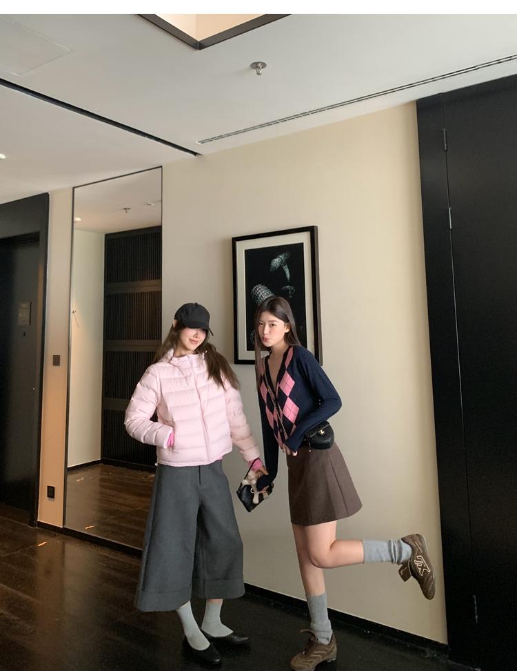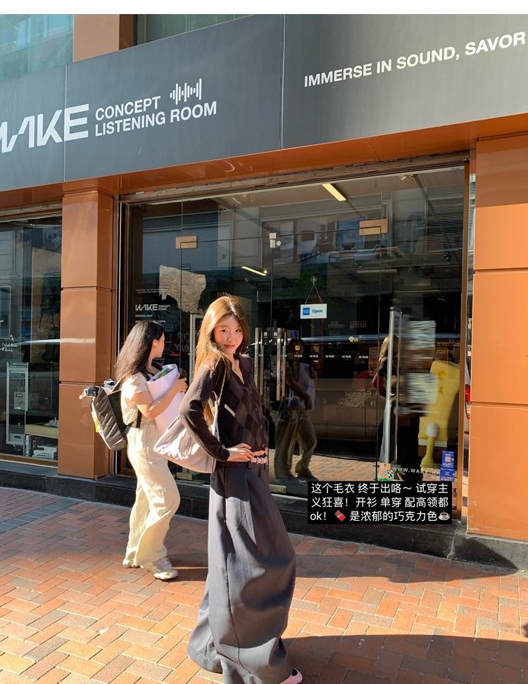 Vintage Diamond Pattern V-Neck Short Fit Knit Cardigan