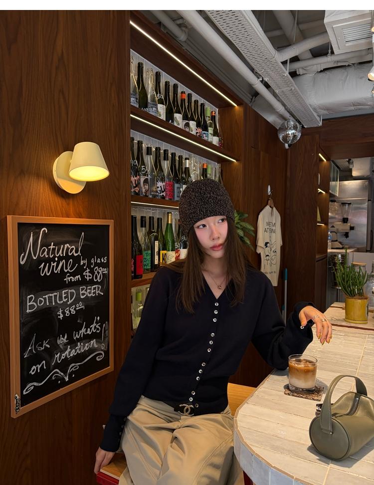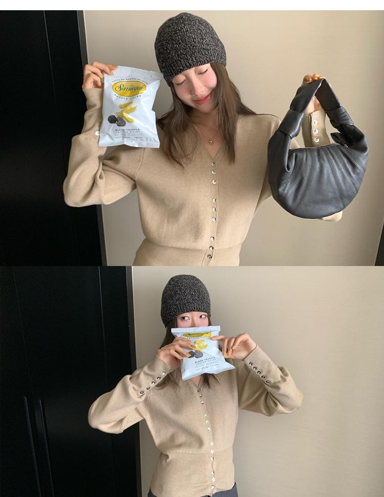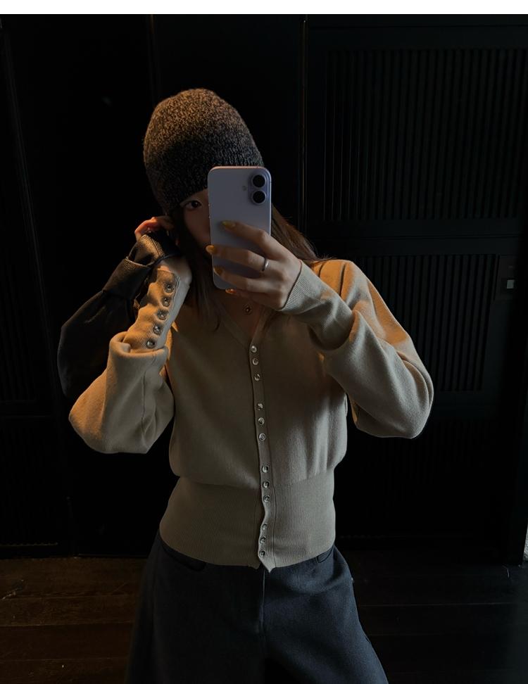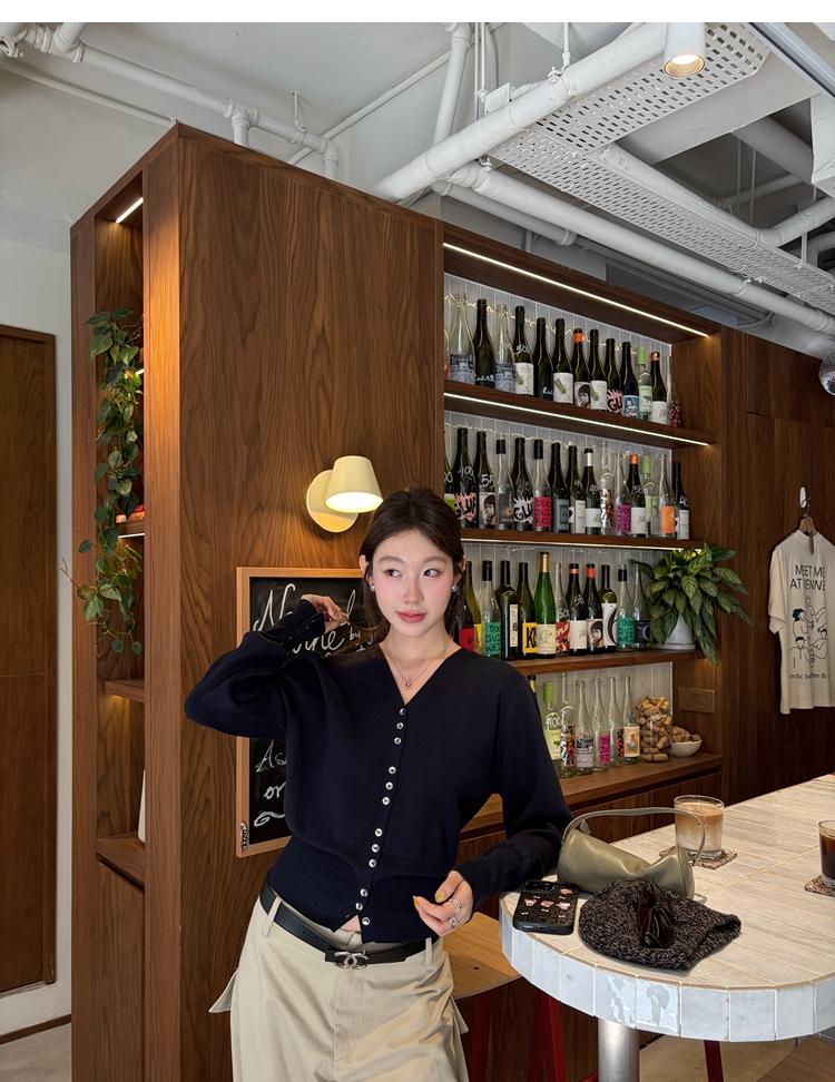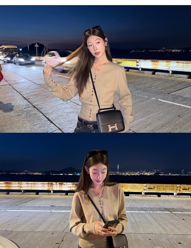 Light-Colored Simple Relaxed V-Neck Buttons Casual Knit Sweater
