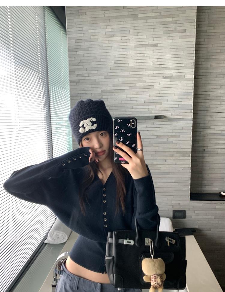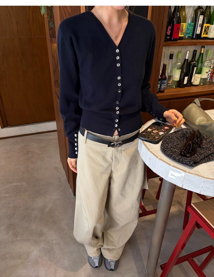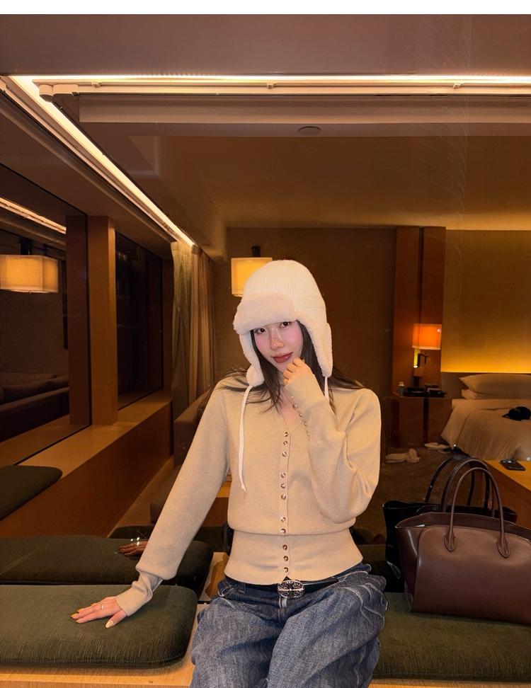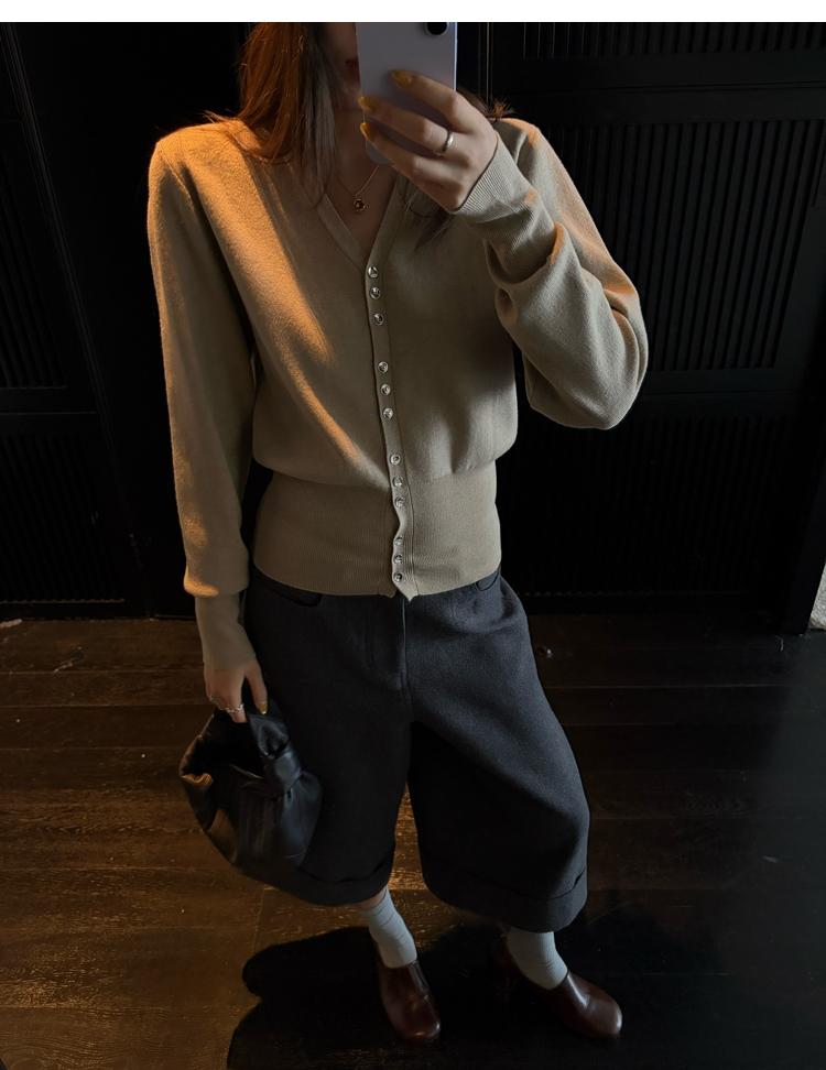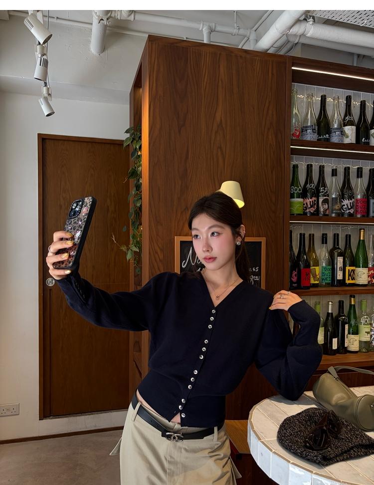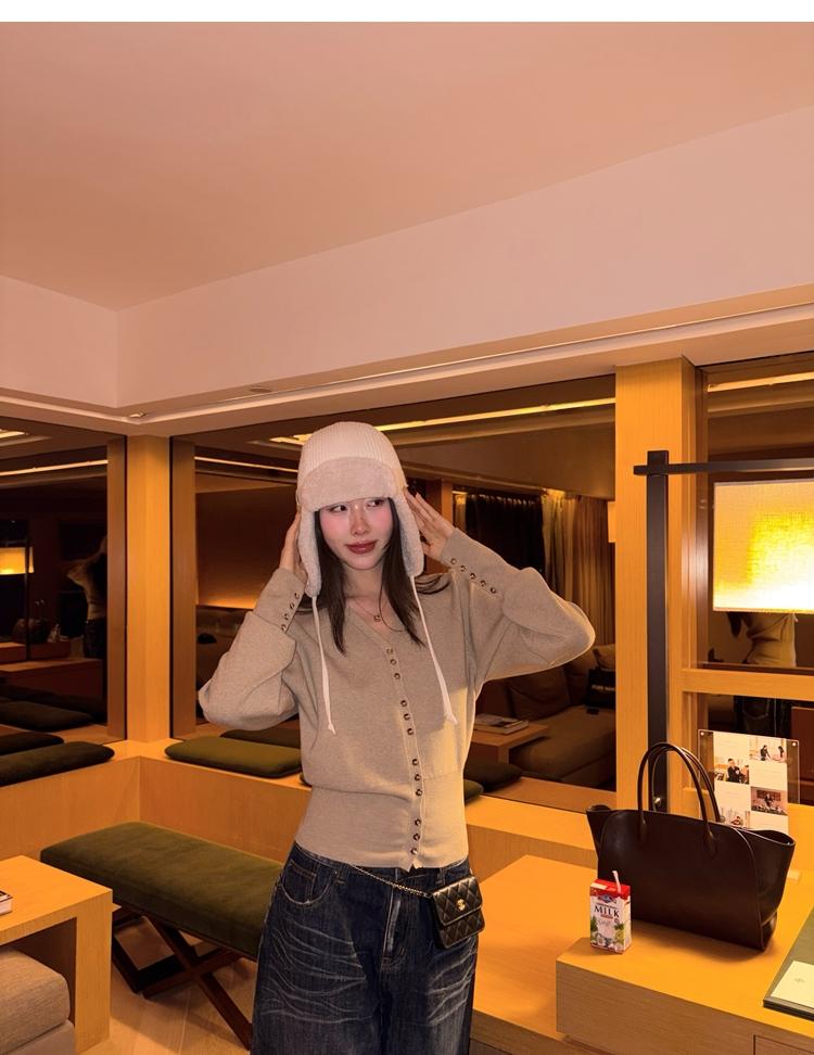 Light-Colored Simple Relaxed V-Neck Buttons Casual Knit Sweater