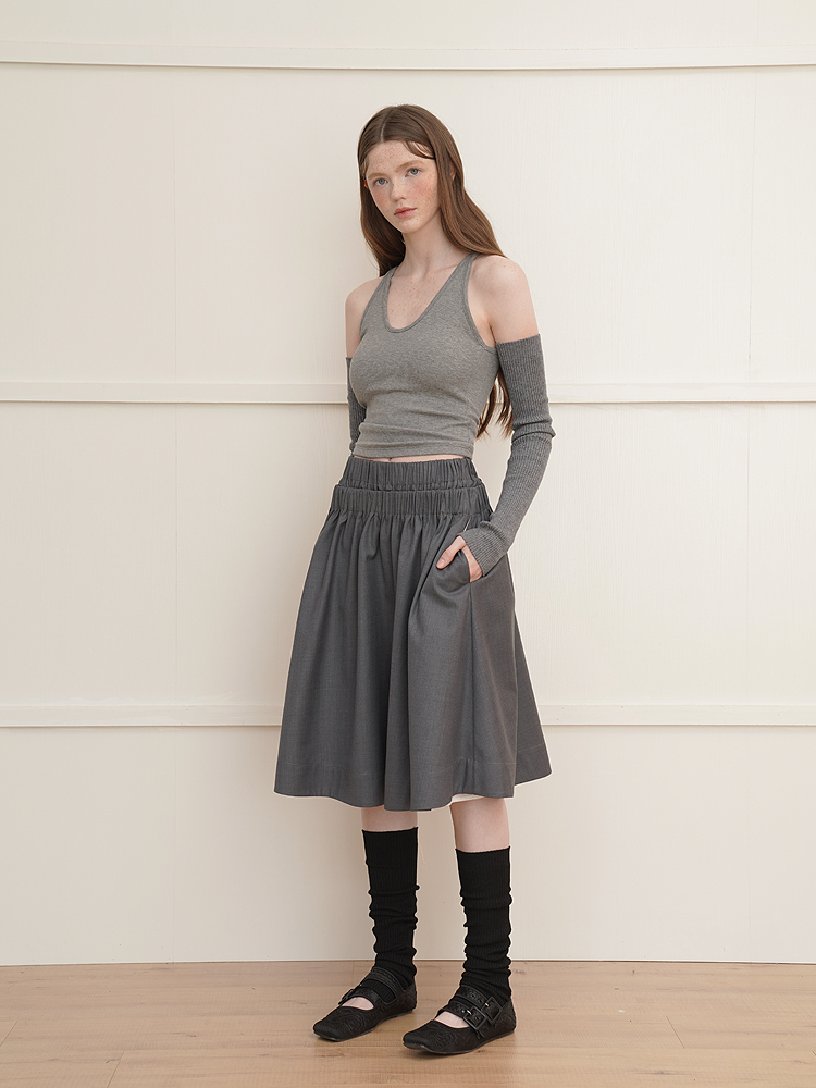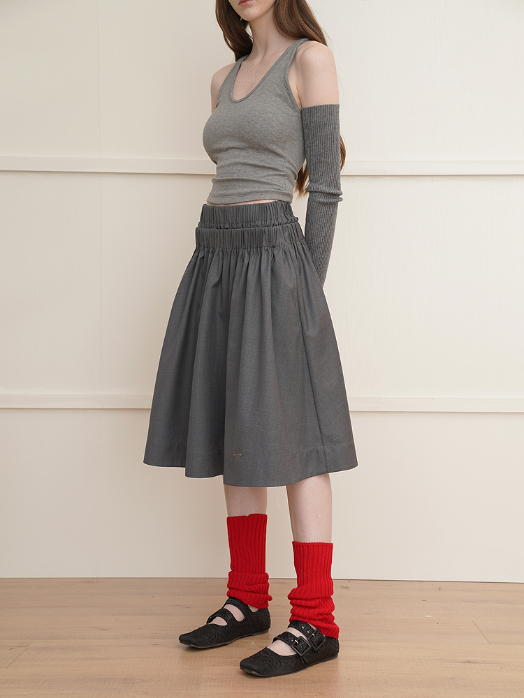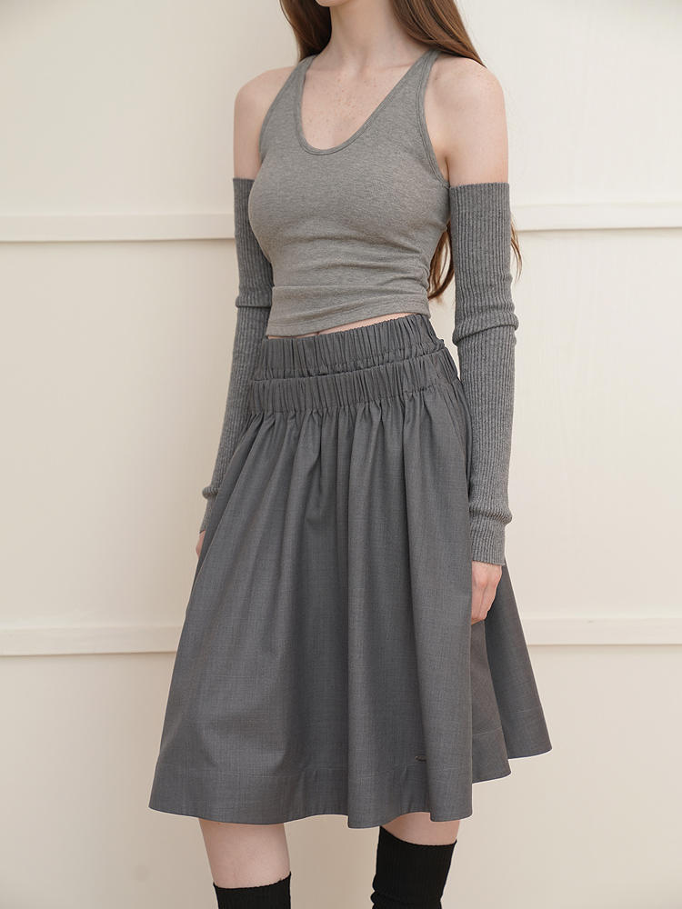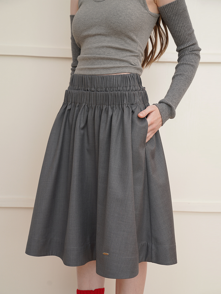 Wool double waist big swing all-match advanced A-line skirt