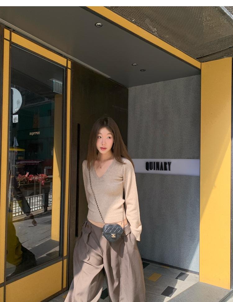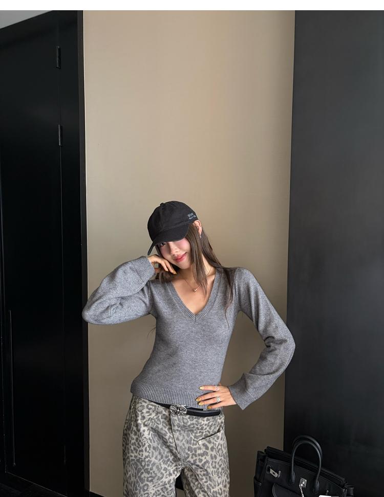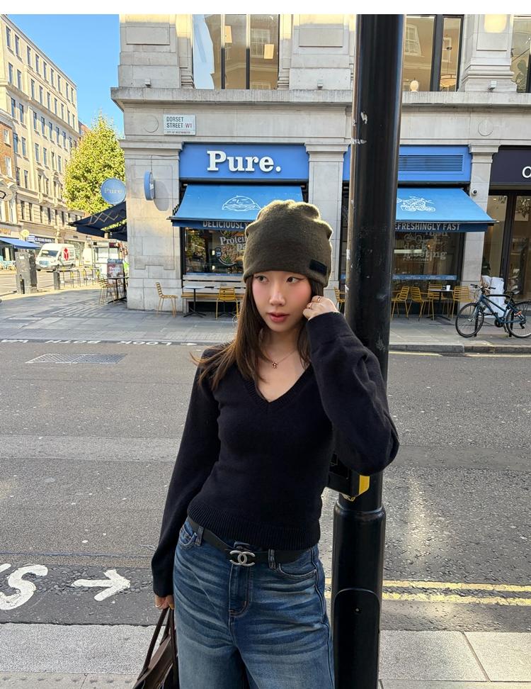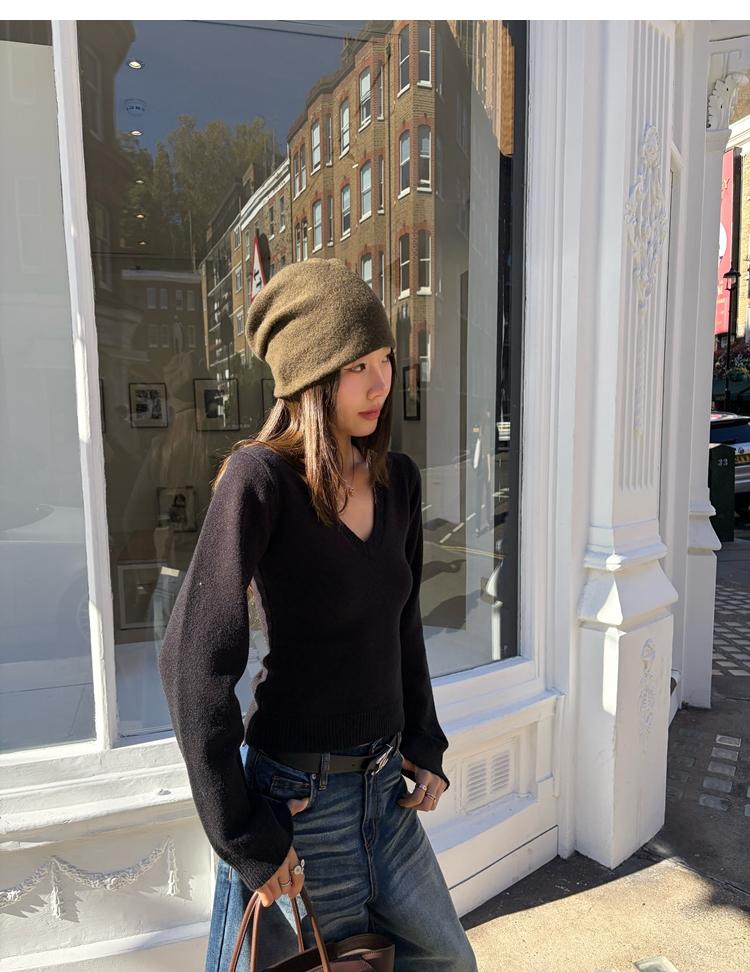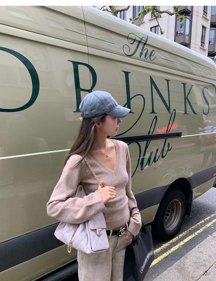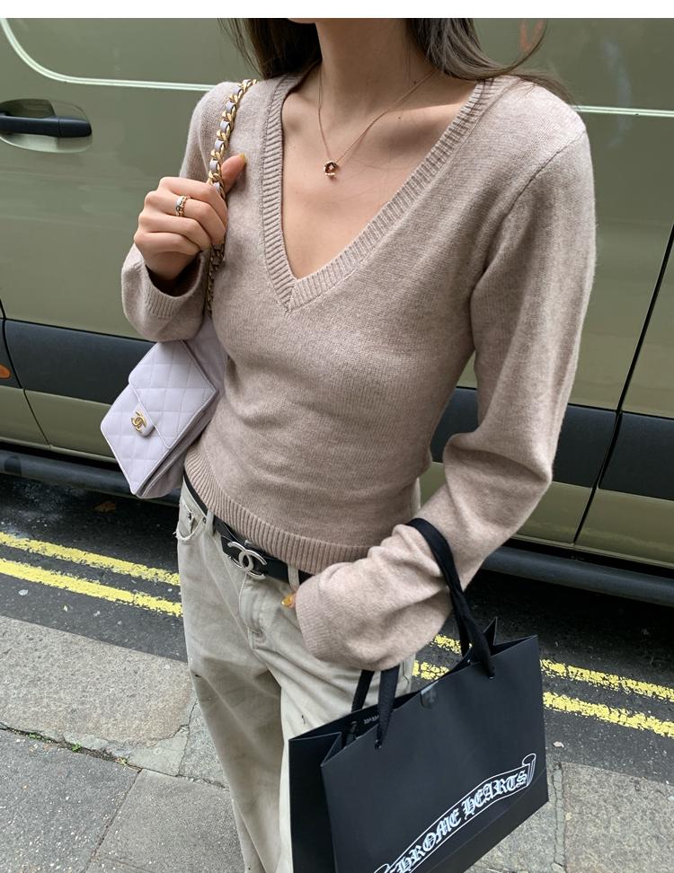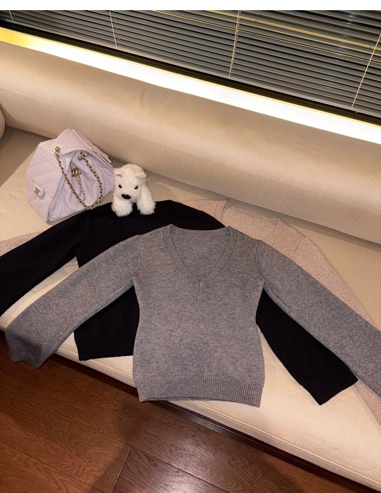 Waistline Makeove V-neck Slim Fit Soft Skin-friendly Knitted Sweater