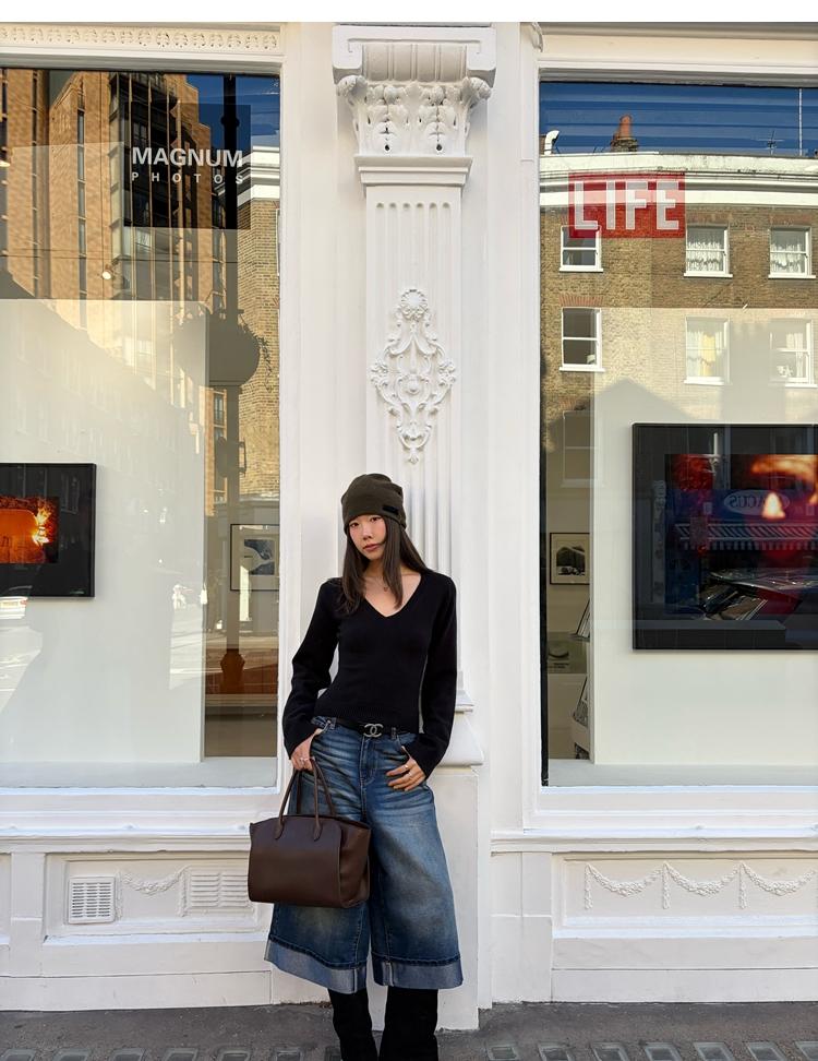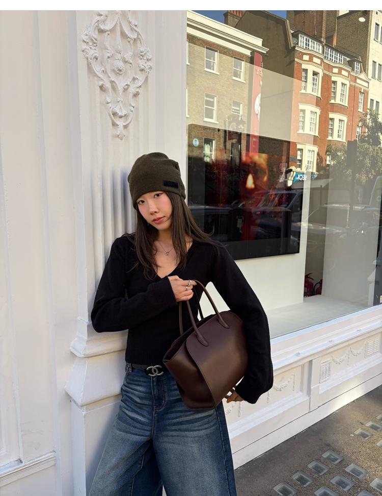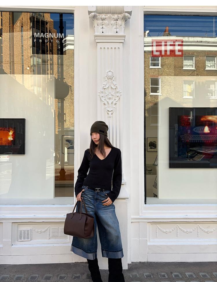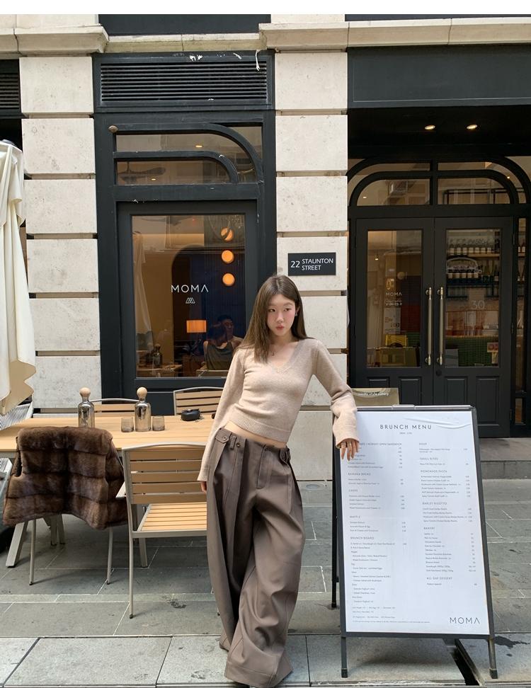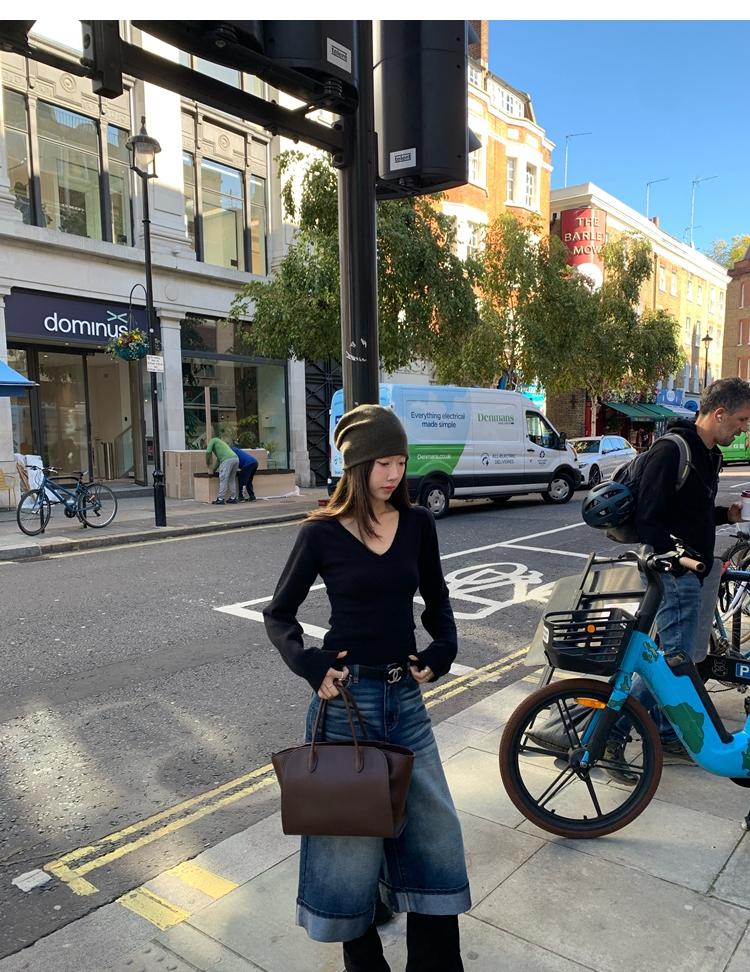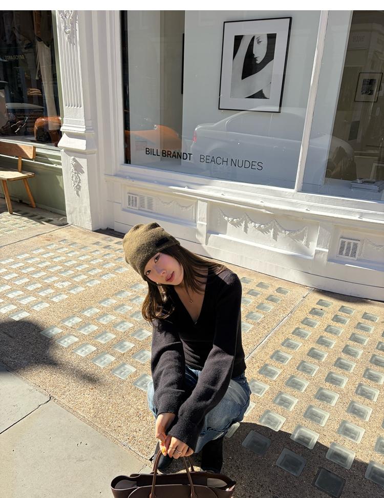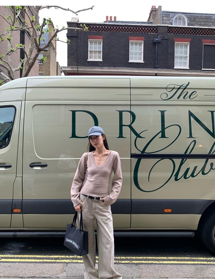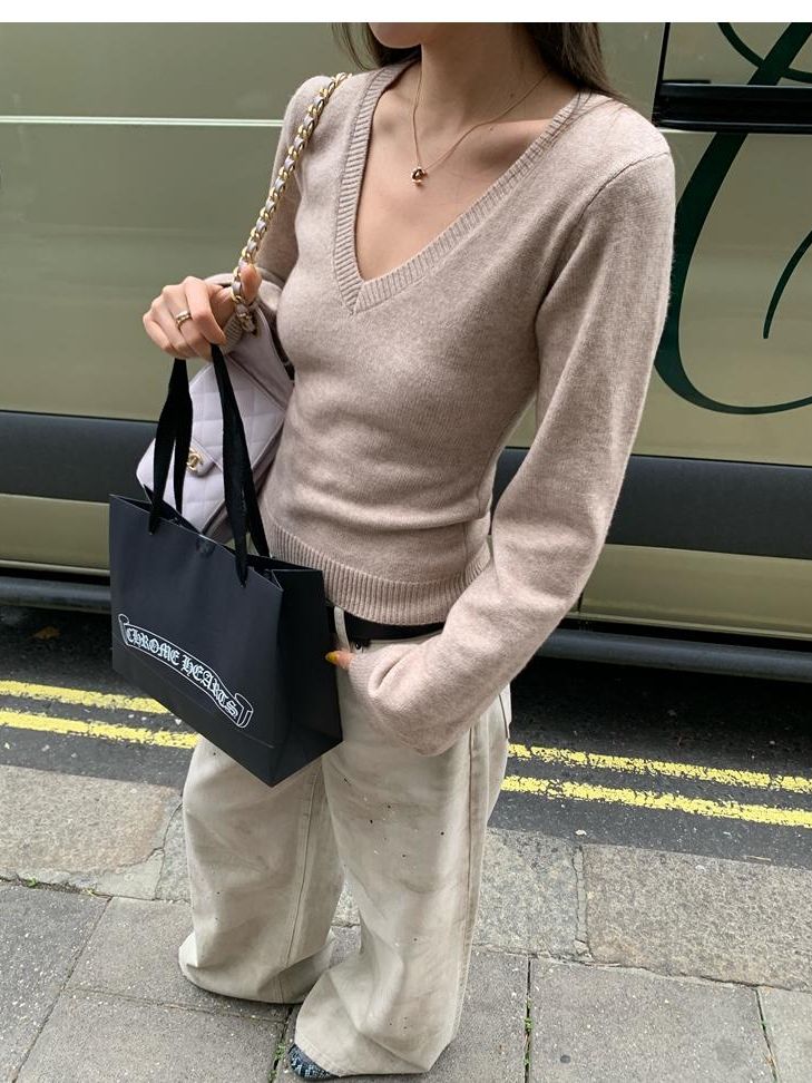 Waistline Makeove V-neck Slim Fit Soft Skin-friendly Knitted Sweater