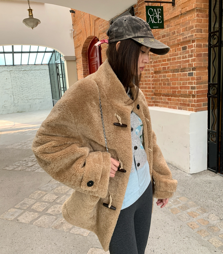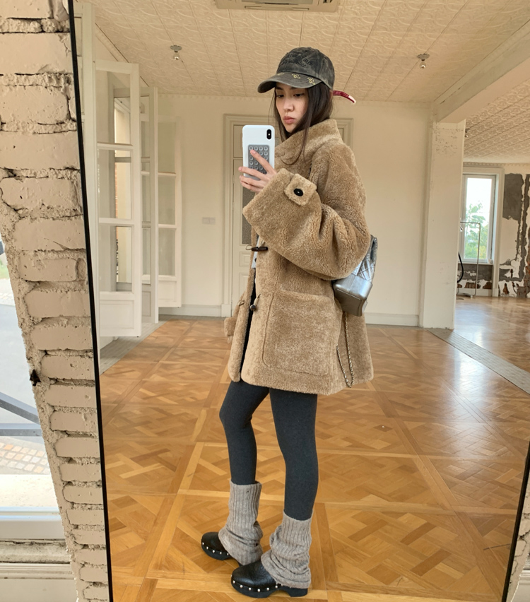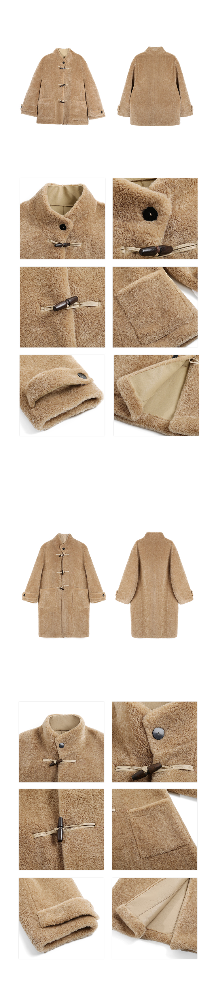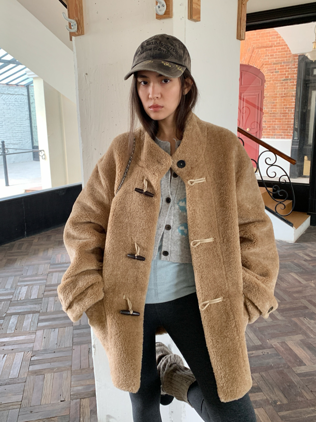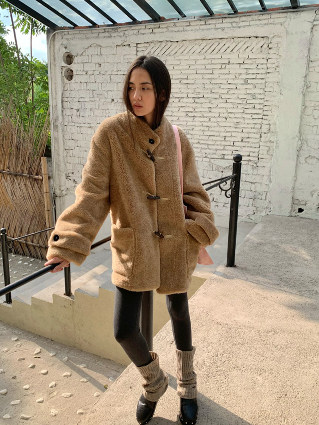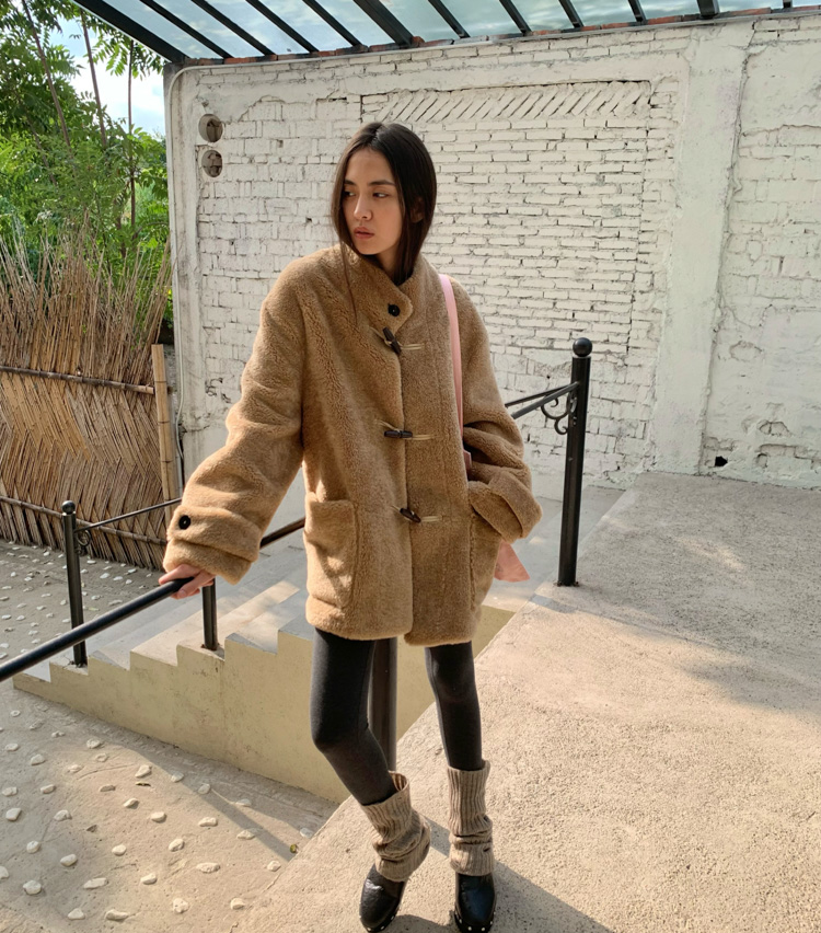 stand collar eco-friendly fur cowhide button-down long/short coat
