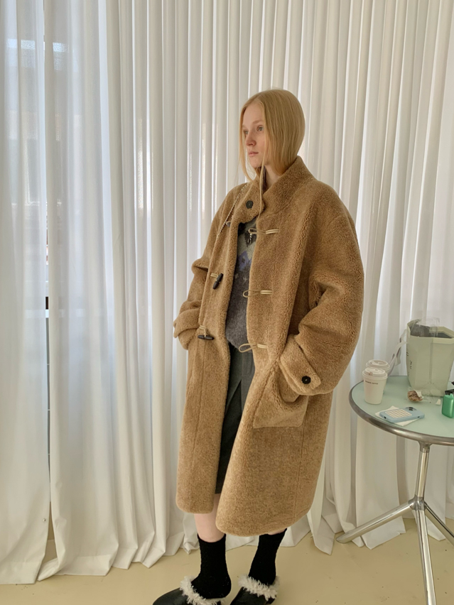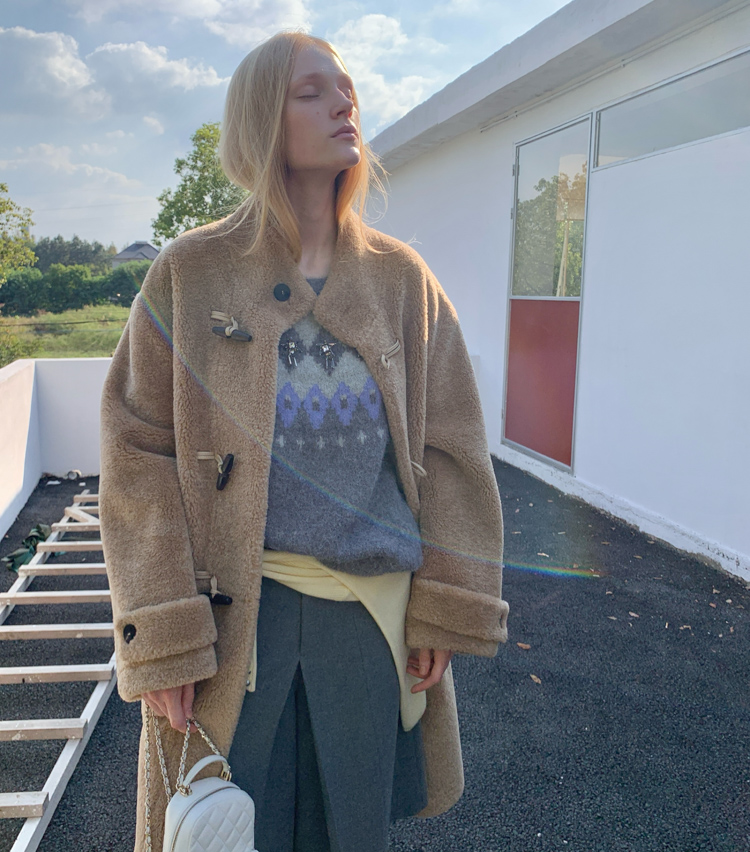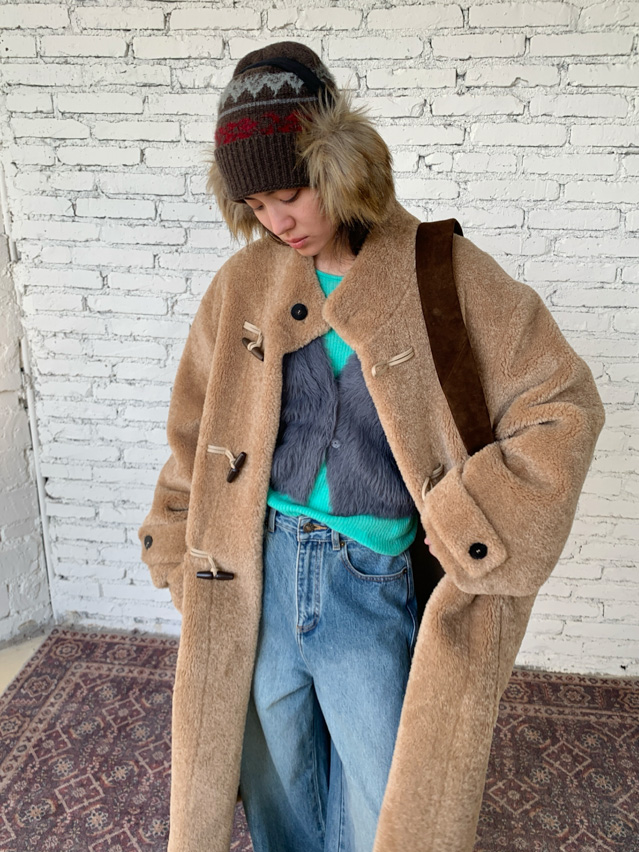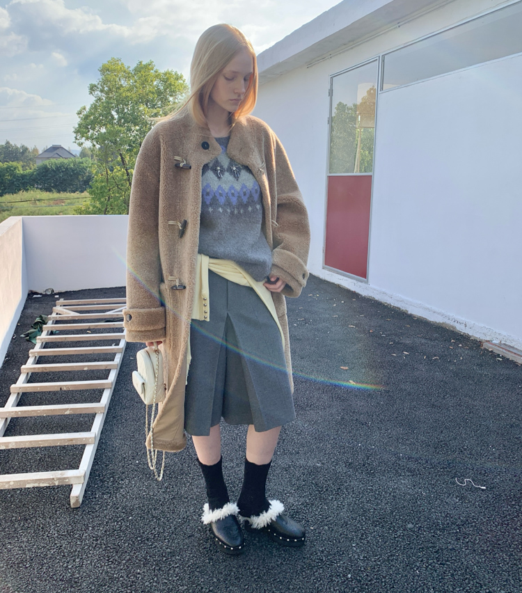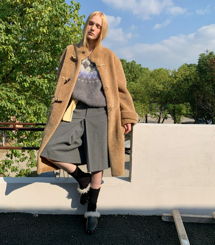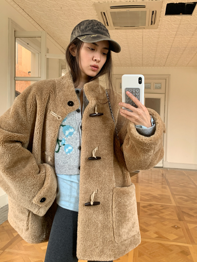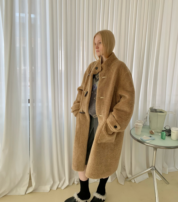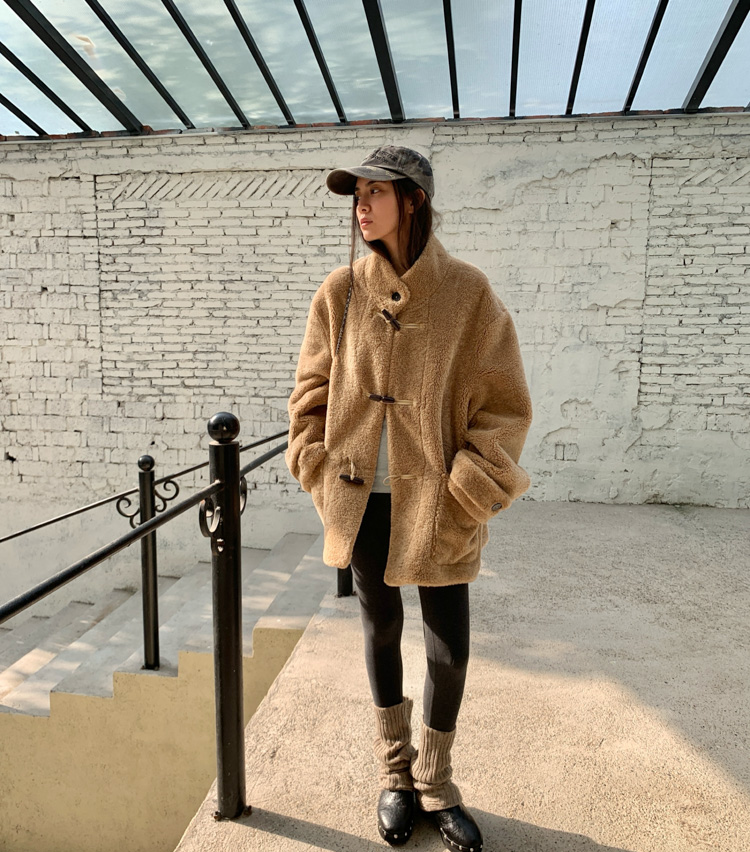 stand collar eco-friendly fur cowhide button-down long/short coat