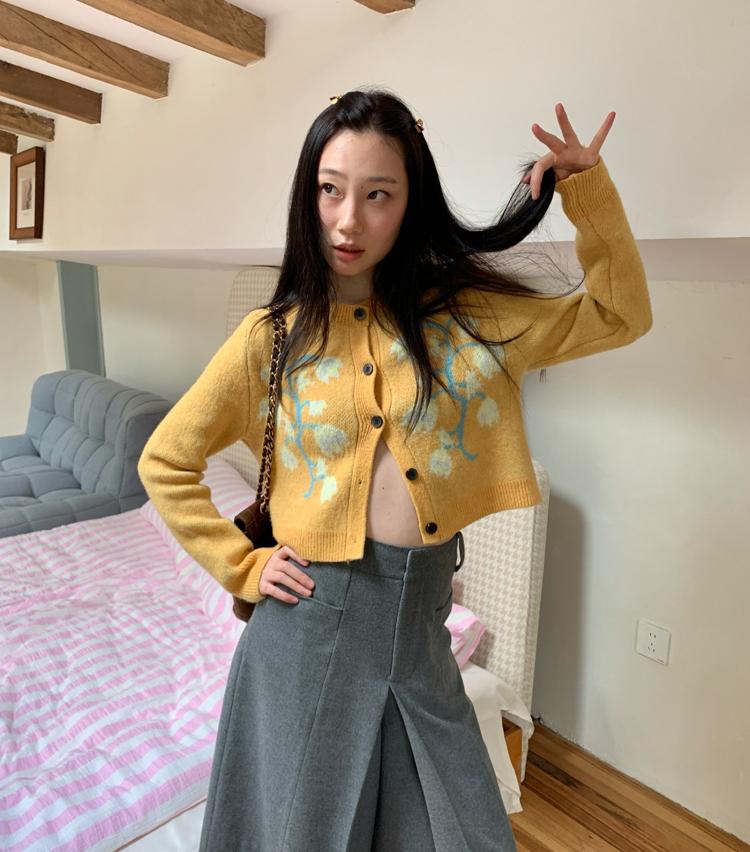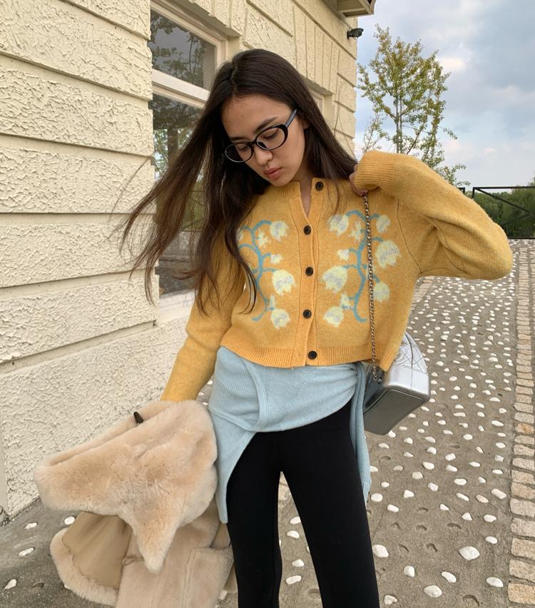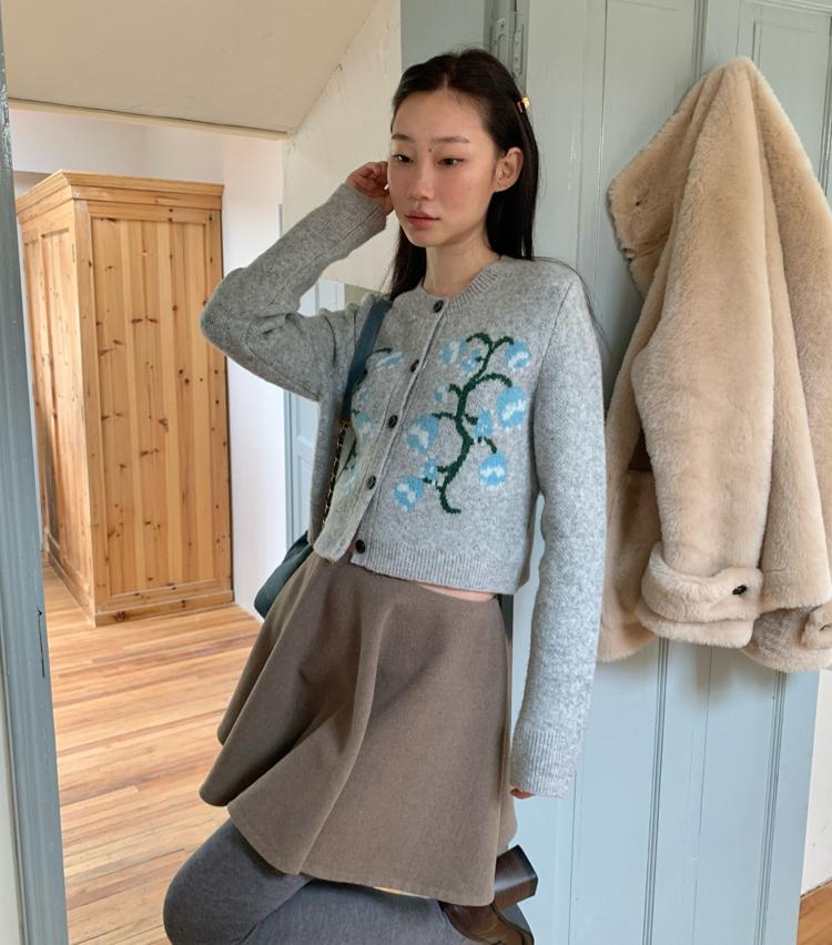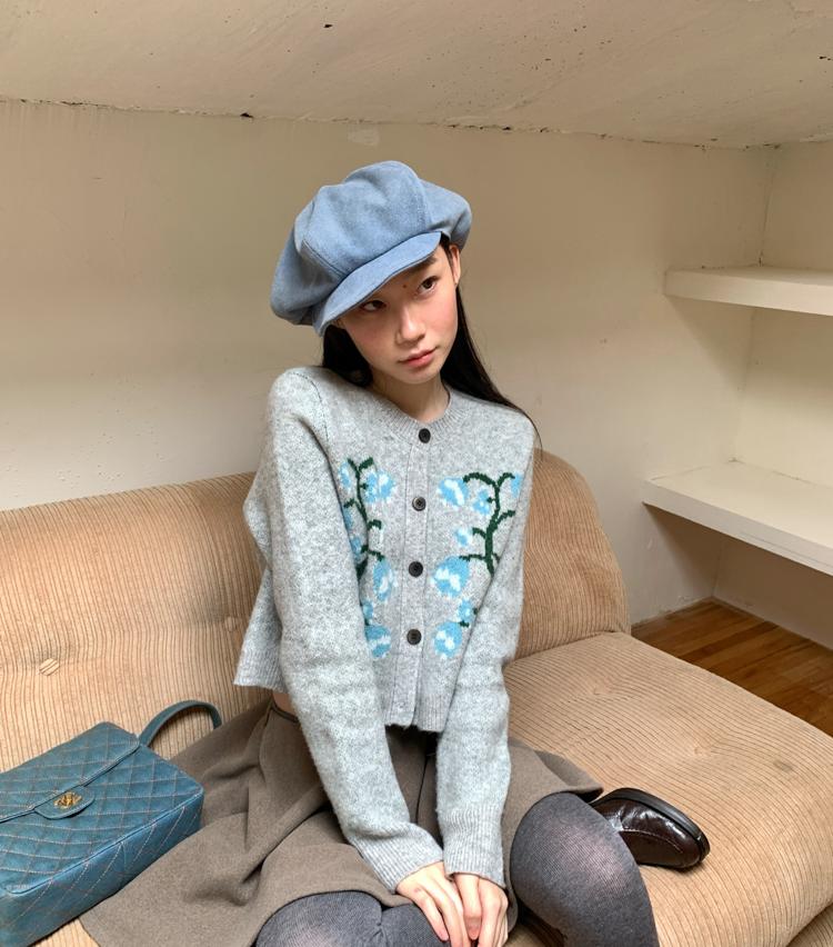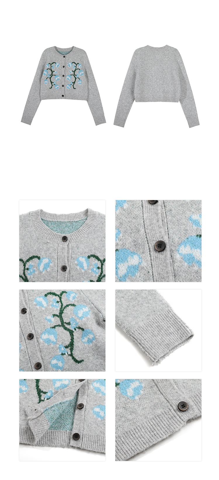 Vintage Floral Pattern Round Neck Knit Cardigan