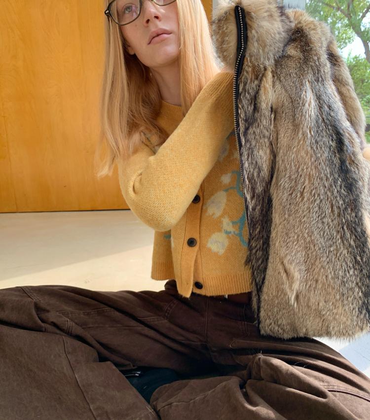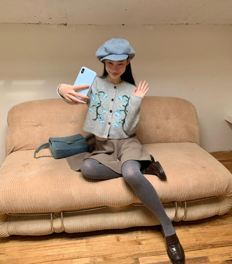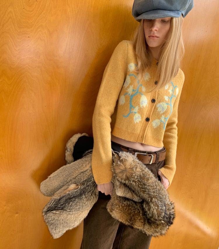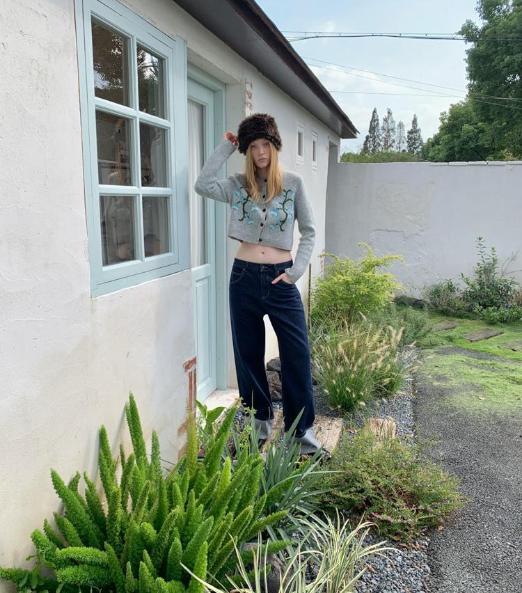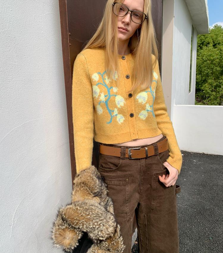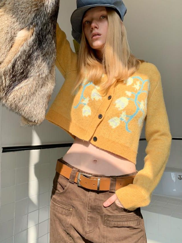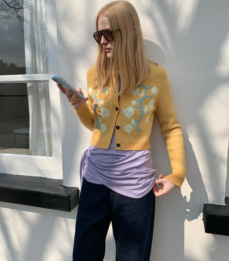 Vintage Floral Pattern Round Neck Knit Cardigan