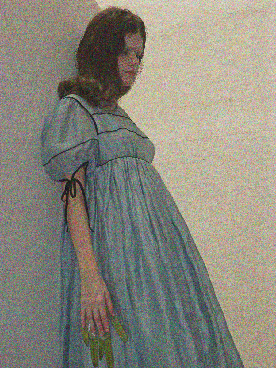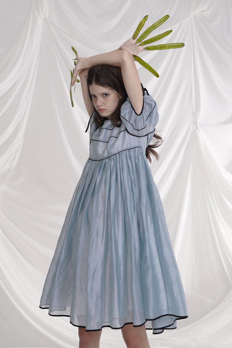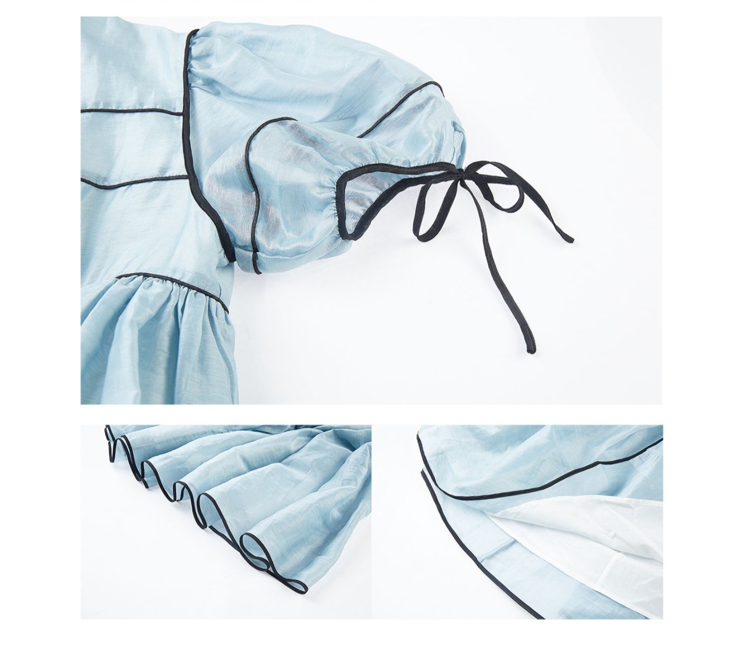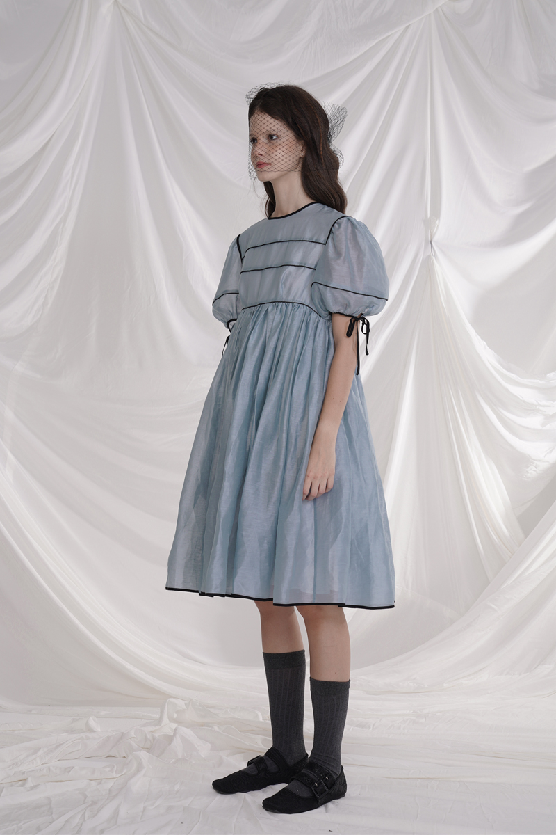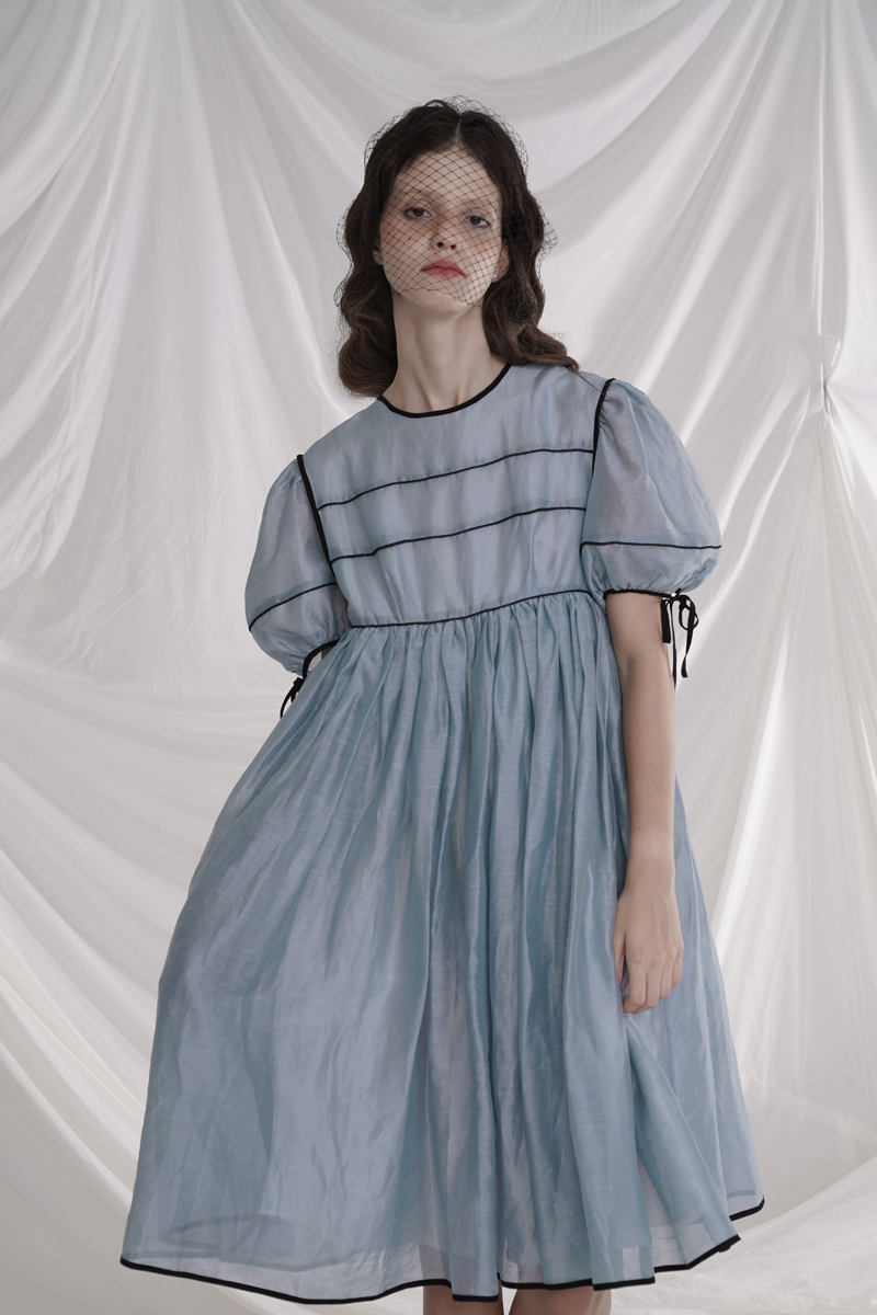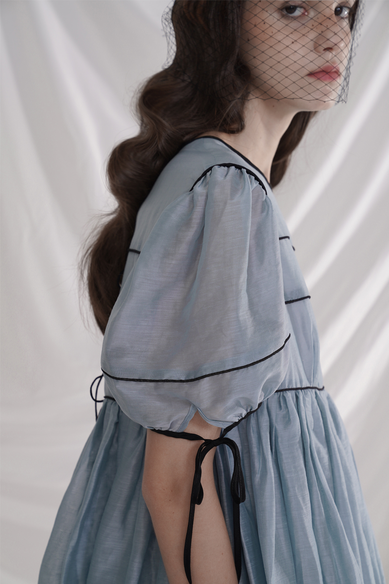 Silk Tencel Linen Puff Sleeve High Waist Lace-up Swing Dress