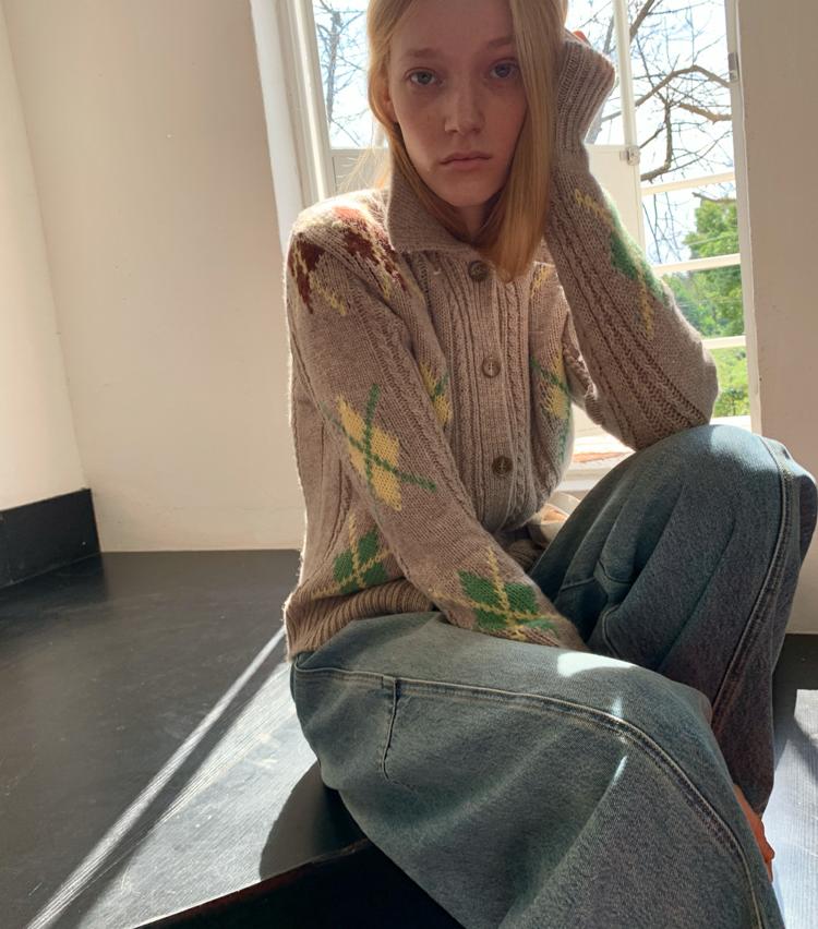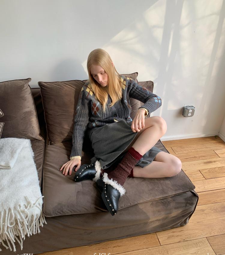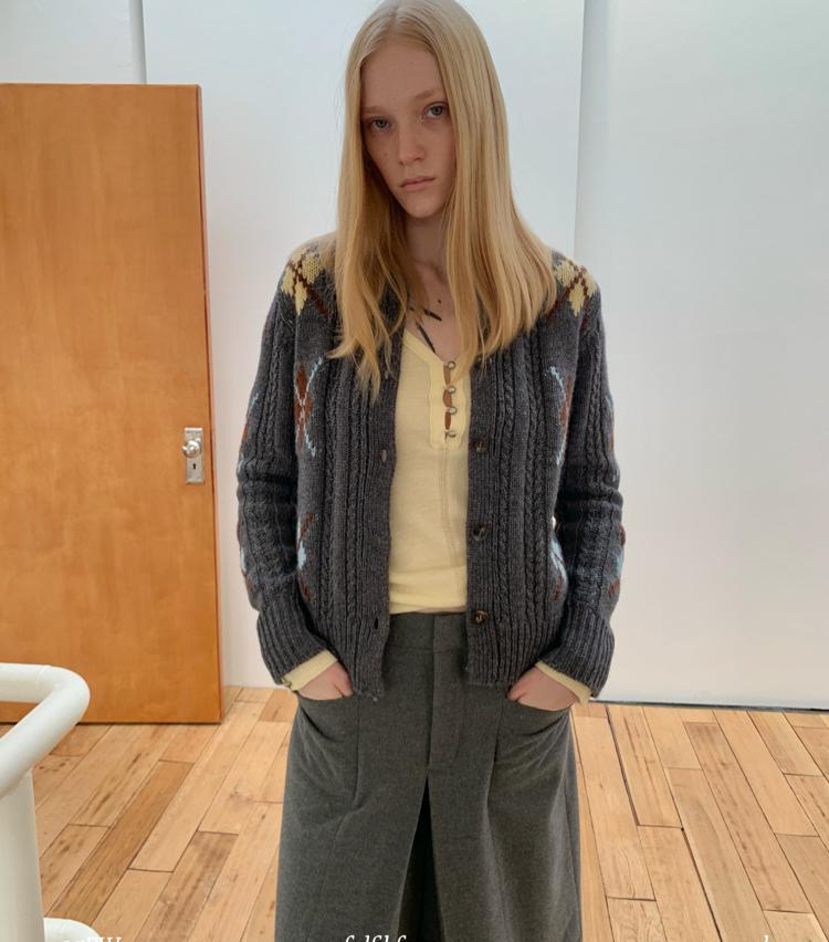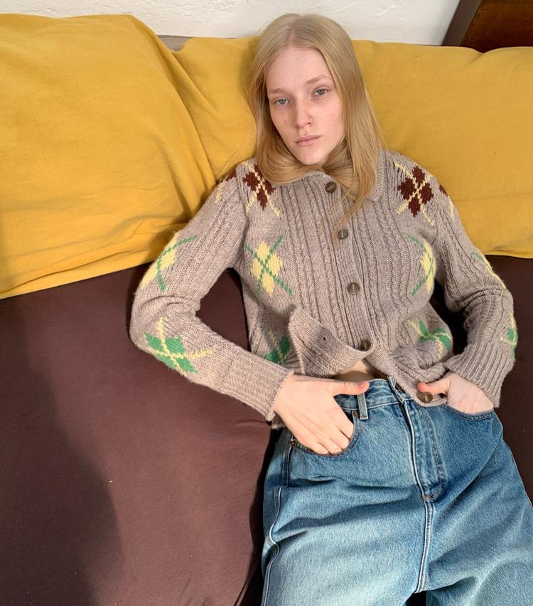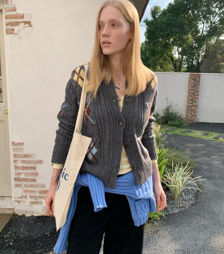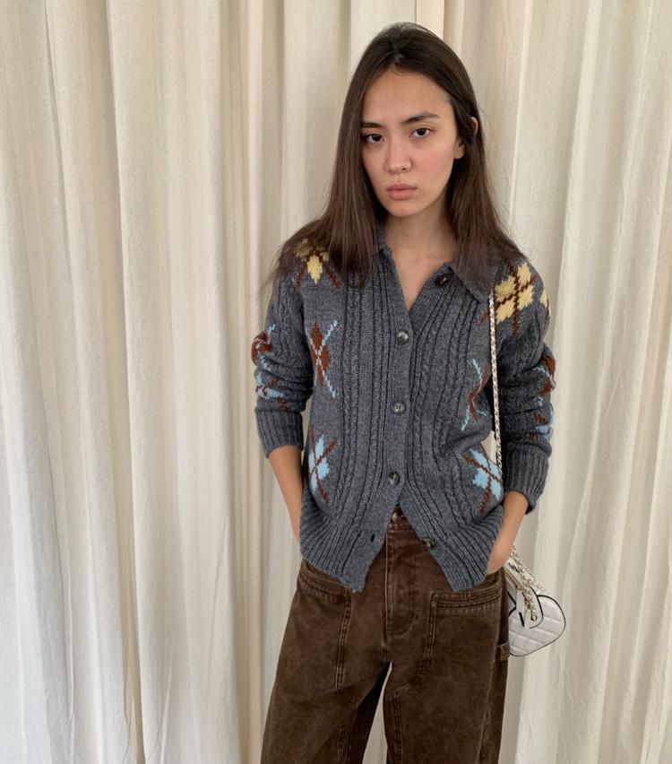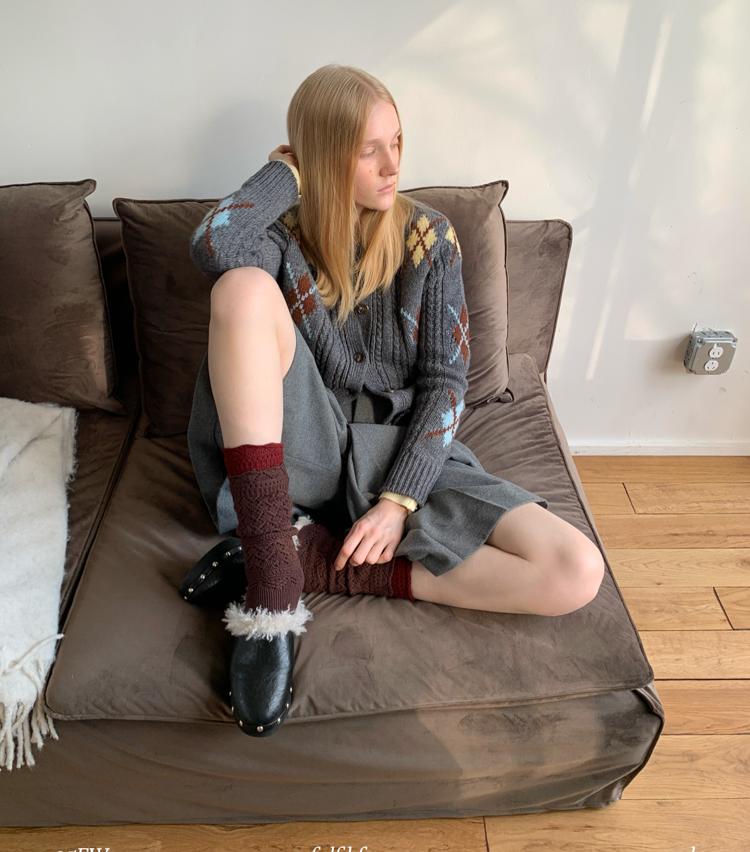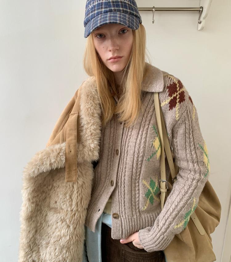 Wool Vintage Lattice Twisted Flower Academy Collar Sweater Cardigan