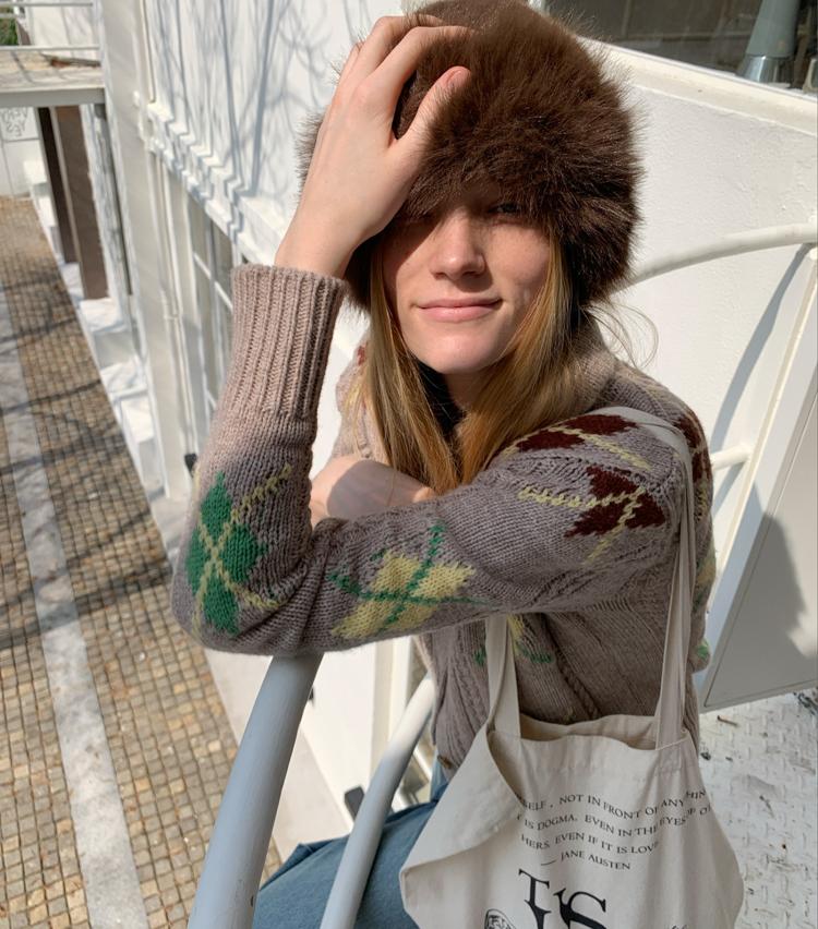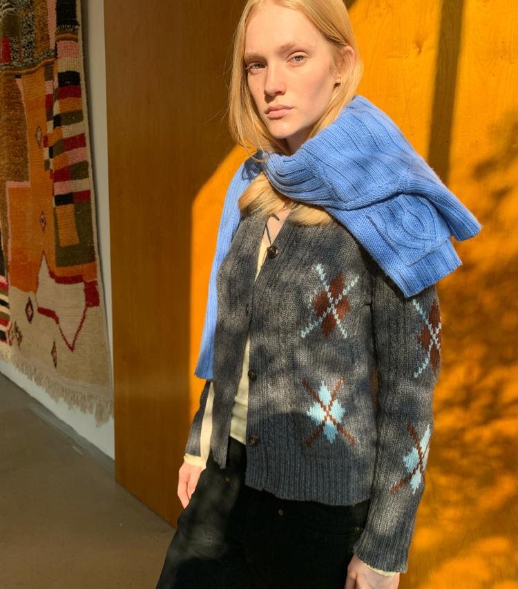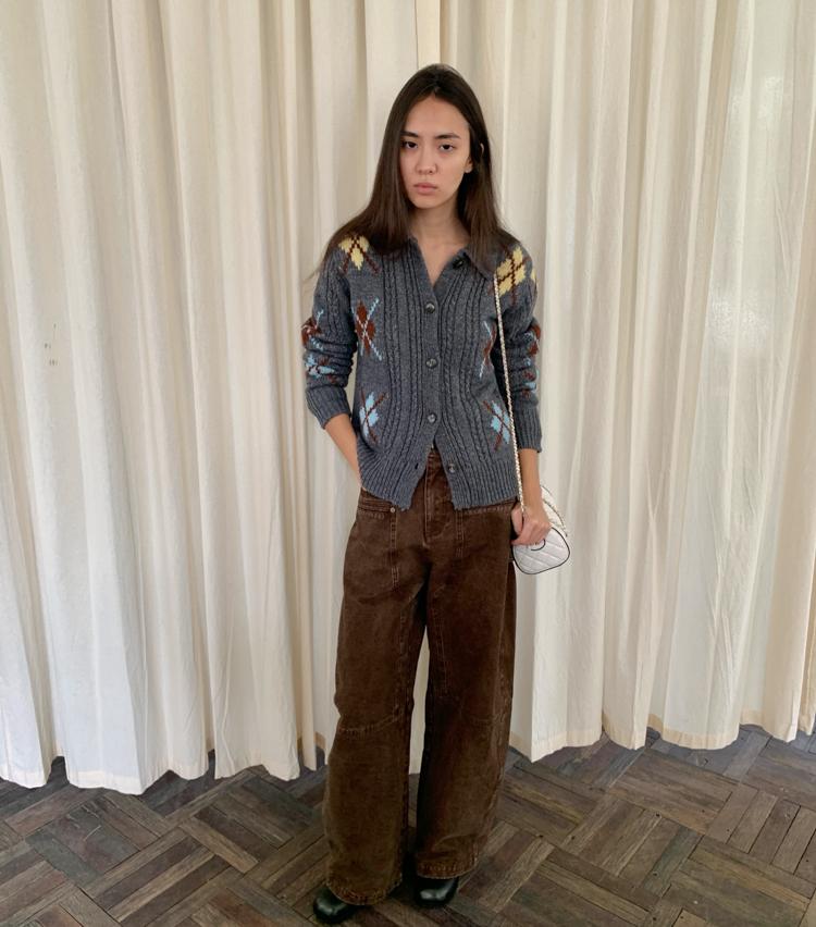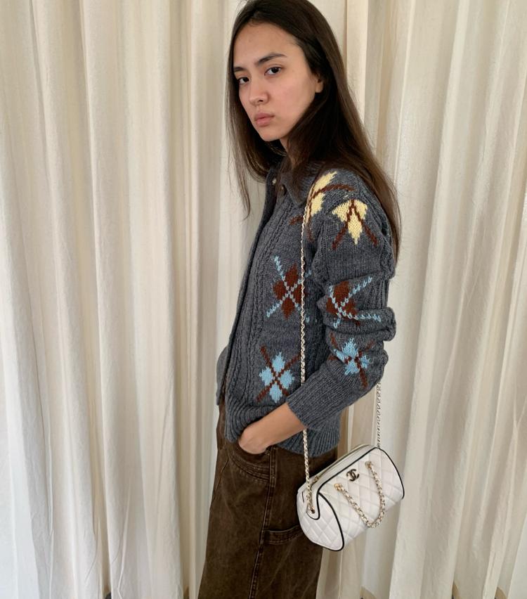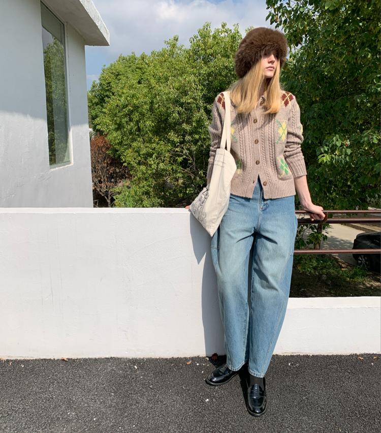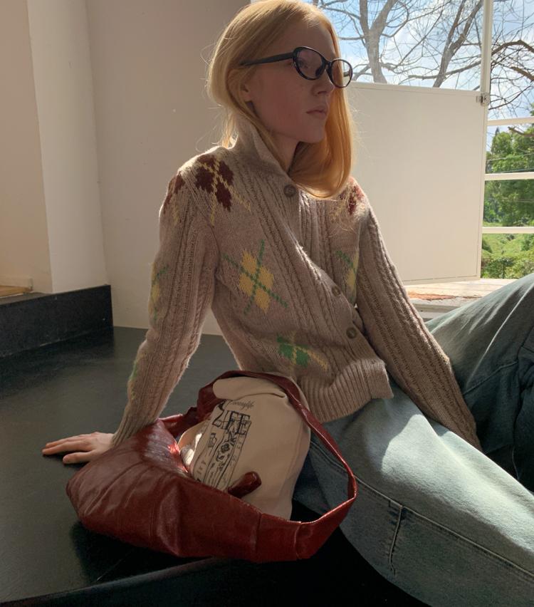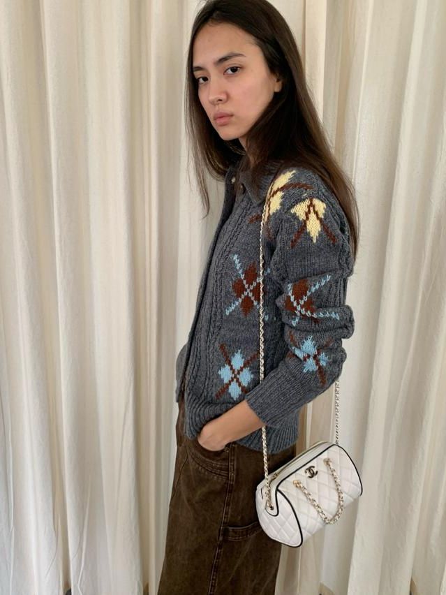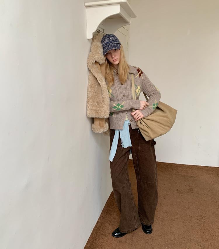 Wool Vintage Lattice Twisted Flower Academy Collar Sweater Cardigan