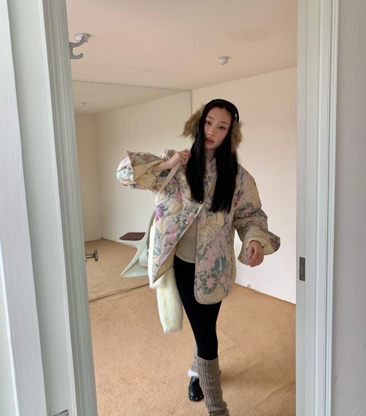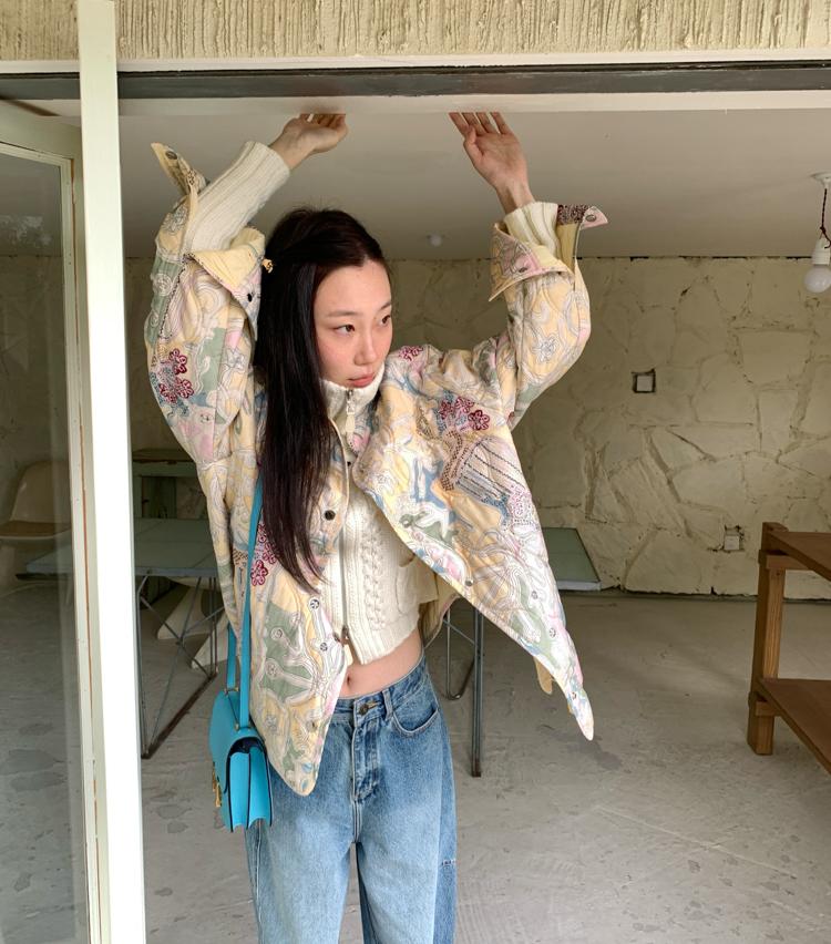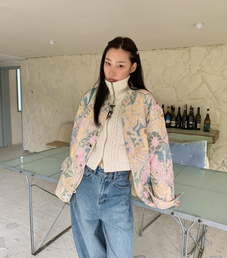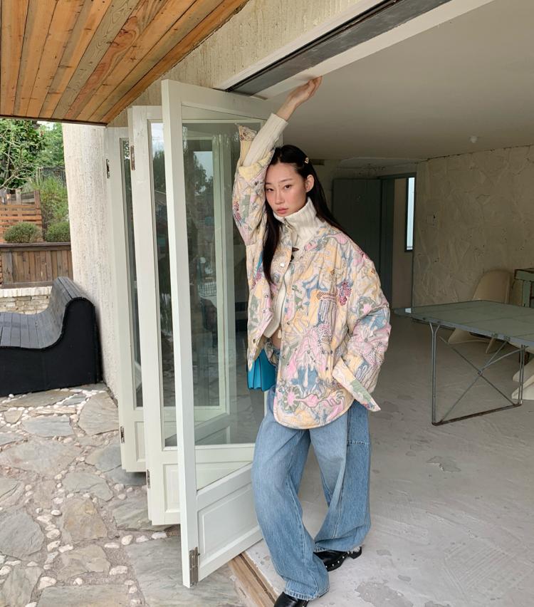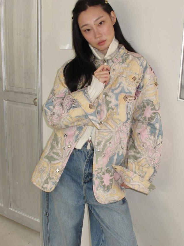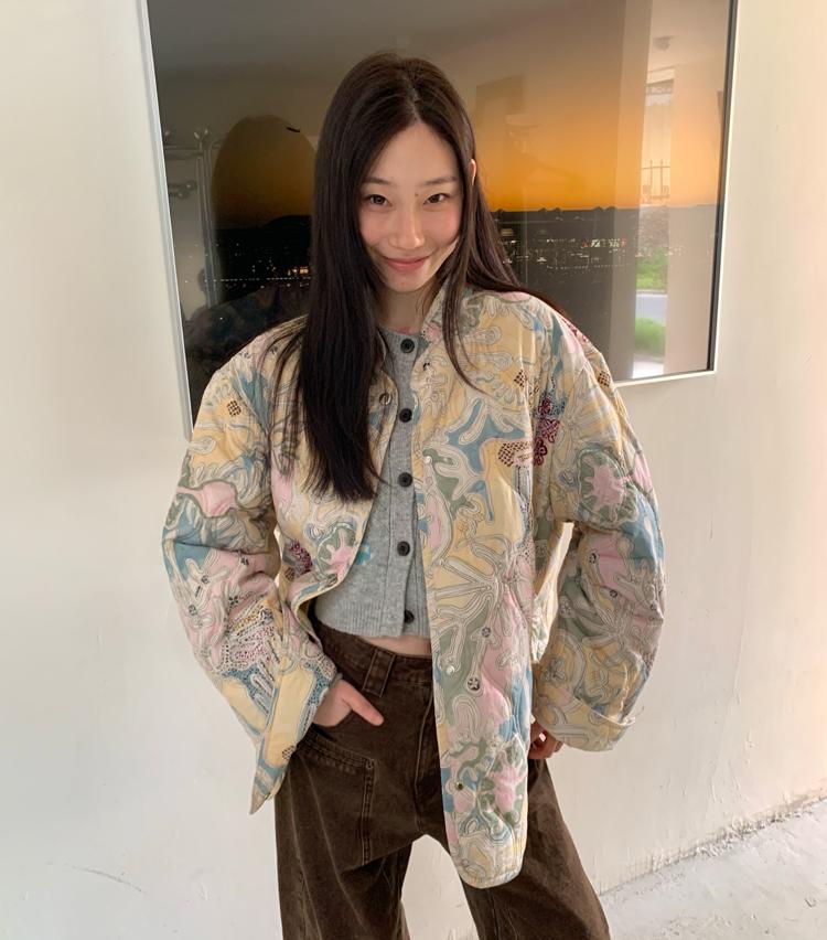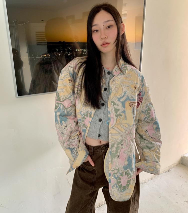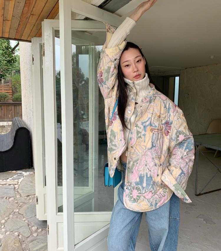 Art gallery printed quilted thin cotton jacket