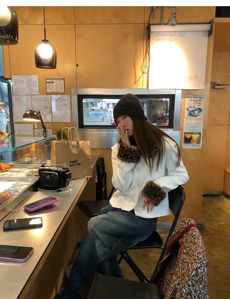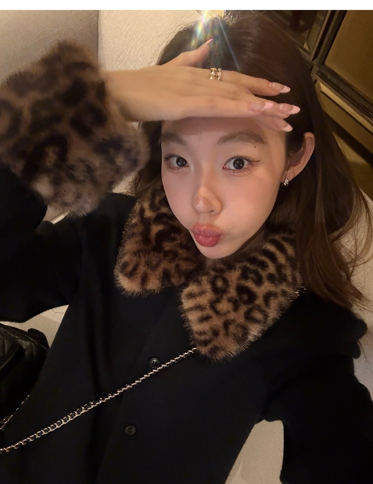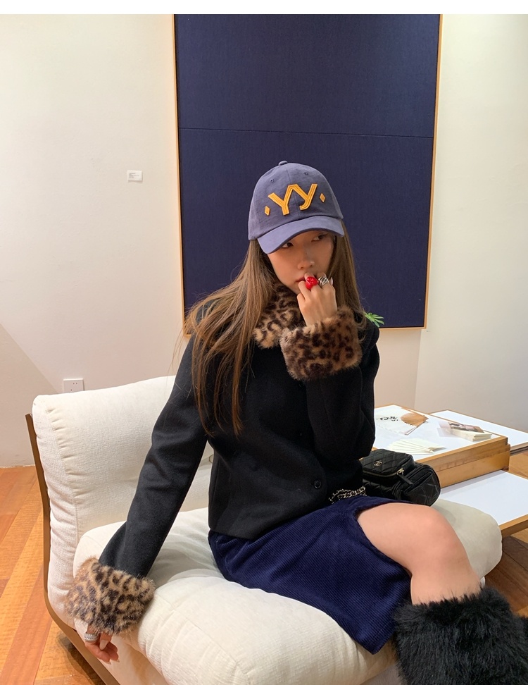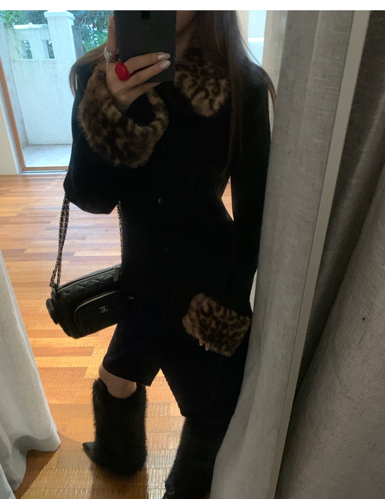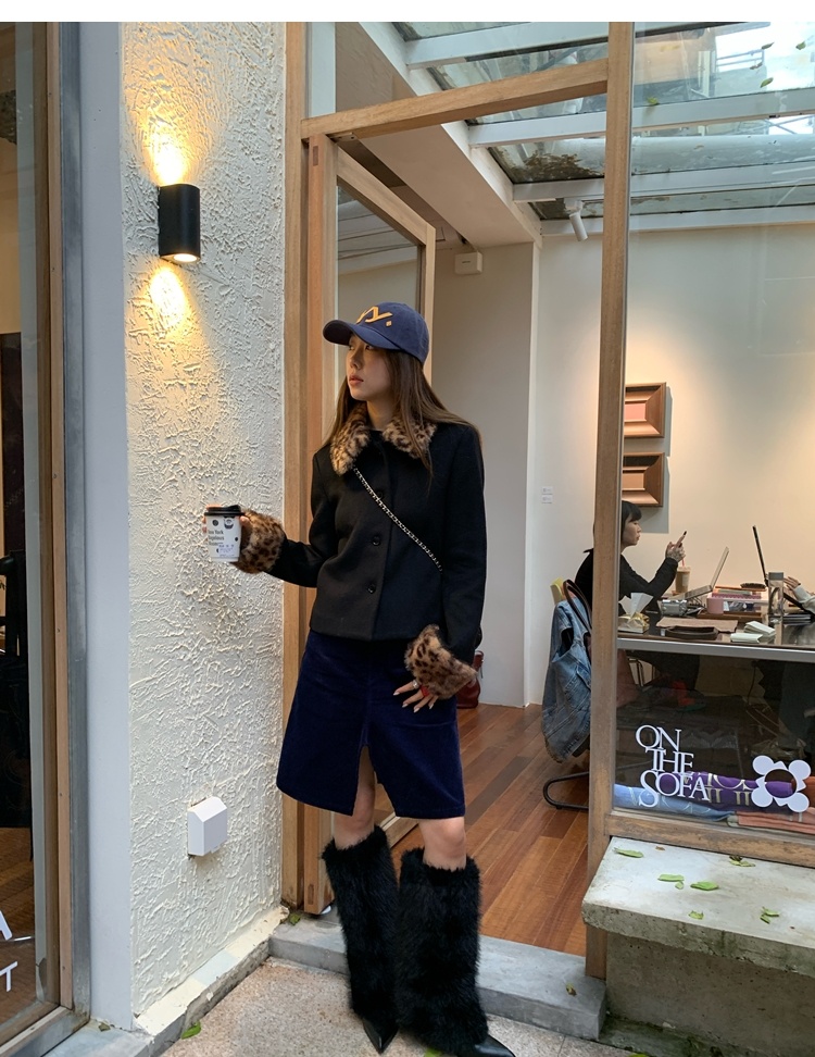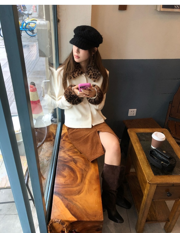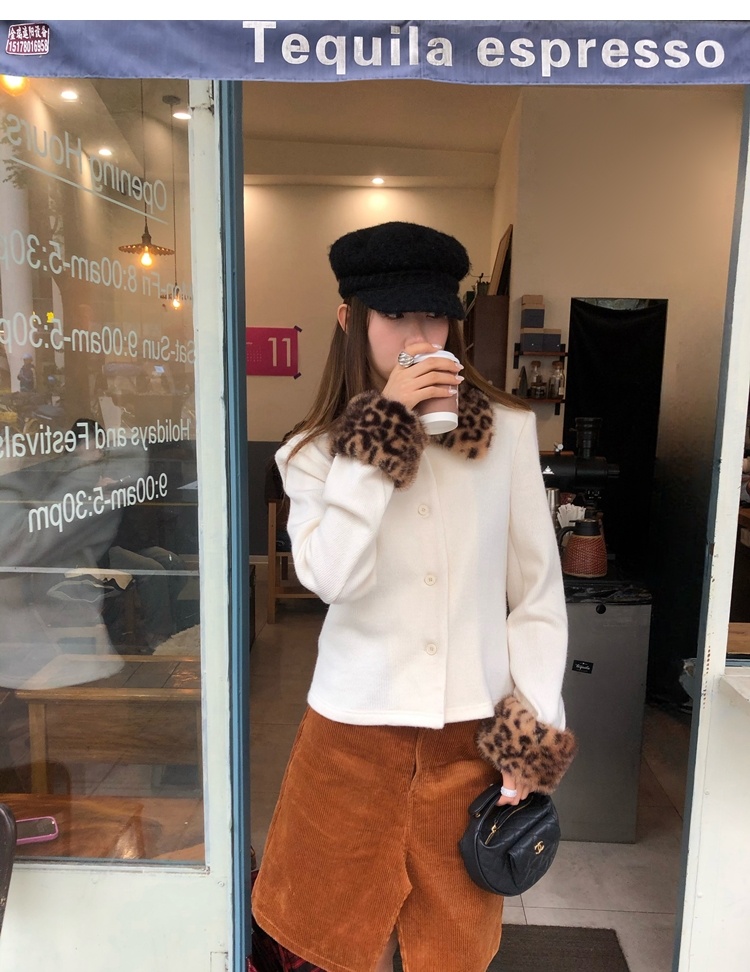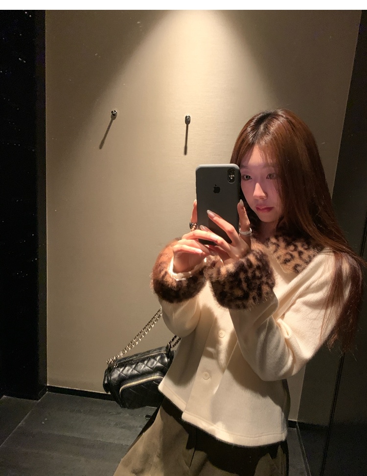 Antique leopard print fur collar single-breasted short jacket