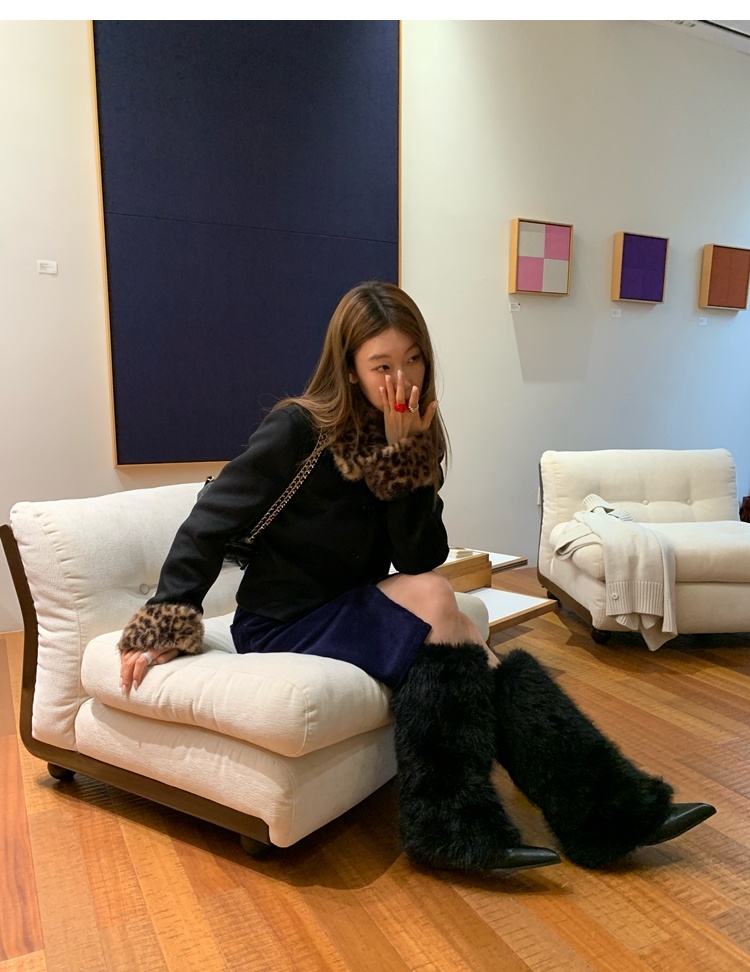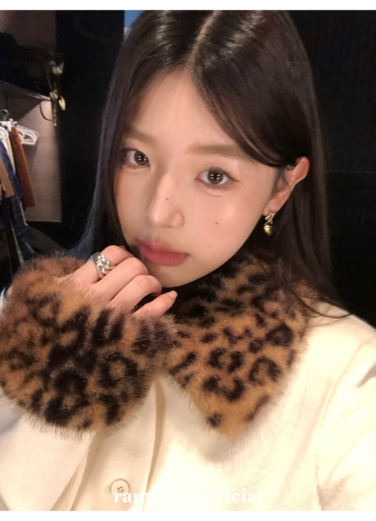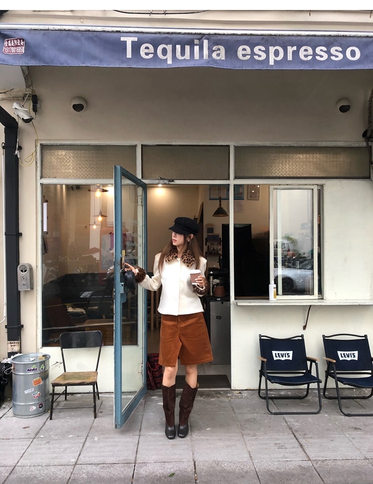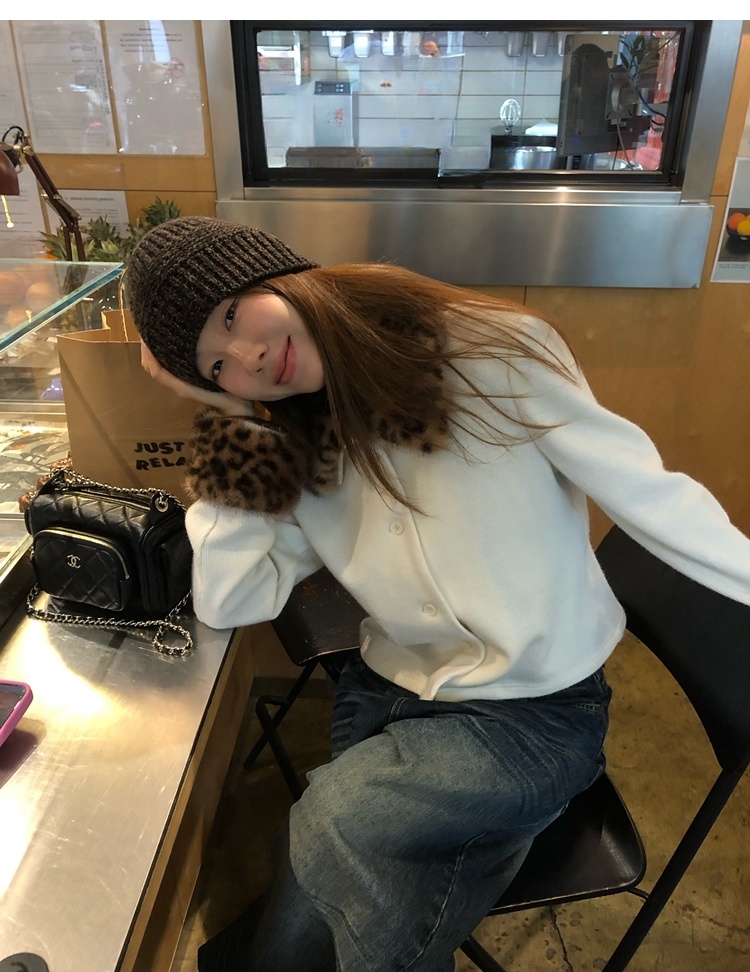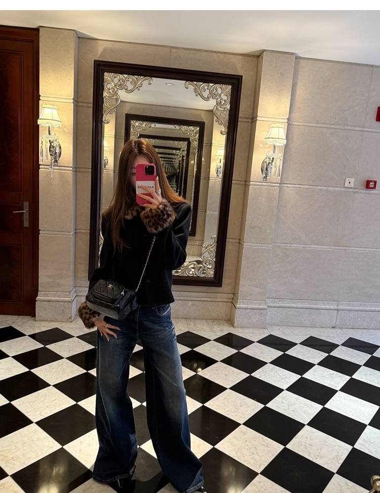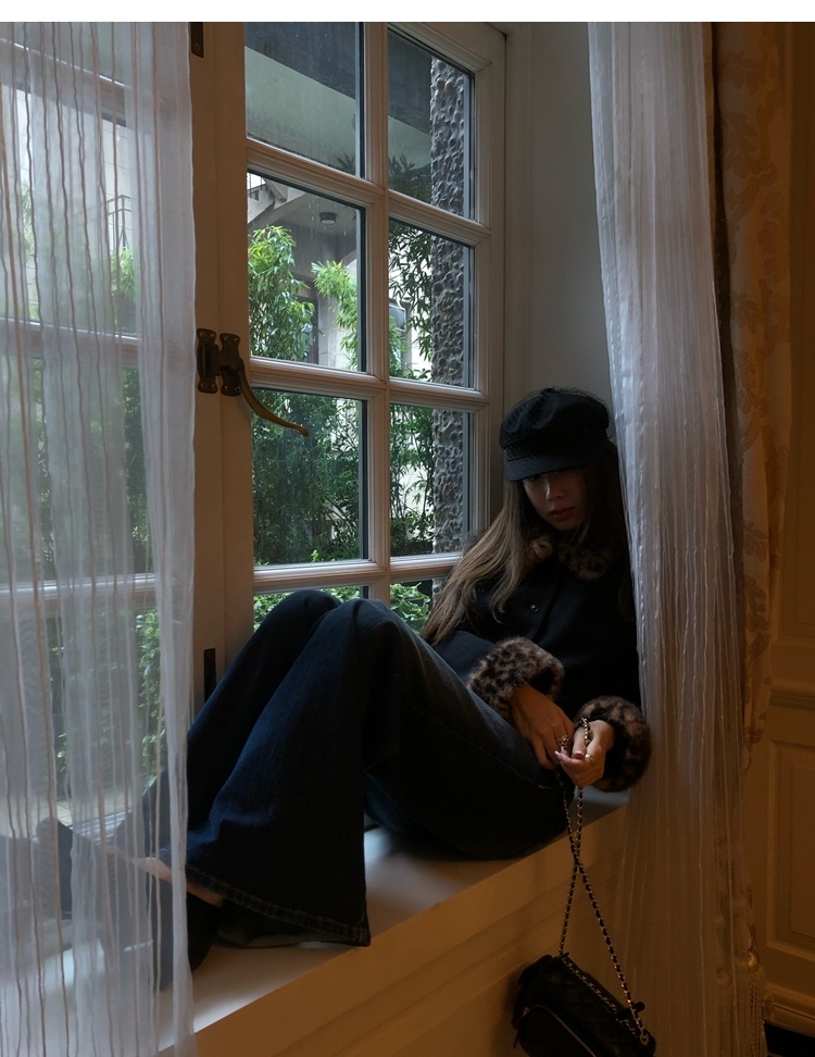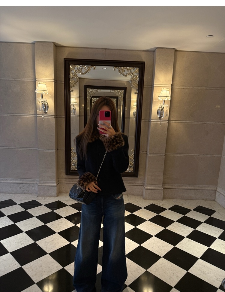 Antique leopard print fur collar single-breasted short jacket