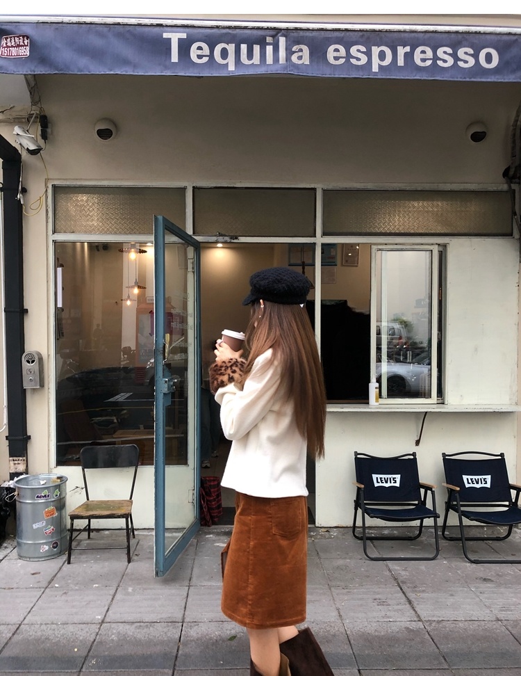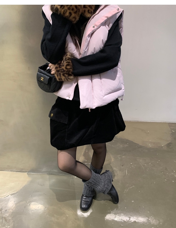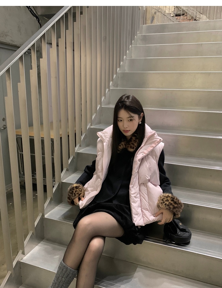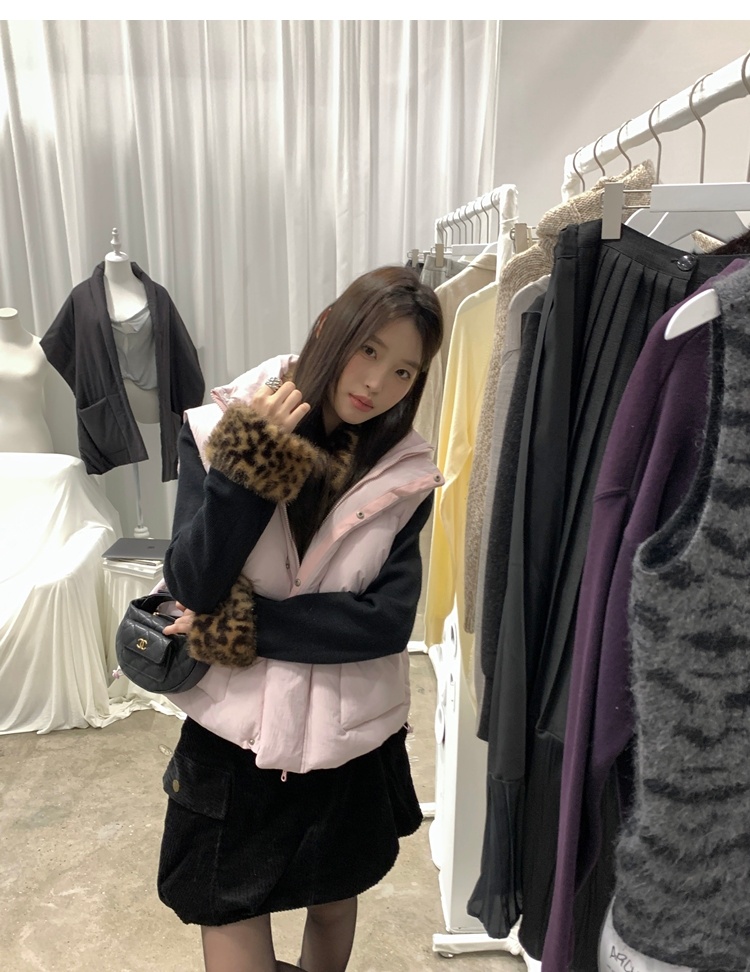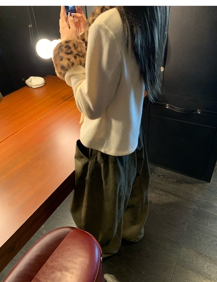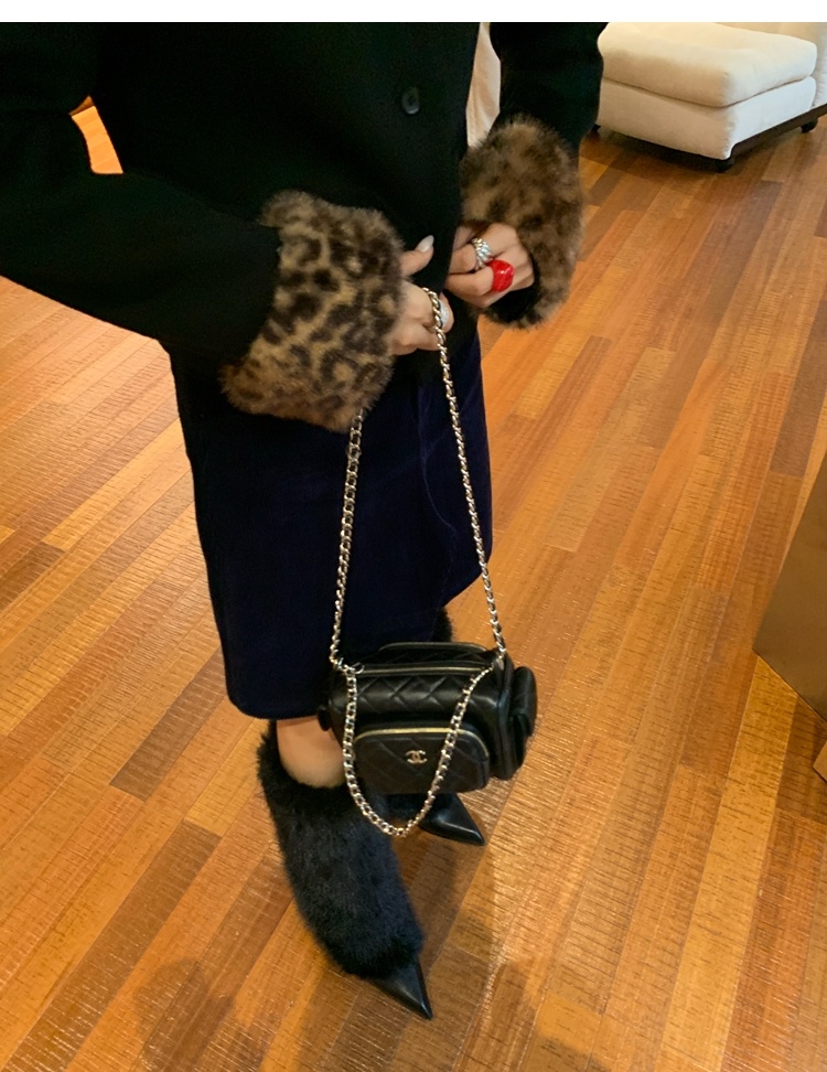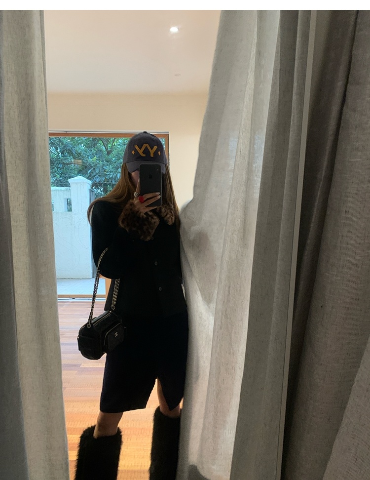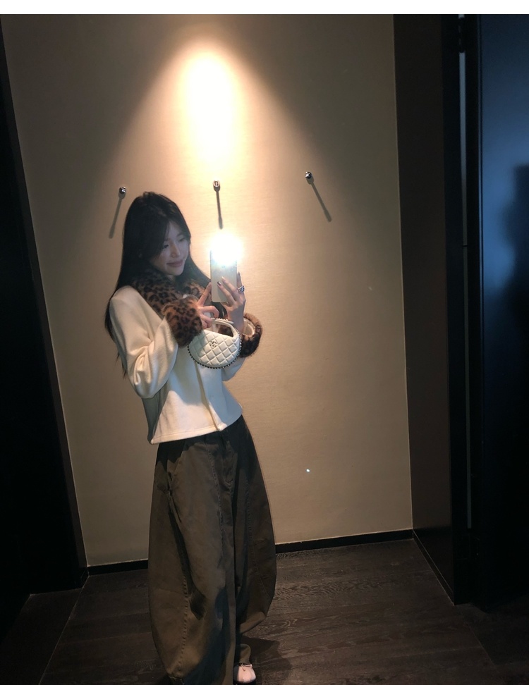 Antique leopard print fur collar single-breasted short jacket