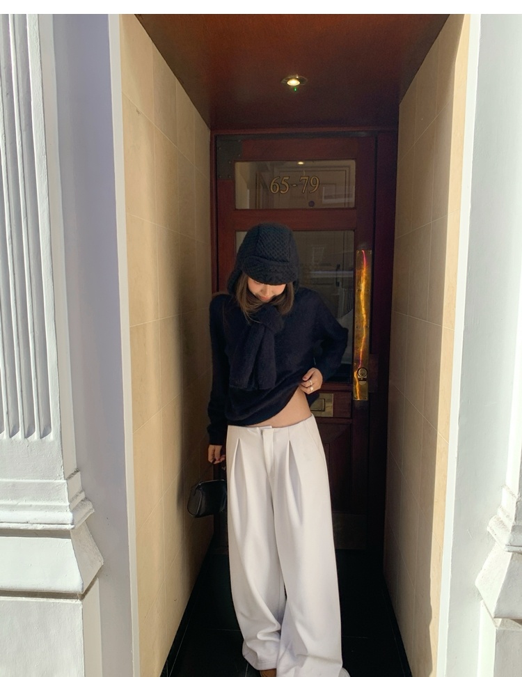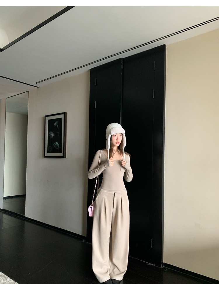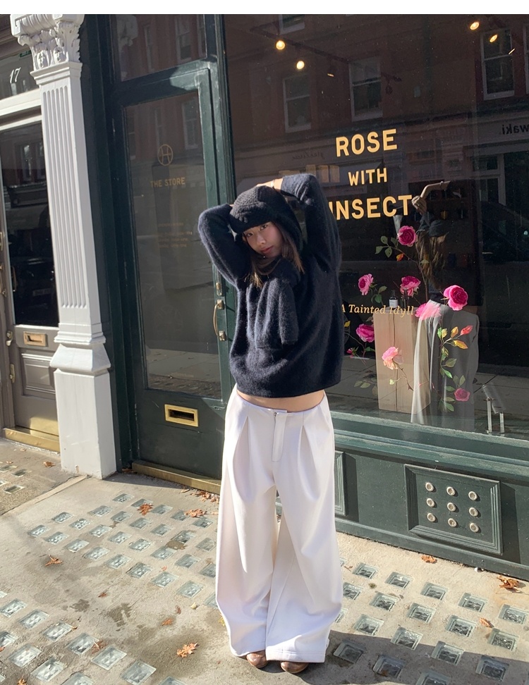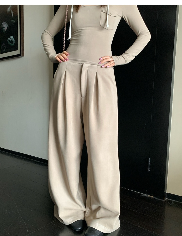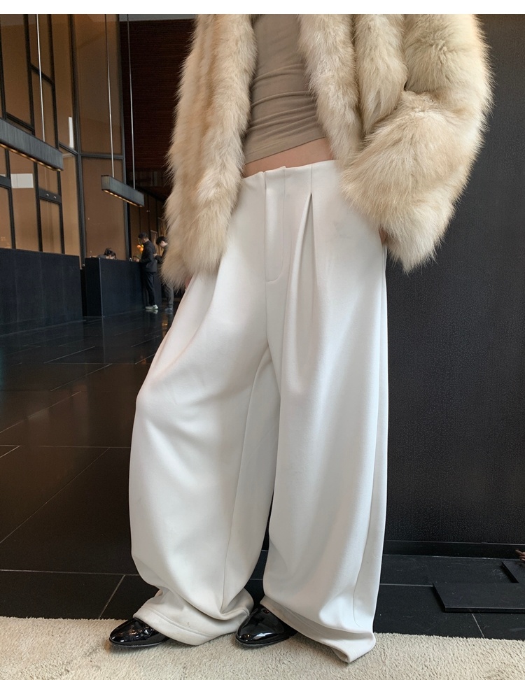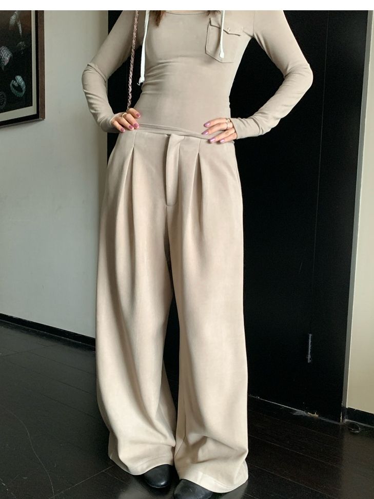 Winter Warmth velvet three-dimensional pleated woolen wide-leg pants