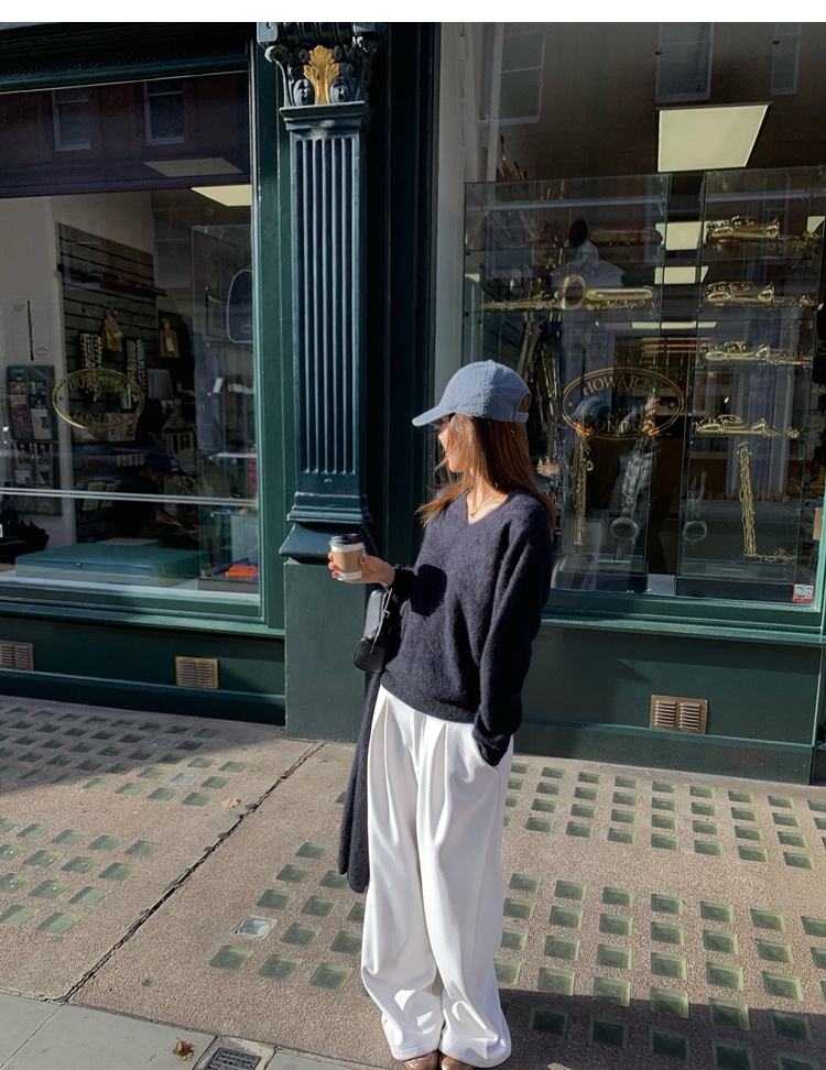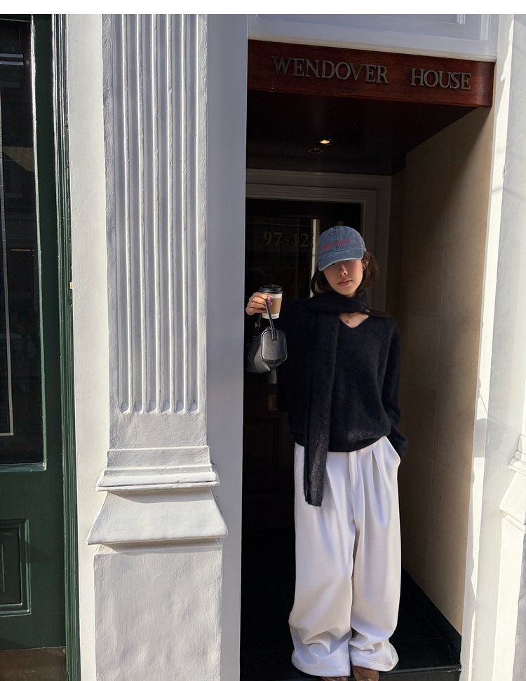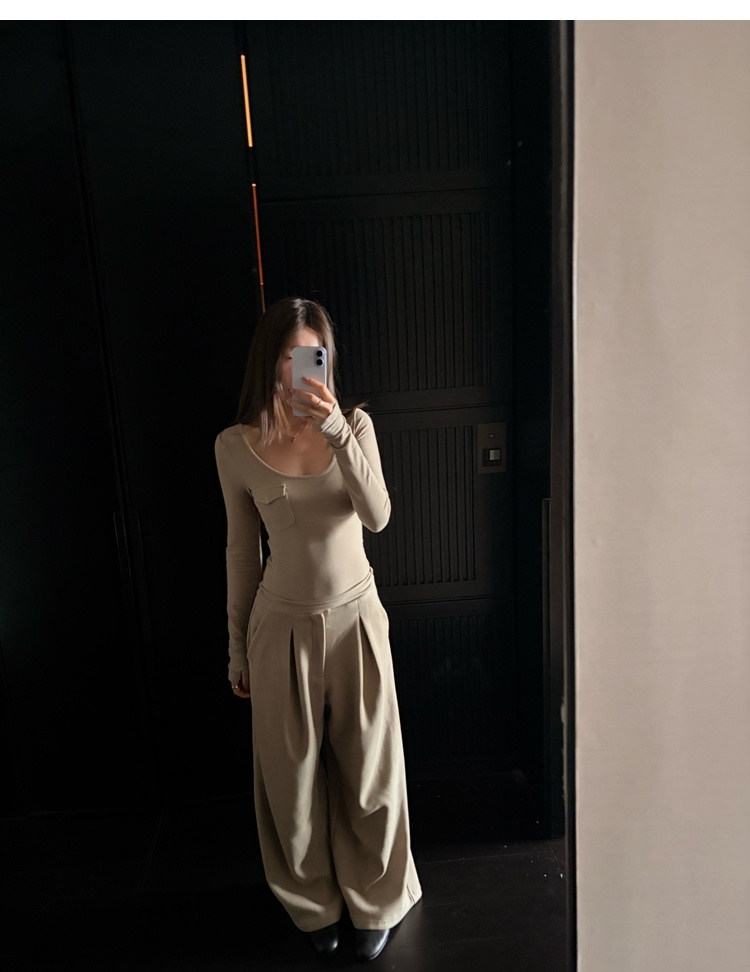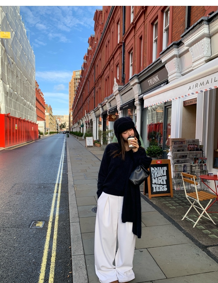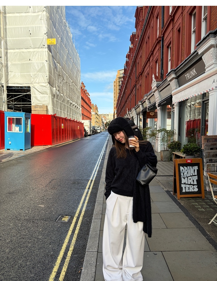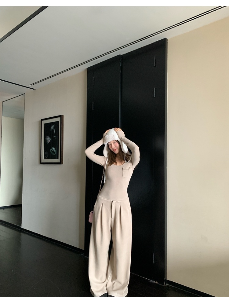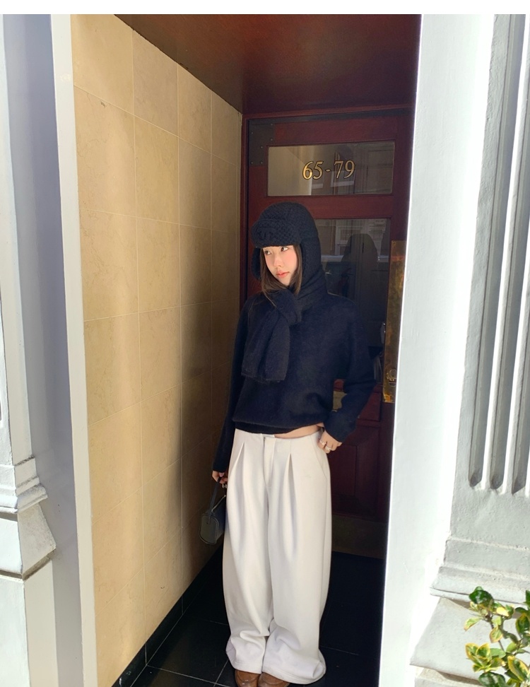 Winter Warmth velvet three-dimensional pleated woolen wide-leg pants