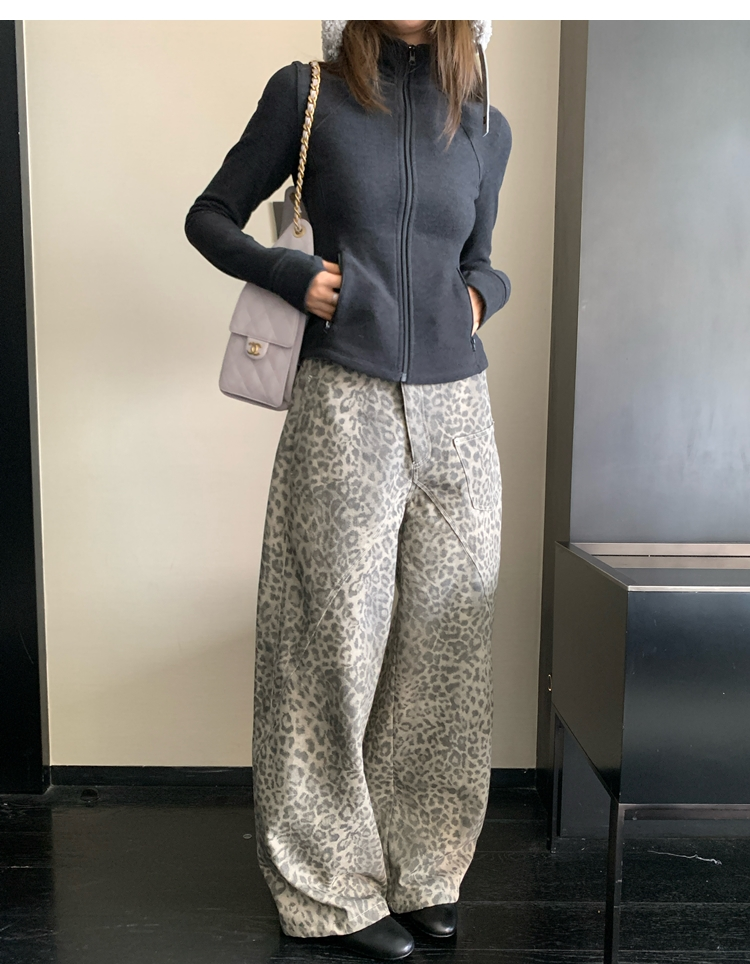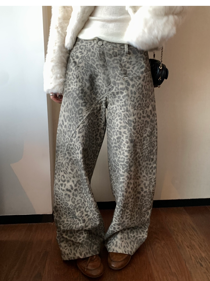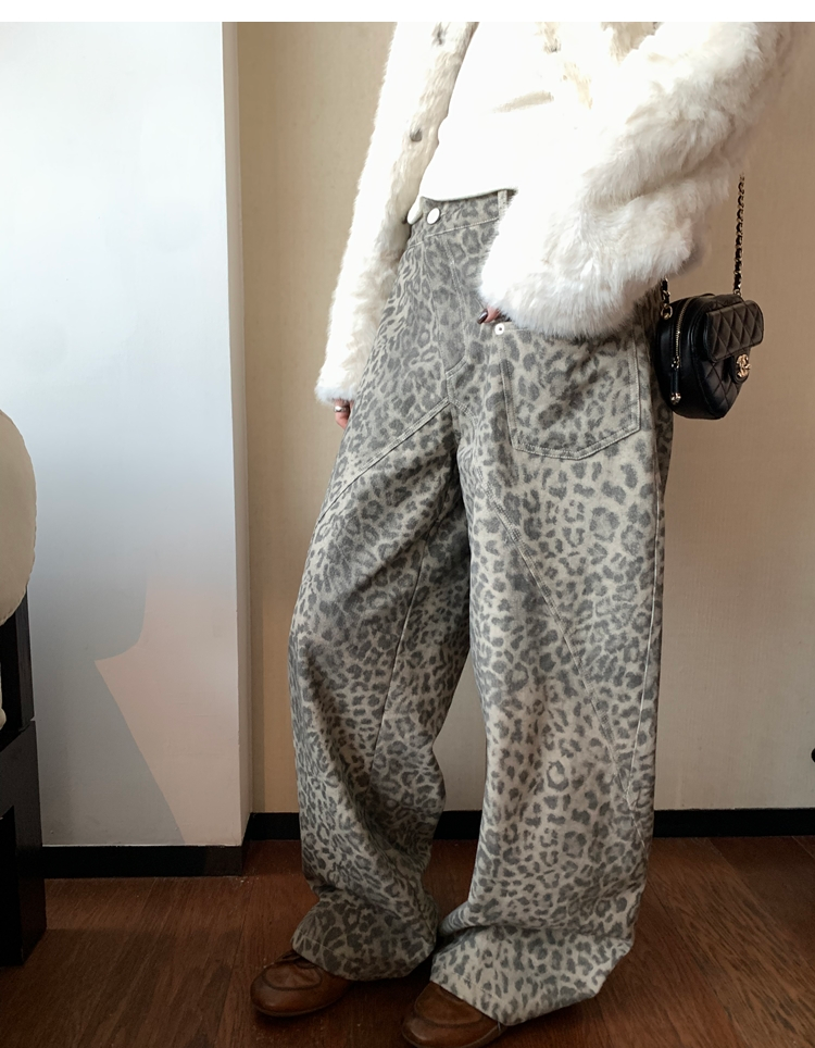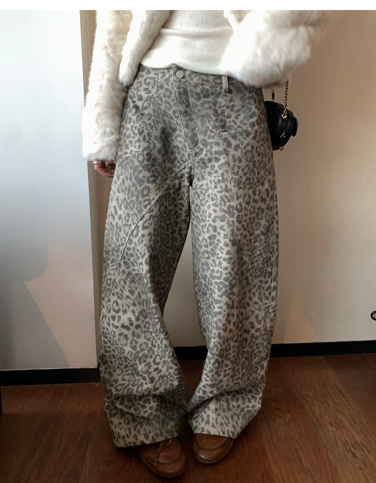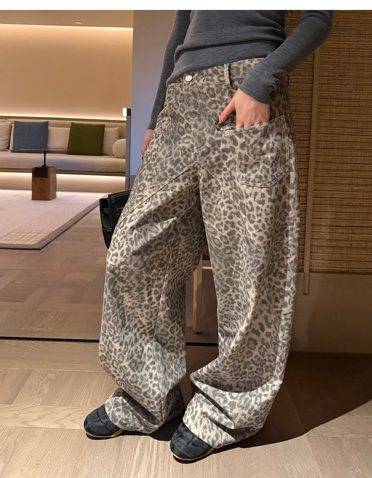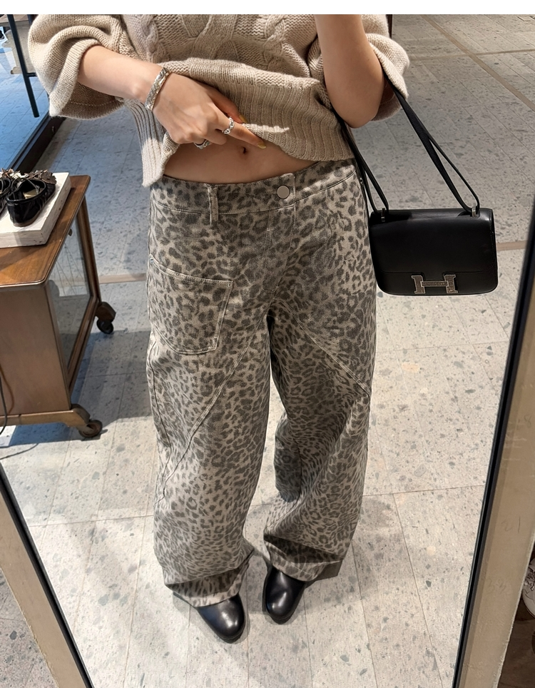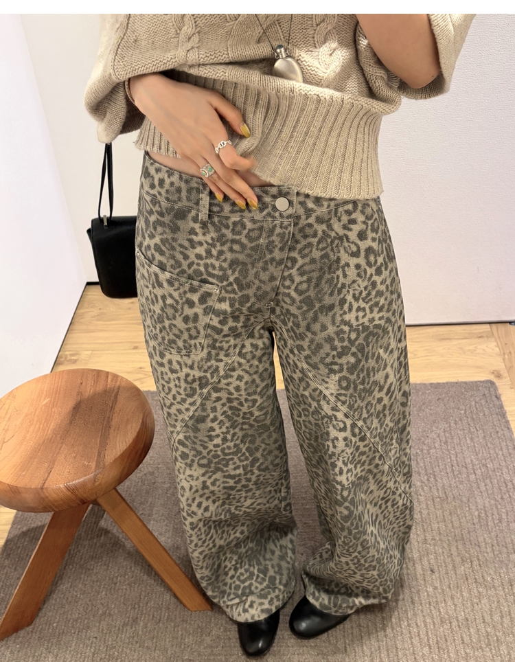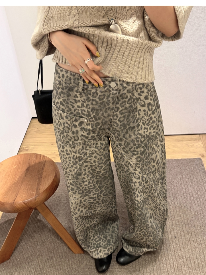 Leopard Walk City vintage waist washable wide-leg jeans